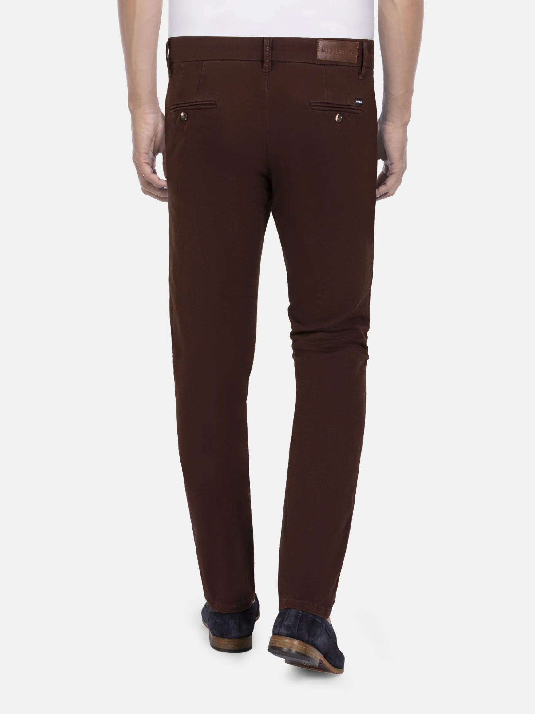Mooie effen pure kleur chino gemaakt van stretchy katoen. Voorzien van twee zijzakken, twee achterzakken en een gulp met ritssluiting. Een essential in elke garderobe.