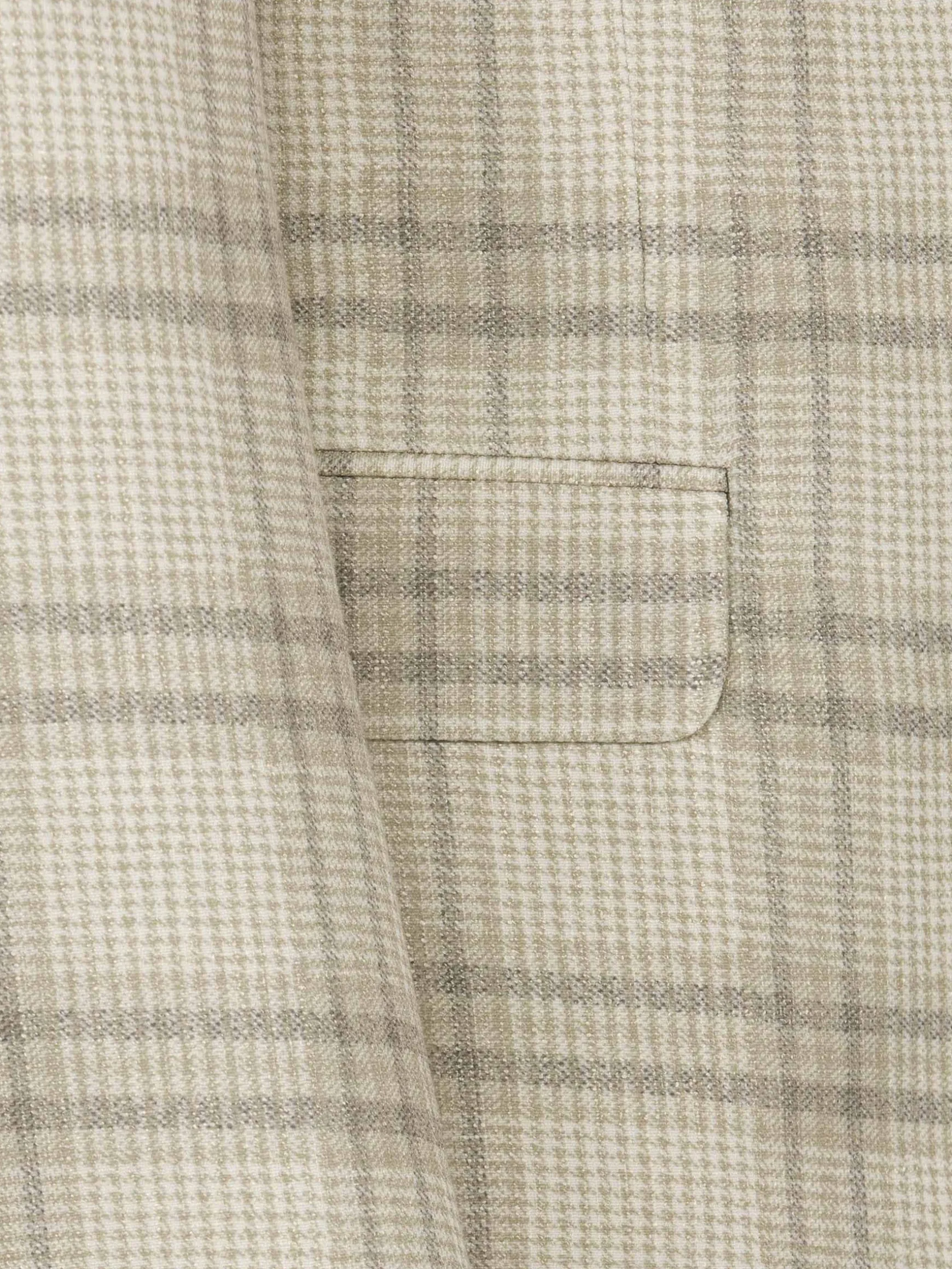 Nico Single Breasted Check Beige Blazer-gemaakt voor moderne elegantie. Met zijn strakke moderne pasvorm en brede revers straalt hij moeiteloos verfijning uit. Compleet met een borstzak, klepzakken en een tweeknoopssluiting biedt deze blazer zowel stijl als functionaliteit. In beige met een subtiel ruitpatroon is het de perfecte balans tussen klassiek en eigentijds.