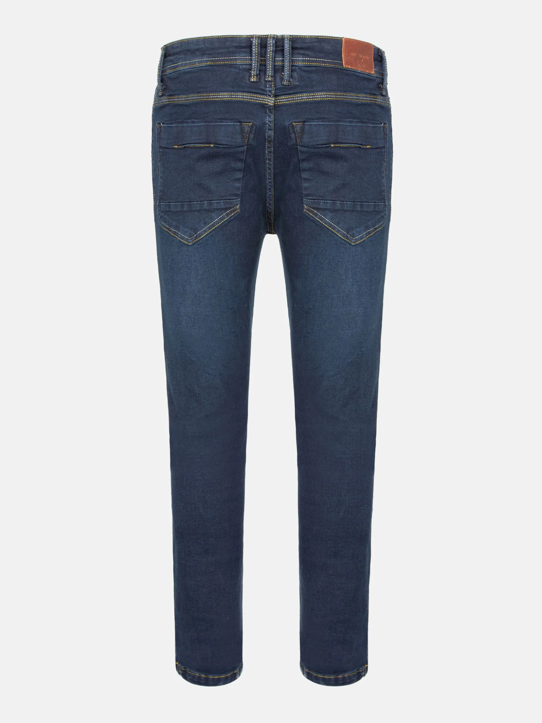 Brando Slim Fit Dark Navy Jeans. Deze jeans is gemaakt van elastische stof en heeft een ritssluiting, vier zakken, waaronder een klein horlogezakje, en klinknagels om de spanningspunten te verstevigen. De diepe marineblauwe kleur voegt een modern tintje toe, waardoor hij perfect is voor elke gelegenheid.