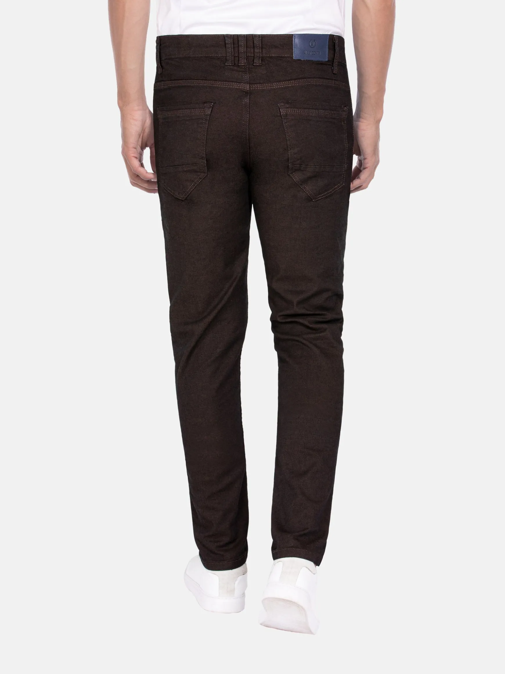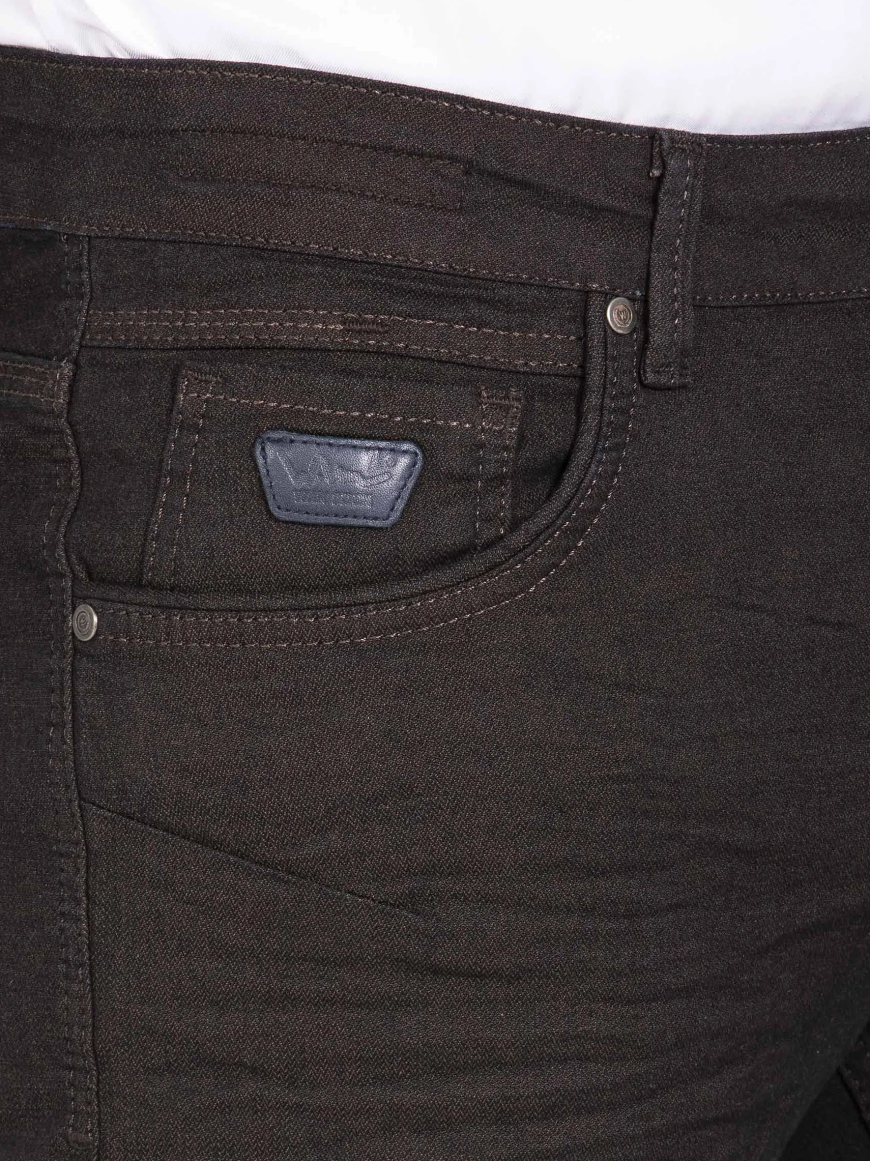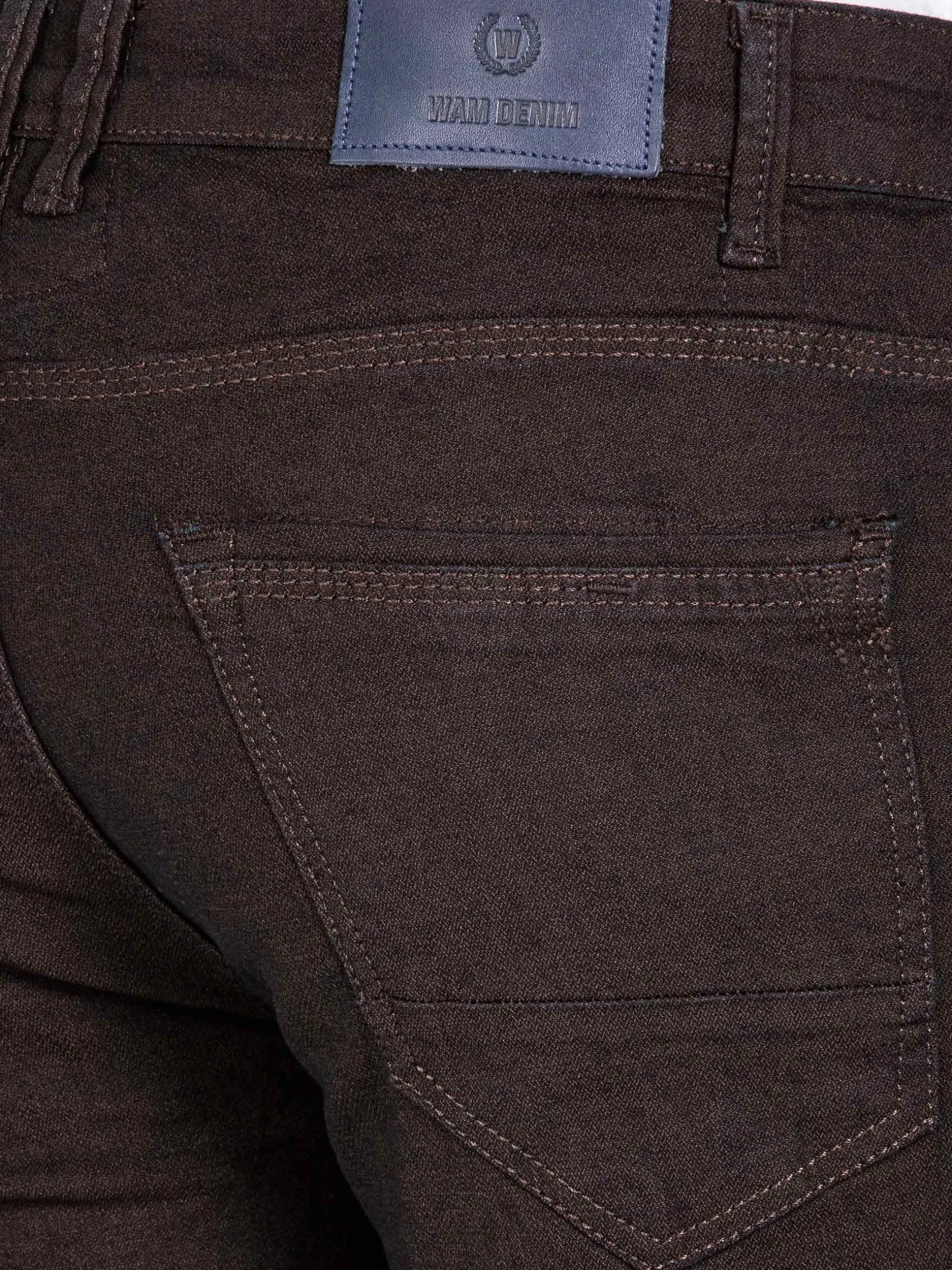 Bruine jeans met rits voor een casual outfit. Easy te combineren met een shirt of overhemd. Voorzien van vijf zakken met een leren embleem op de taille. De jeans zit perfect om het lichaam en draagt comfortabel van heup tot enkel.