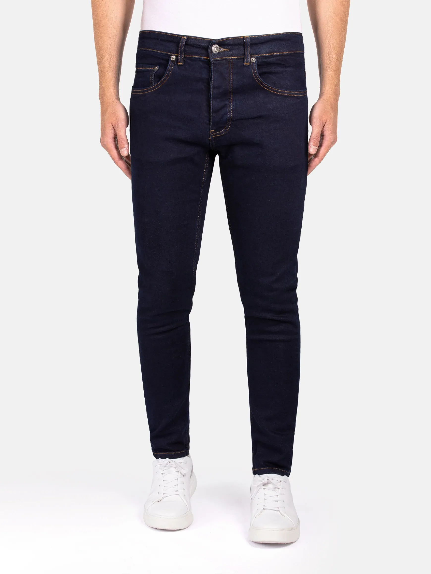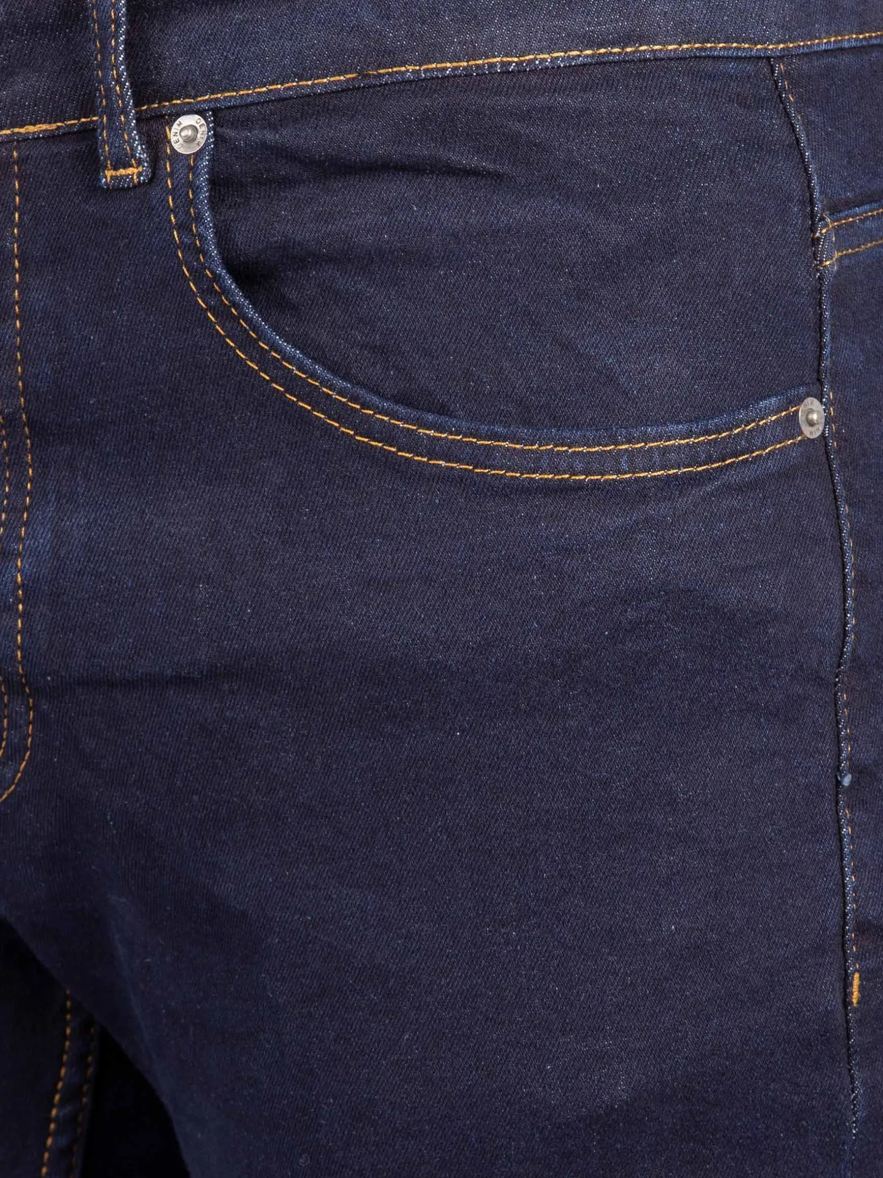 Donkerblauwe jeans met met een perfecte pasvorm door de stretch die in de stof is verwerkt. De broek heeft twee achterzakken en twee voorzakken.