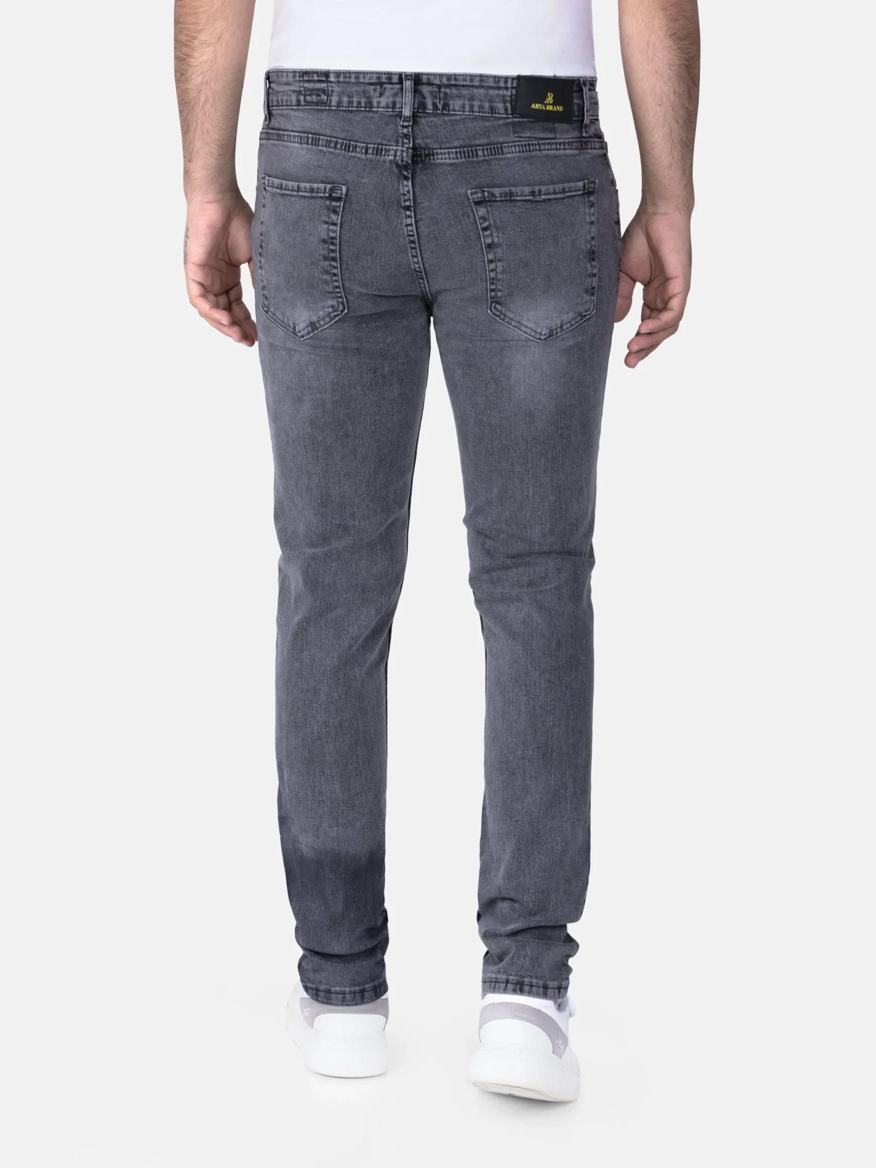 Grijze jeans met lichte stone wash. De jeans is heel goed te combineren met een sweater of T-shirt voor een sportieve look. Boven de rechter achterzak is een zwart merkembleem gestikt.
