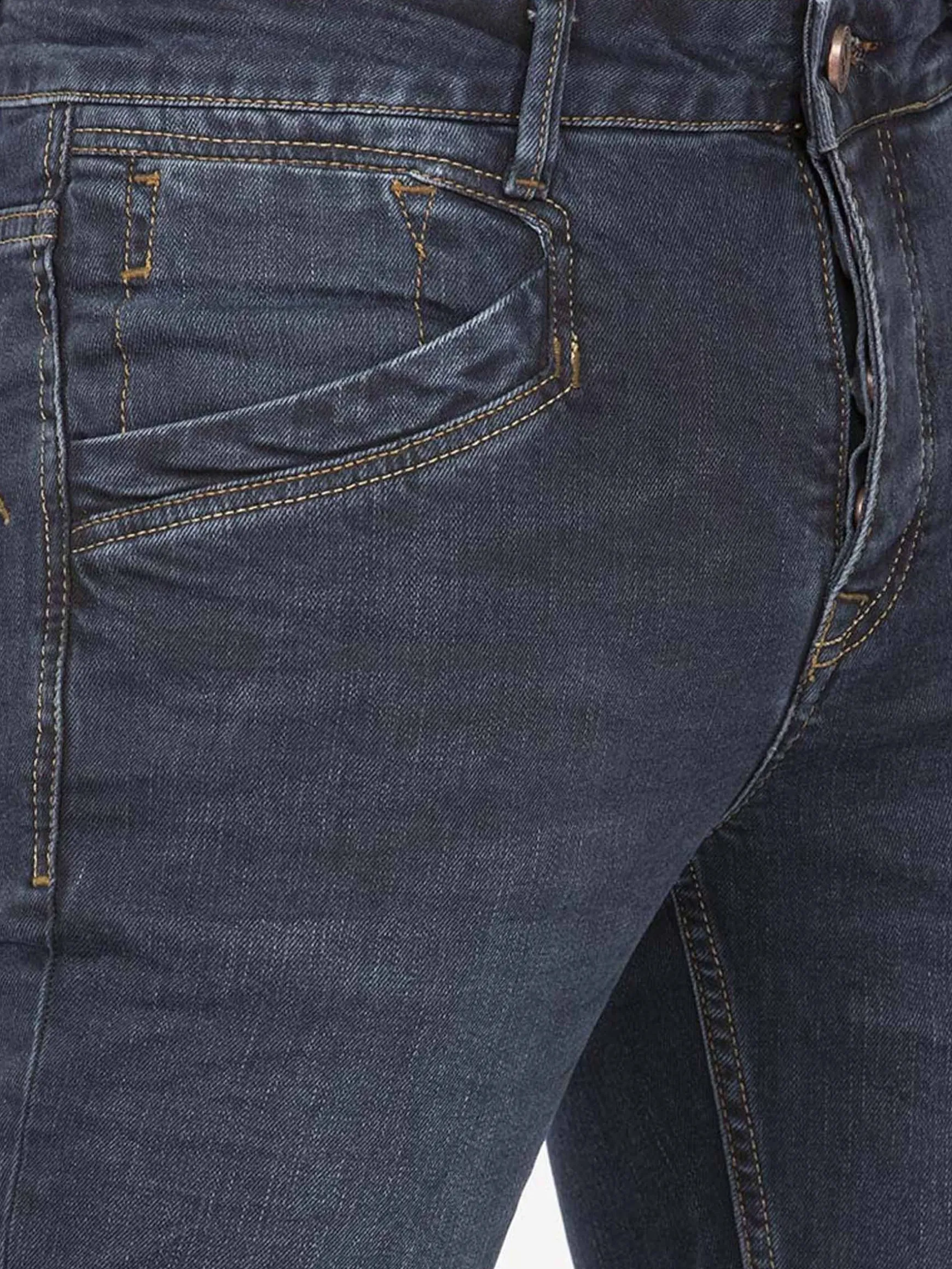 Mooie donkerblauwe jeans met knoopsluiting. Boven de rechter achterzak is een merkembleem bevestigd. Voor een casual look past deze jeans heel goed met een sweater of T-shirt en met een overhemd voor een wat nettere uitstraling.