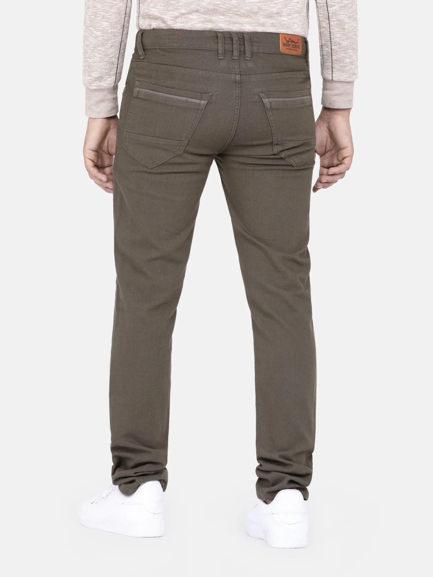 Khaki kleurige jeans met knoopsluiting. De zakken aan de voorzijde zijn fraai afgewerkt met een beige kleurige rand. Deze jeans heeft een perfecte pasvorm en is voor een casual outfit zeer geschikt om te combineren met een sweater of overhemd.