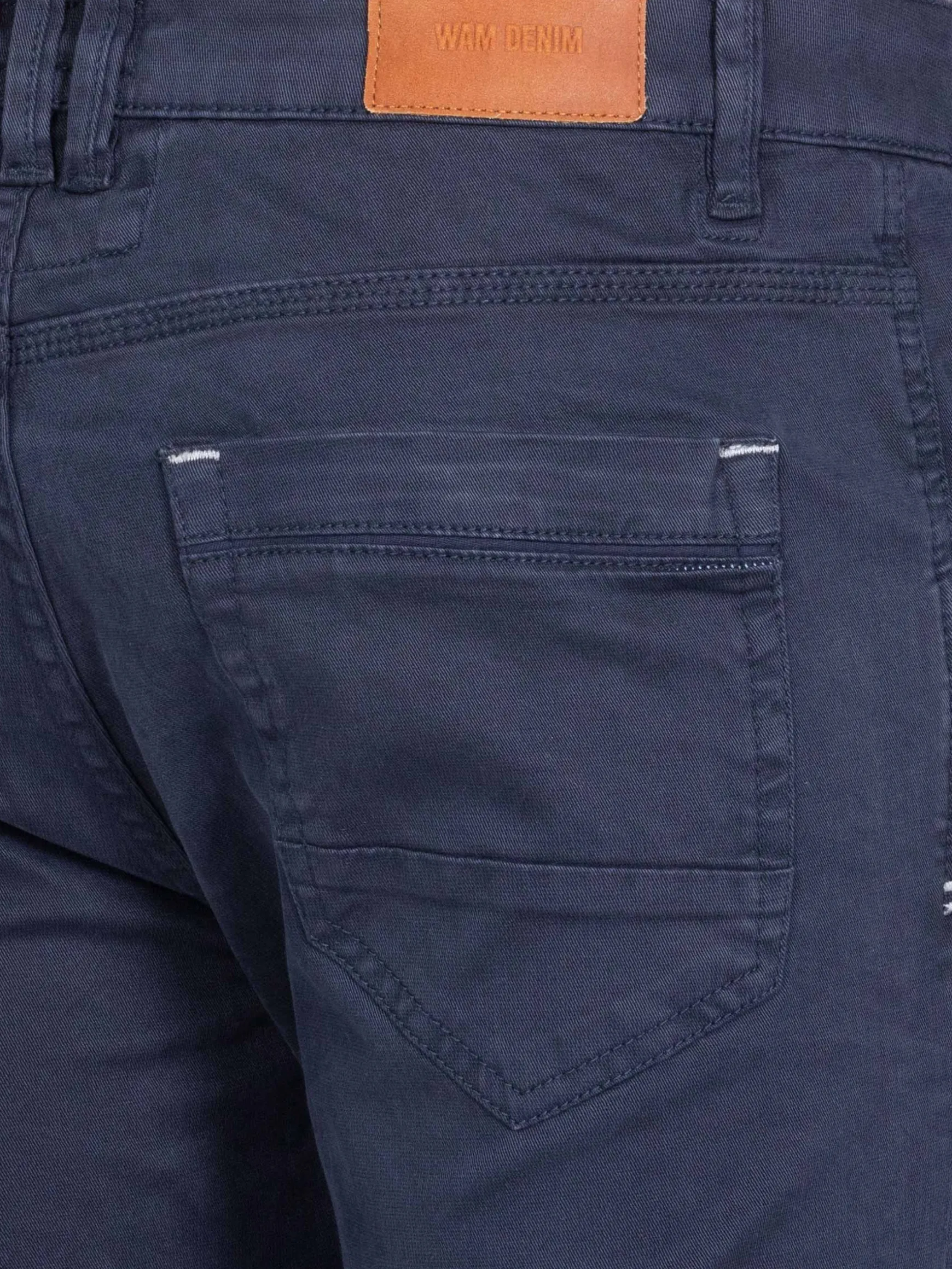 Geon Slim Fit Navy Jeans. Deze jeans is gemaakt van elastische stof en heeft een ritssluiting, vier zakken, waaronder een klein horlogezakje, en klinknagels om de spanningspunten te verstevigen. De diepe Navy kleur voegt een modern tintje toe, waardoor hij perfect is voor elke gelegenheid.