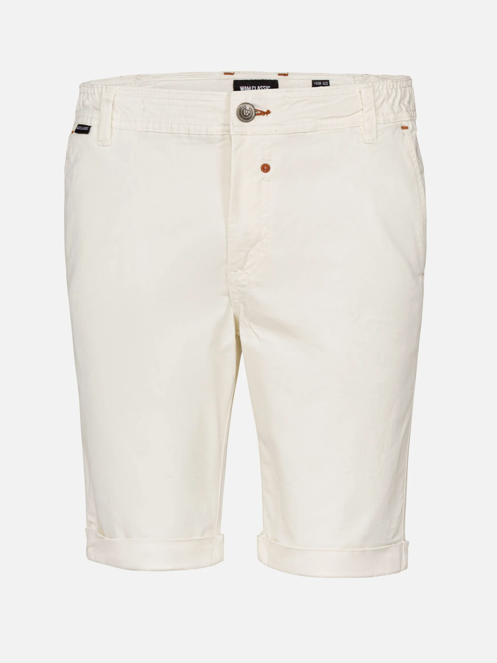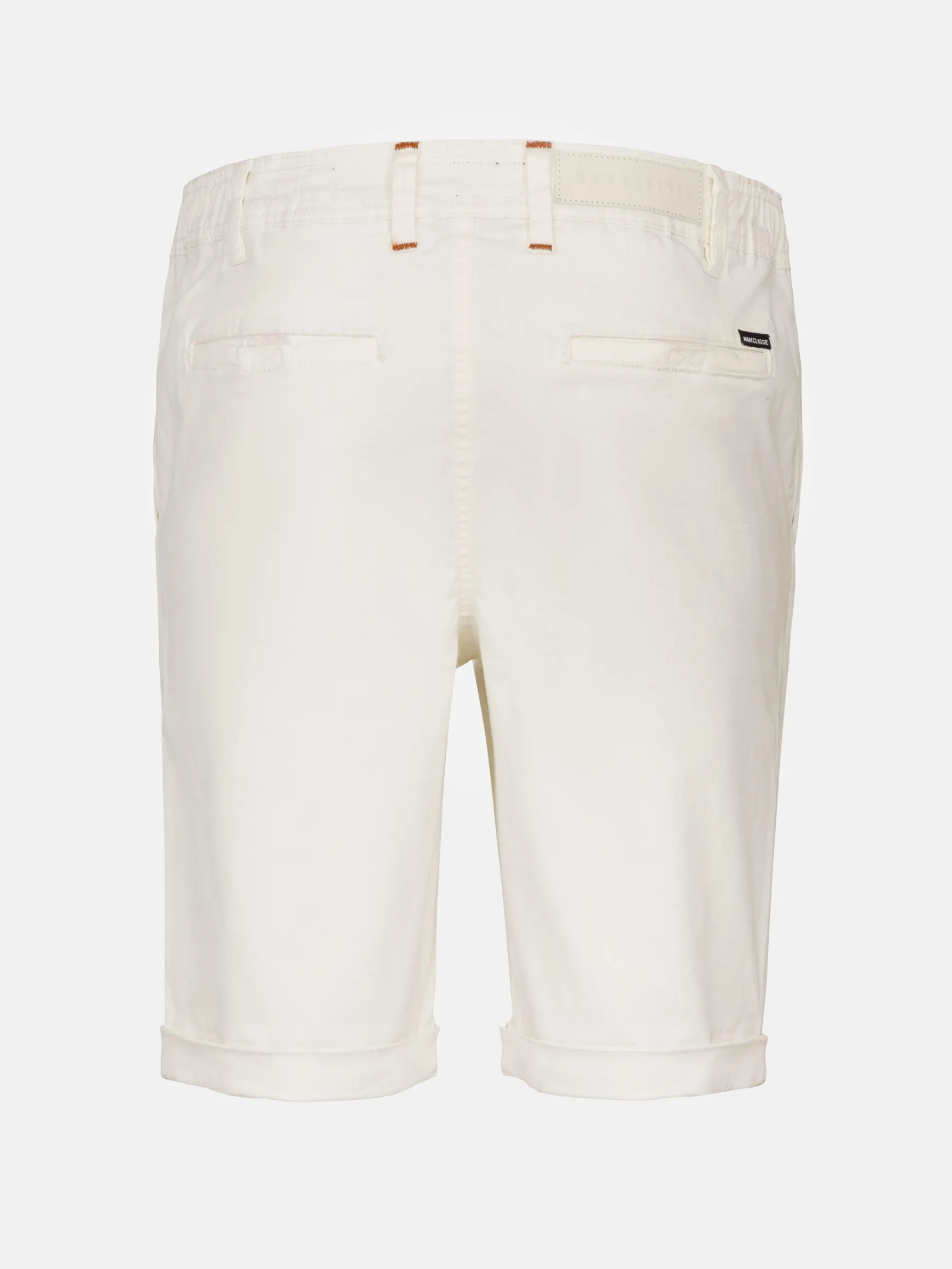 Easton Off White Shorts, met een slanke pasvorm voor een moderne look. Uitgerust met twee zakken aan de voorkant en twee achterzakken voor het praktische gemak, heeft deze short ook een veilige ritssluiting. Perfect voor elke casual gelegenheid, ze combineren stijl en functionaliteit naadloos.