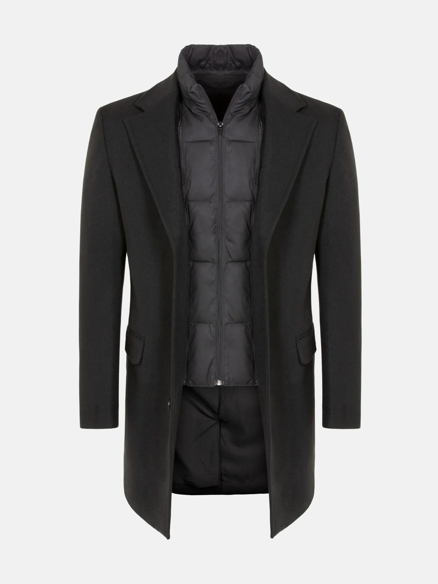 De Korbin Notch Lapelled Black Trench Coat combineert stijl en functionaliteit. Met een gestroomlijnd, veelzijdig ontwerp is hij perfect voor formele en casual gelegenheden. De klassieke revers, moderne pasvorm en rekbare stof zorgen voor comfort en flexibiliteit. Het gewatteerde binnenvest met ritssluiting zorgt voor extra warmte, terwijl klepzakken en een verborgen zak handige opbergruimte bieden.