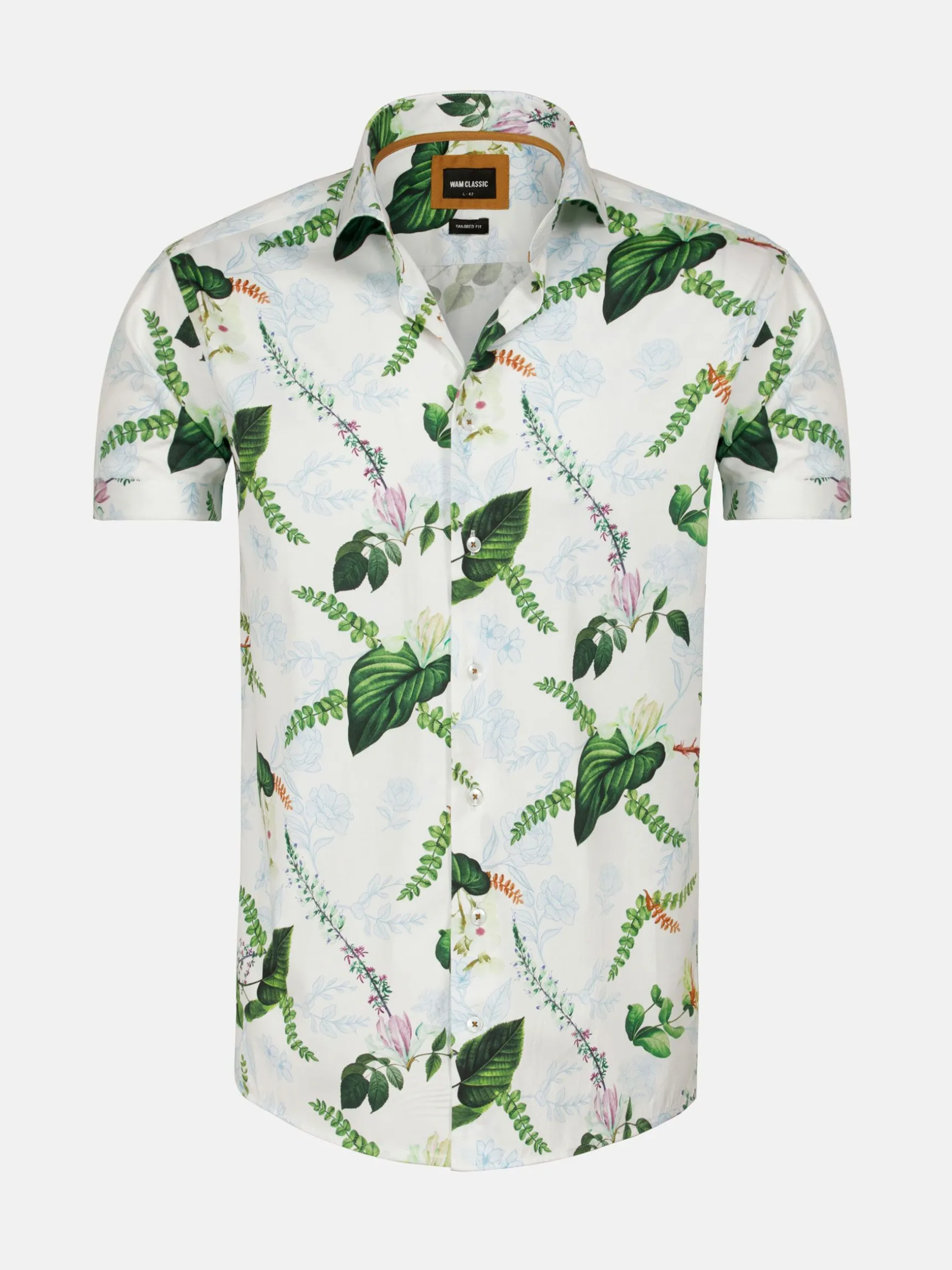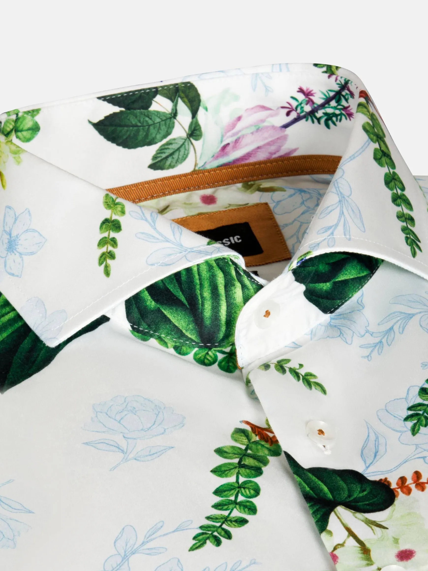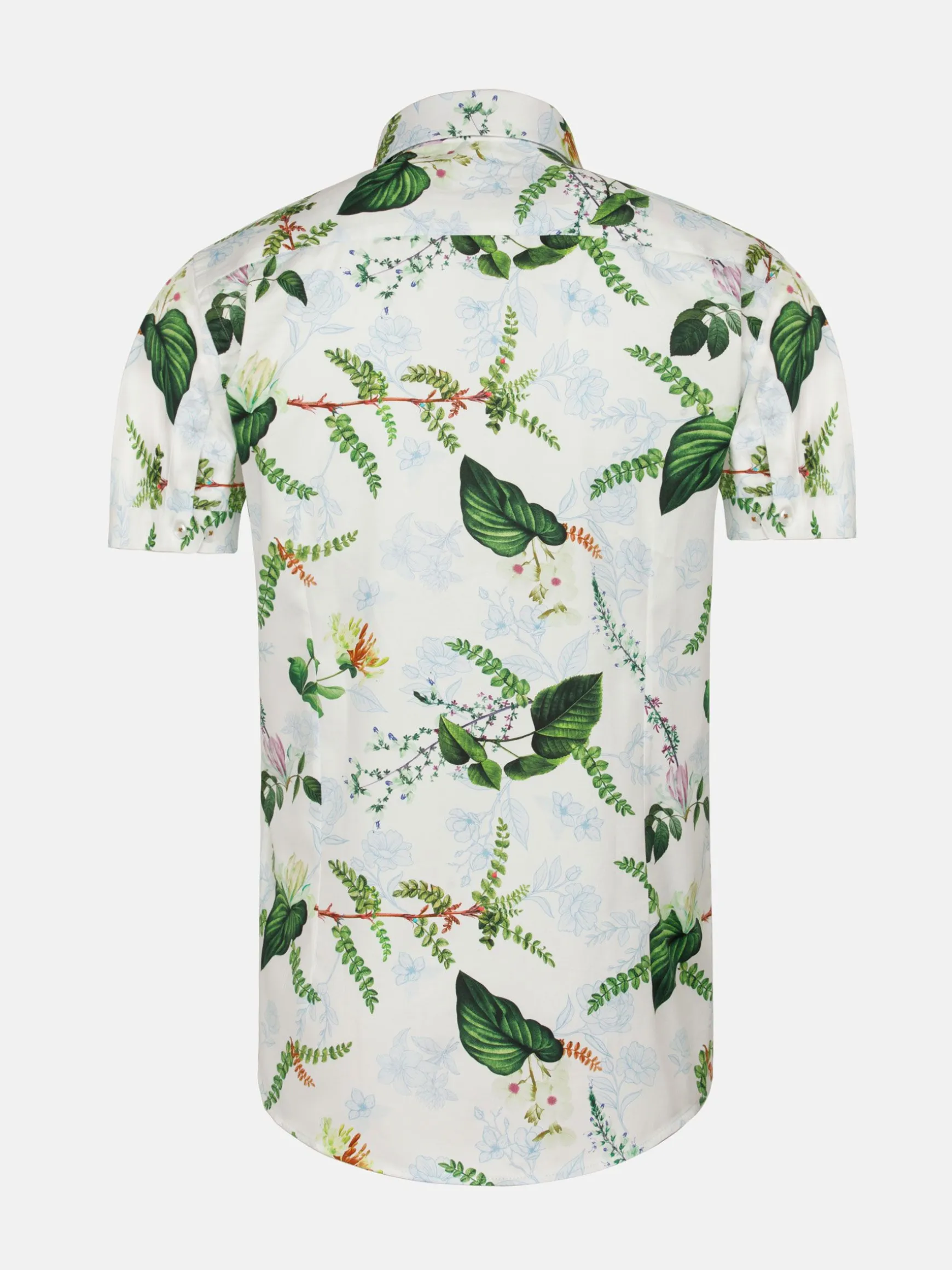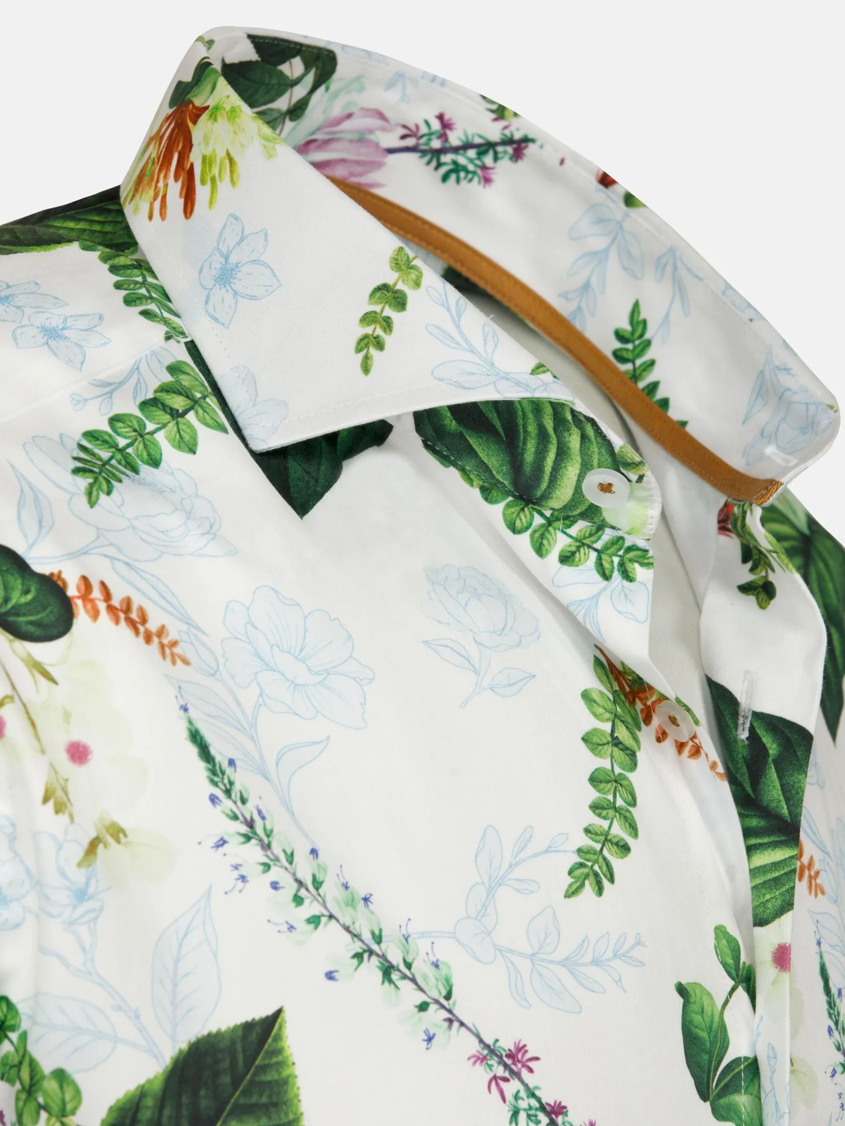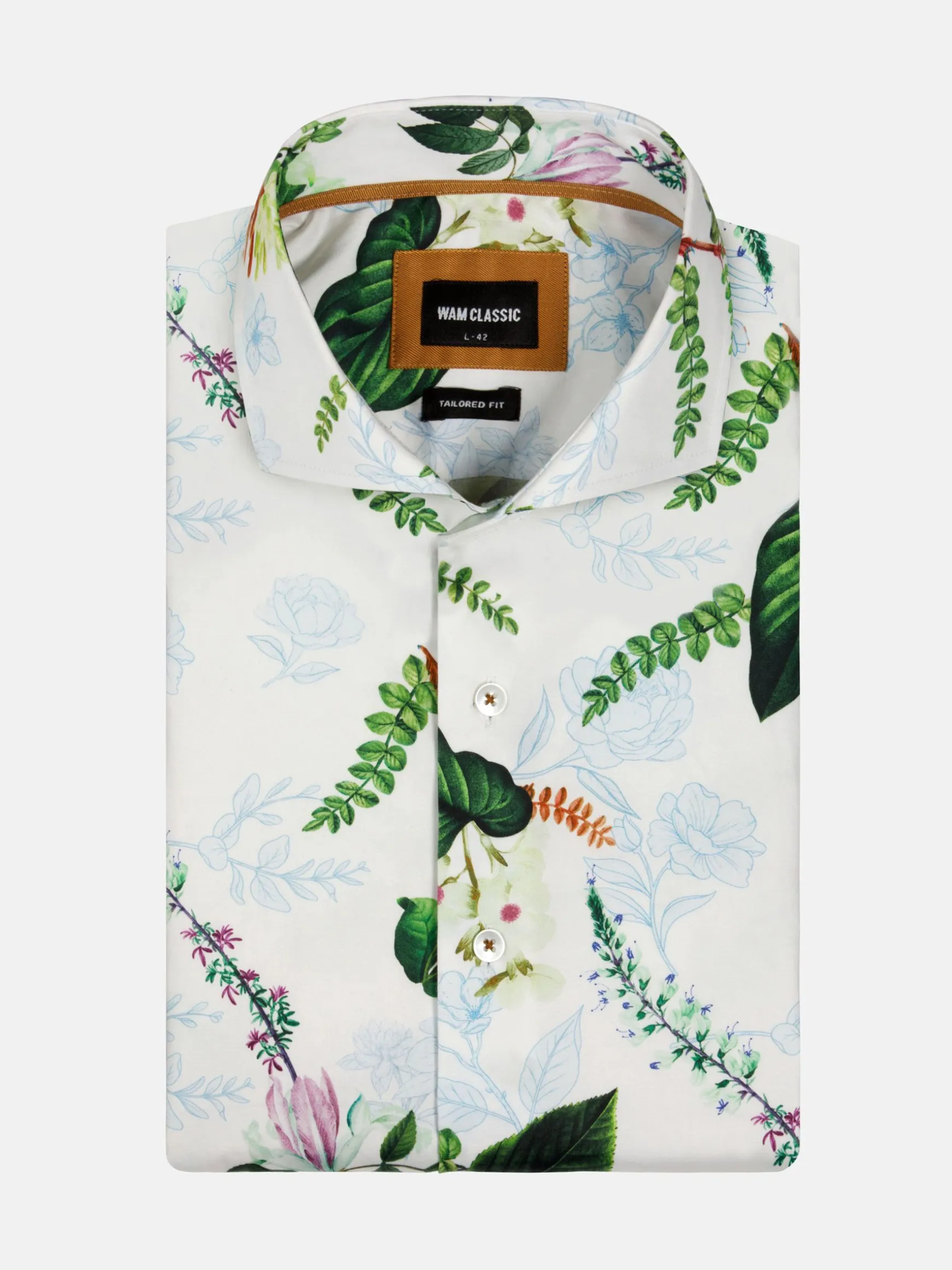 Parker Tailored Fit Wit Overhemd. Met zijn cutaway kraag, bloemenprint en stretchstof biedt dit overhemd zowel comfort als elegantie. Perfect voor elke gelegenheid.