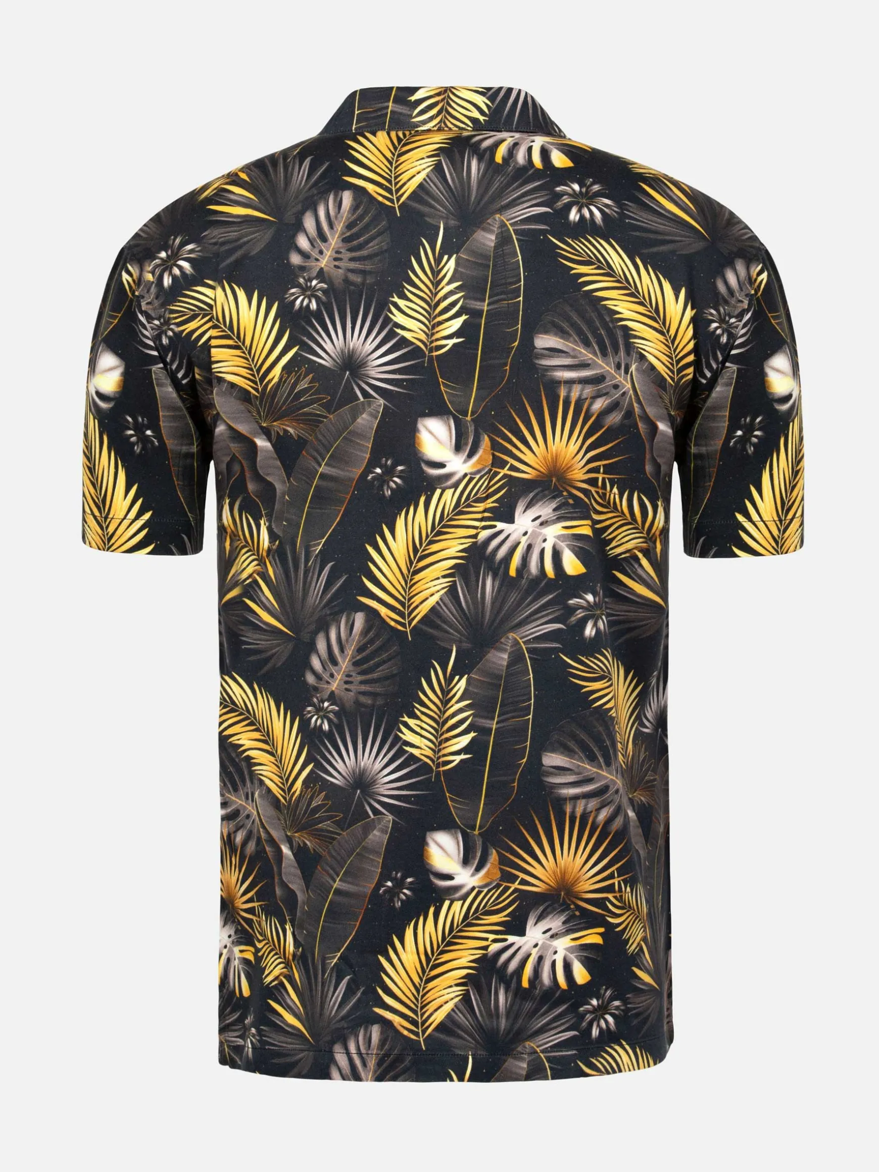 Umberto Tropical Floral Zwart Overhemd. Dit slim-fit overhemd met korte mouwen heeft een opvallende bloemenprint op een zwarte achtergrond, wat zorgt voor een unieke esthetiek. Compleet met een wijd uitlopende kraag en knoopsluiting, past het naadloos bij shorts of jeans voor een chique, relaxte look. Dit overhemd is perfect voor elke casual omgeving en onmisbaar in je garderobe.