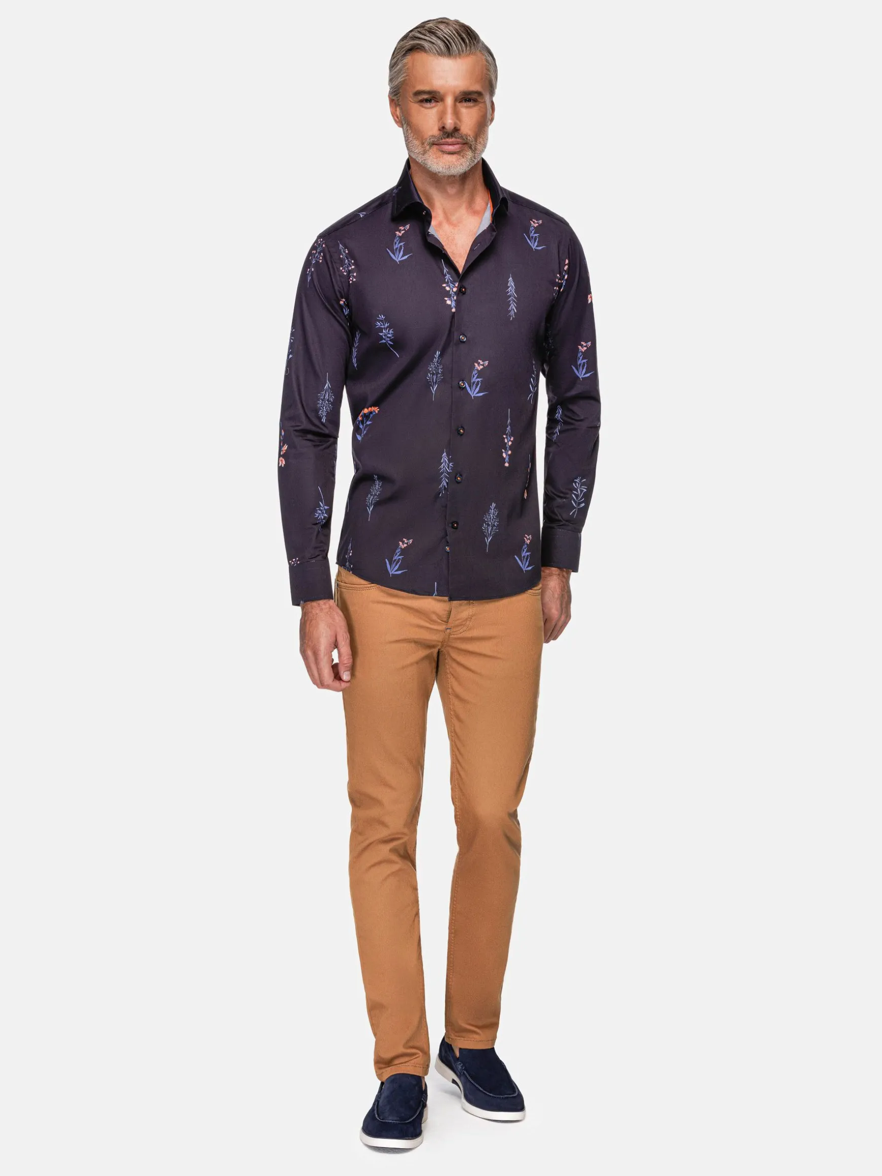 Het Equinox navy shirt met bloemenprint en lange mouwen is een stijlvolle navy top, perfect voor koeler weer of formele gelegenheden. Een bloemenpatroon voegt een elegante touch toe, waarbij een klassiek ontwerp wordt gecombineerd met op de natuur geïnspireerde levendigheid. Draag het met een broek voor een gekledere look of met een jeans voor een meer casual look. De marineblauwe basis complementeert de kleurrijke bloemenprint voor een evenwichtige en aangename esthetiek.