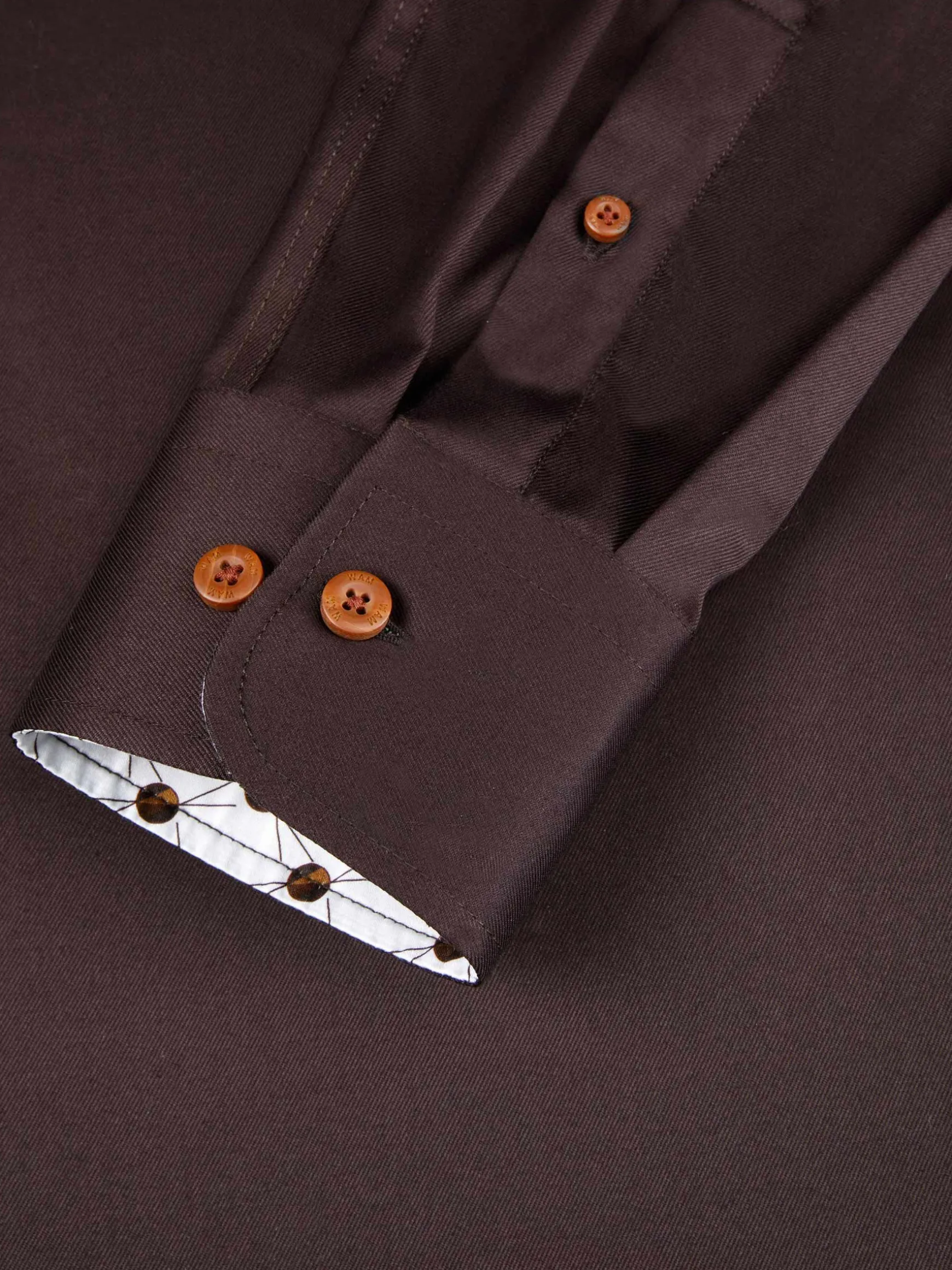 Duik in de wereld van ongeevenaarde verfijning met ons Solid Brown Long Sleeve Shirt. Ervaar tijdloze stijl en comfort, zorgvuldig vervaardigd met een cut-away kraag voor een exquise touch. Verhoog je garderobe vandaag nog en omarm de essentie van verfijnde mode.