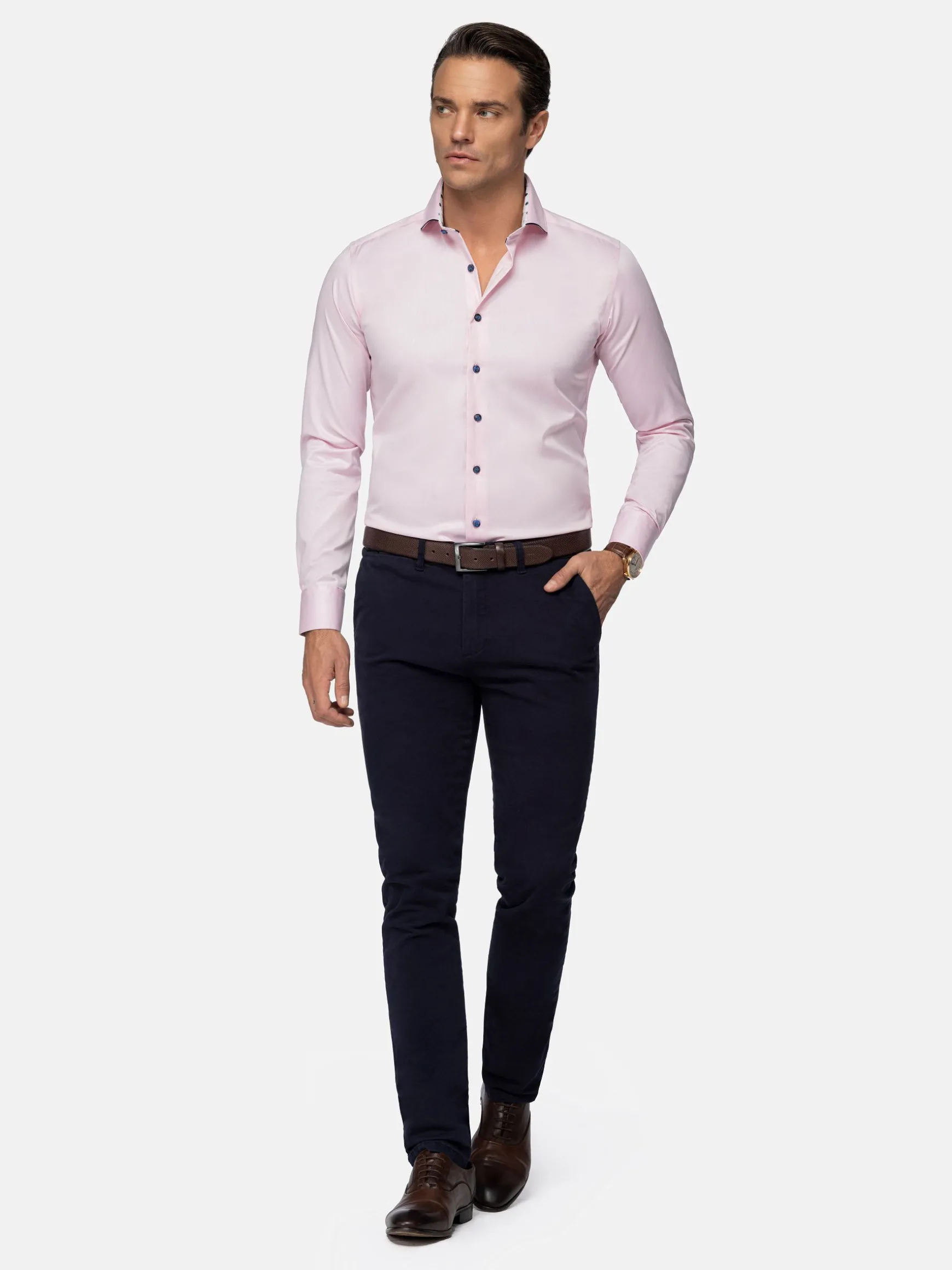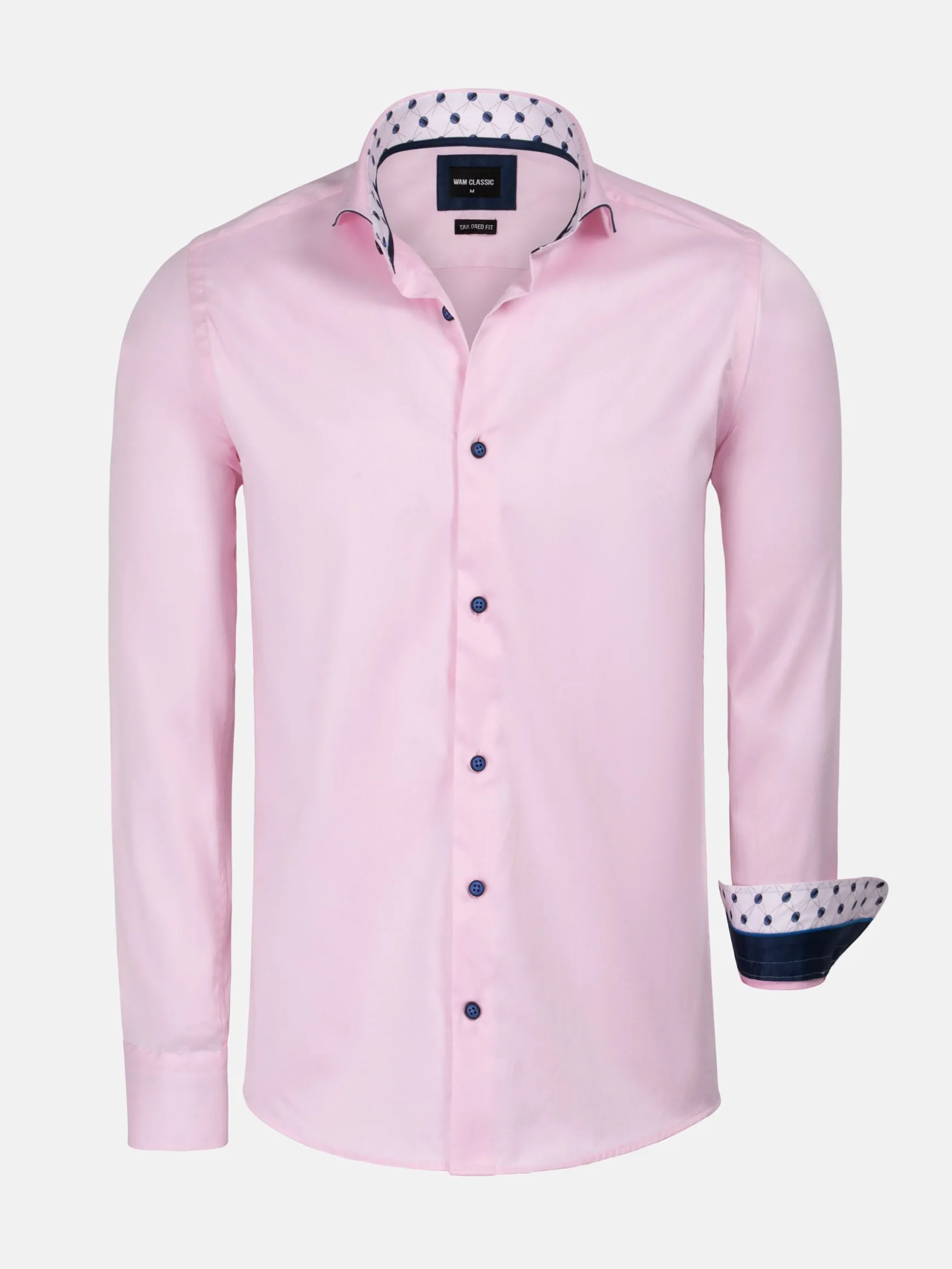 Overhemd met lange mouwen in mooi roze. De drie knopen in de hals zijn mooi afgewerkt en geven het overhemd een fraaie look. Dit overhemd met colbert staat mooi op een pantalon, maar kan even goed gedragen worden op jeans voor een lossere uitstraling.