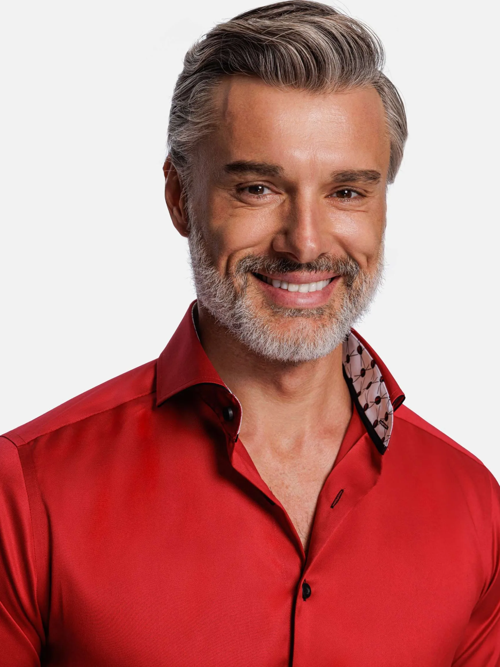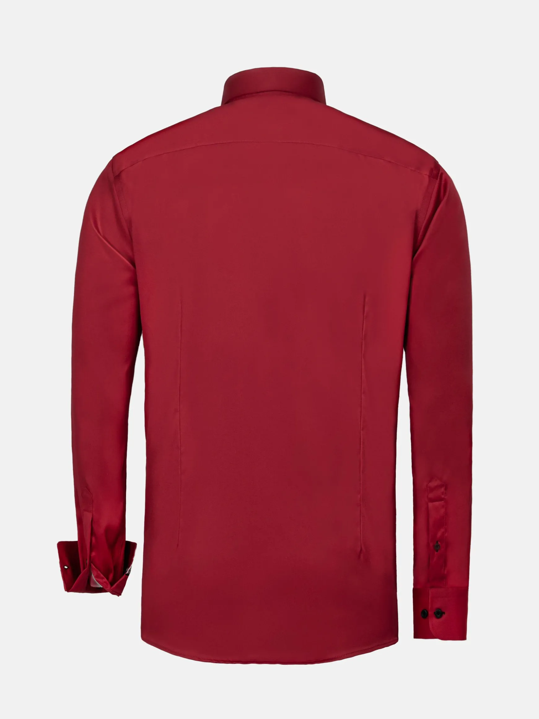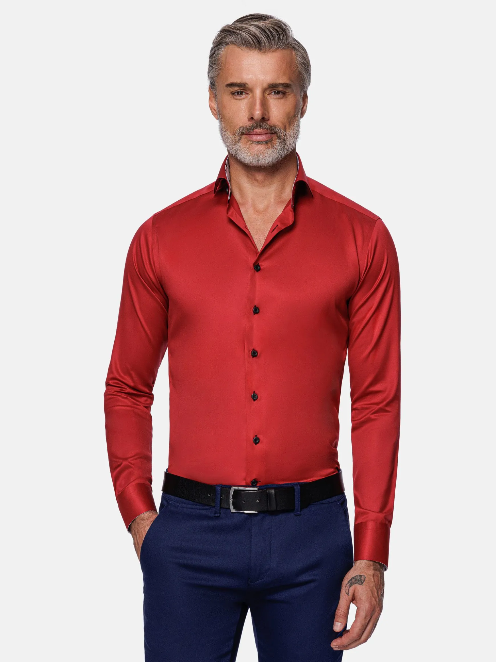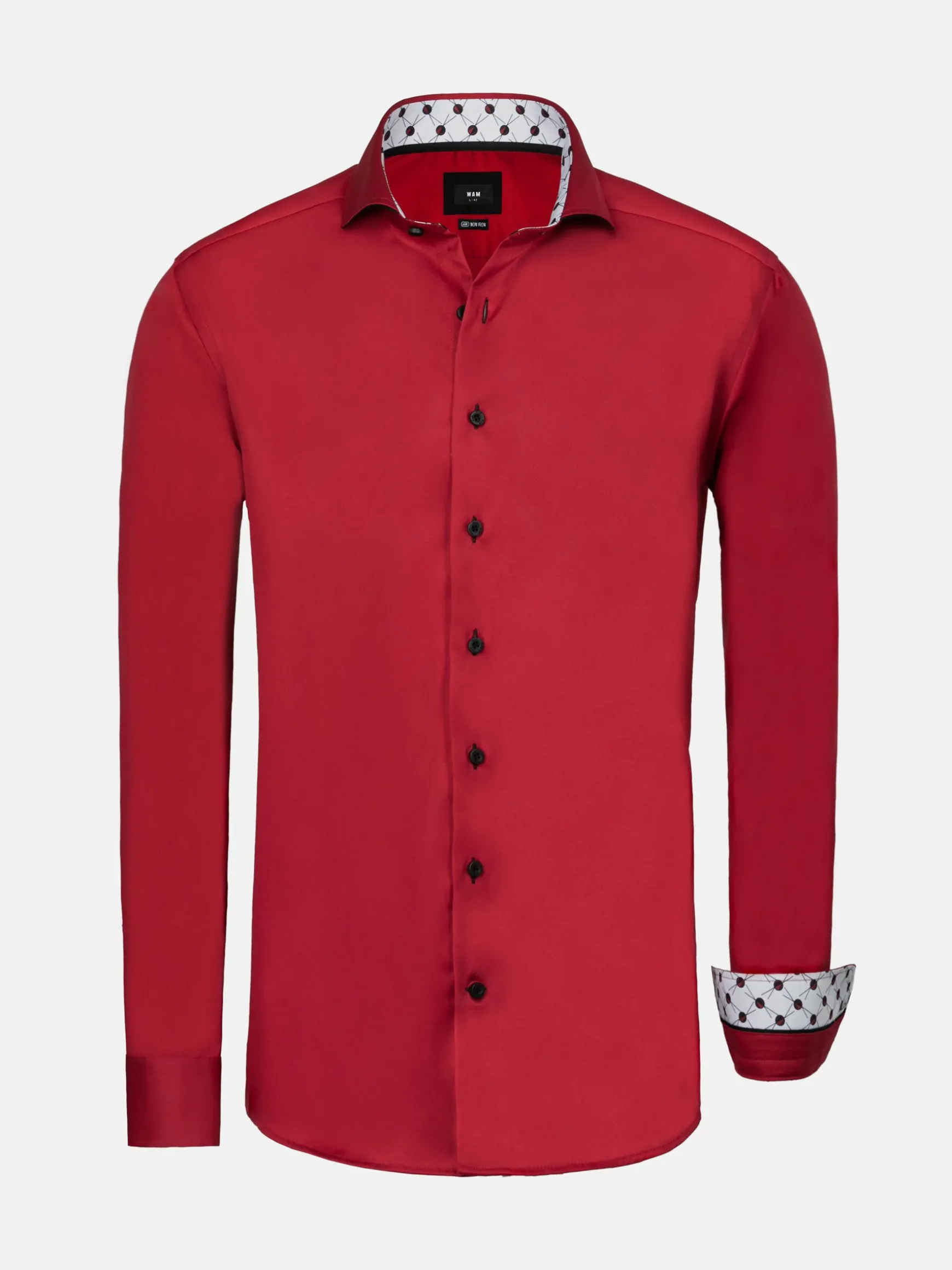 Duik in de wereld van ongeevenaarde verfijning met ons Solid Red Long Sleeve Shirt. Ervaar tijdloze stijl en comfort, zorgvuldig gemaakt met een cut-away kraag voor een exquise touch. Verhoog je garderobe vandaag nog en omarm de essentie van verfijnde mode