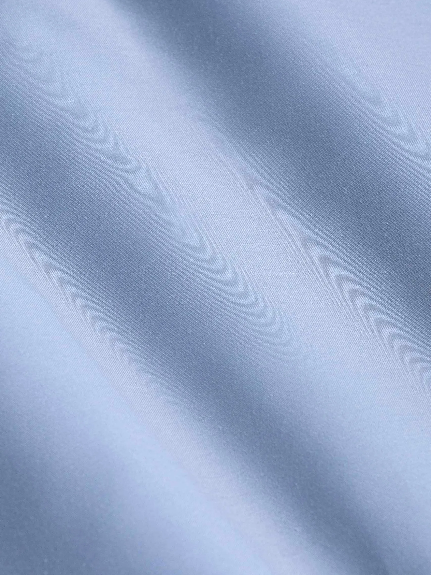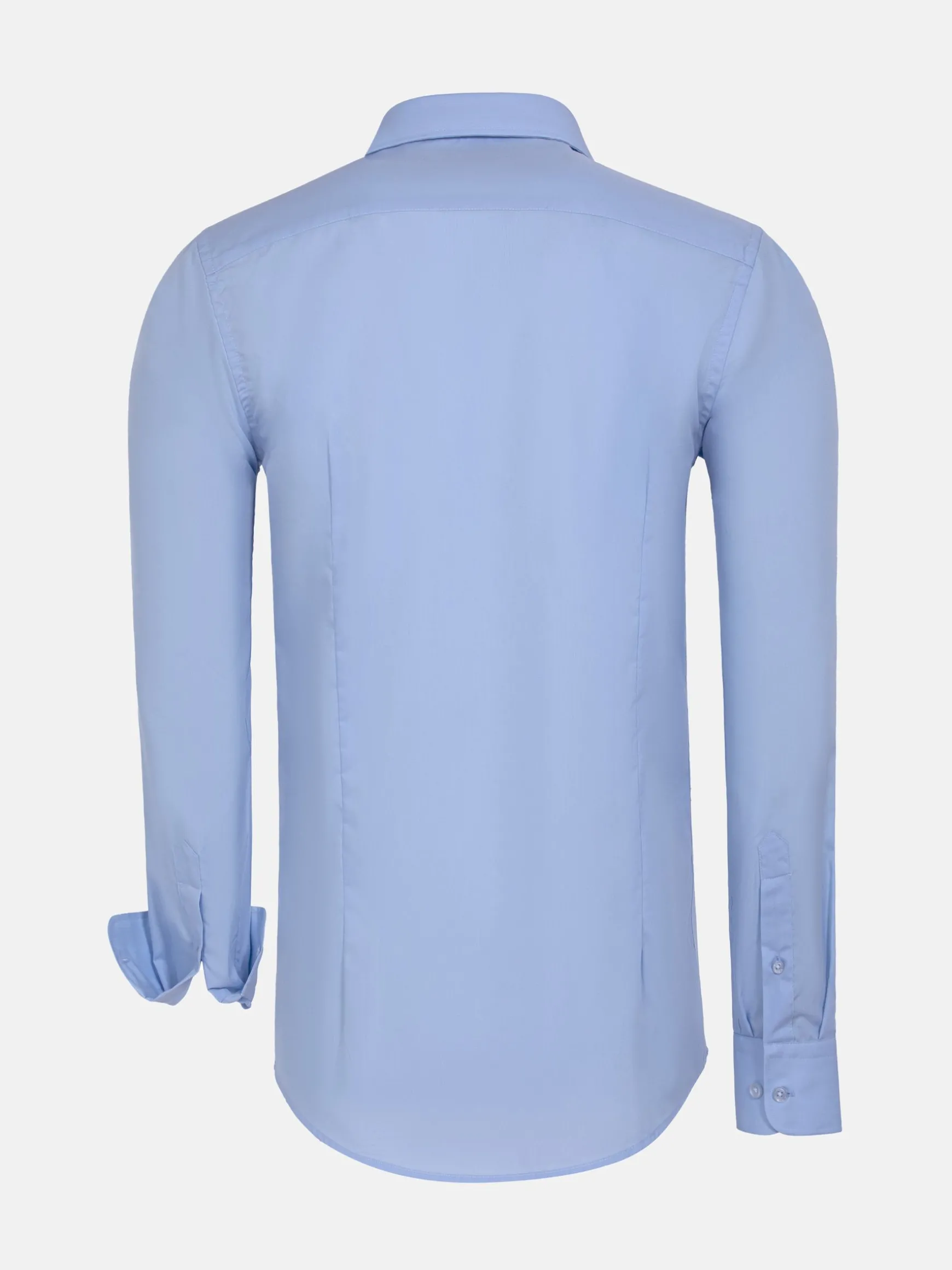 Lichtblauw overhemd met knoopsluiting en lange mouwen. Dit prachtige overhemd staat zowel goed op een pantalon als op jeans en loopt licht af aan de onderkant. Afgewerkt met knopen met een lichte glans.