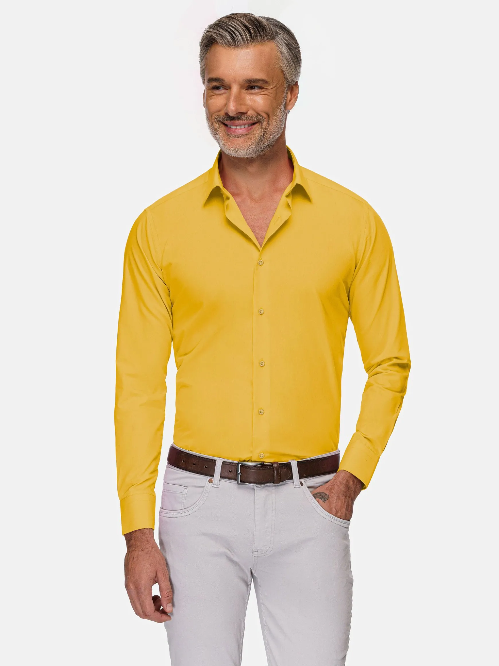 WAM DENIM Overhemd Lange Mouwen*Leira Solid Yellow Overhemd Lange Mouw