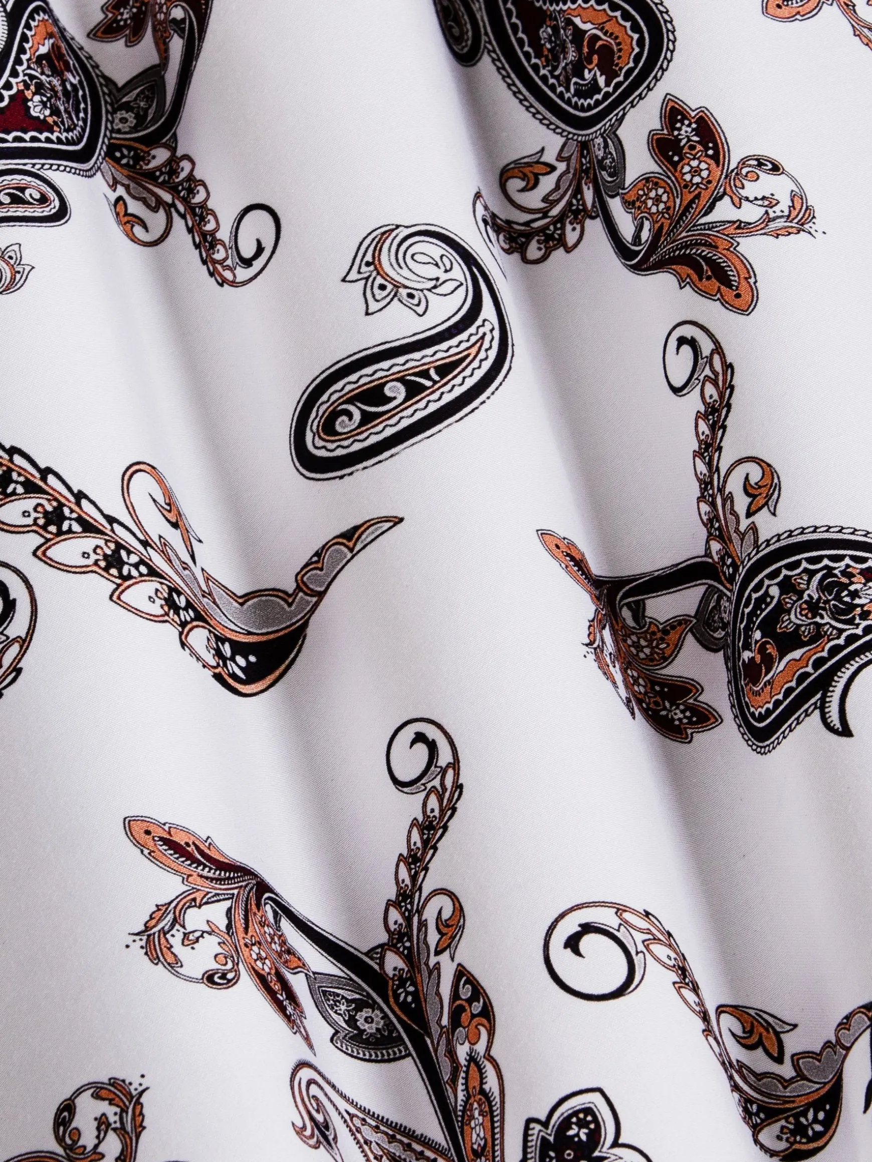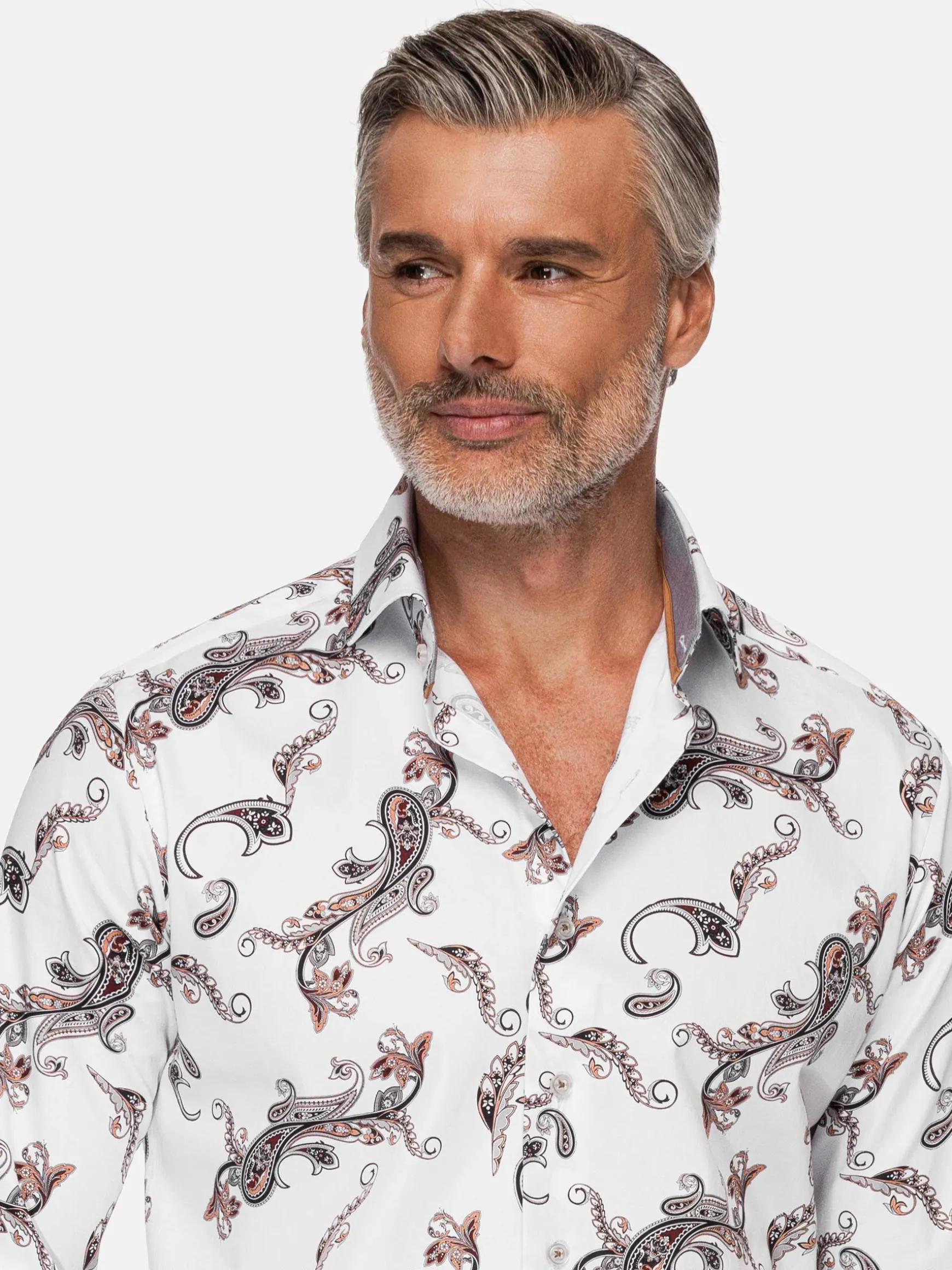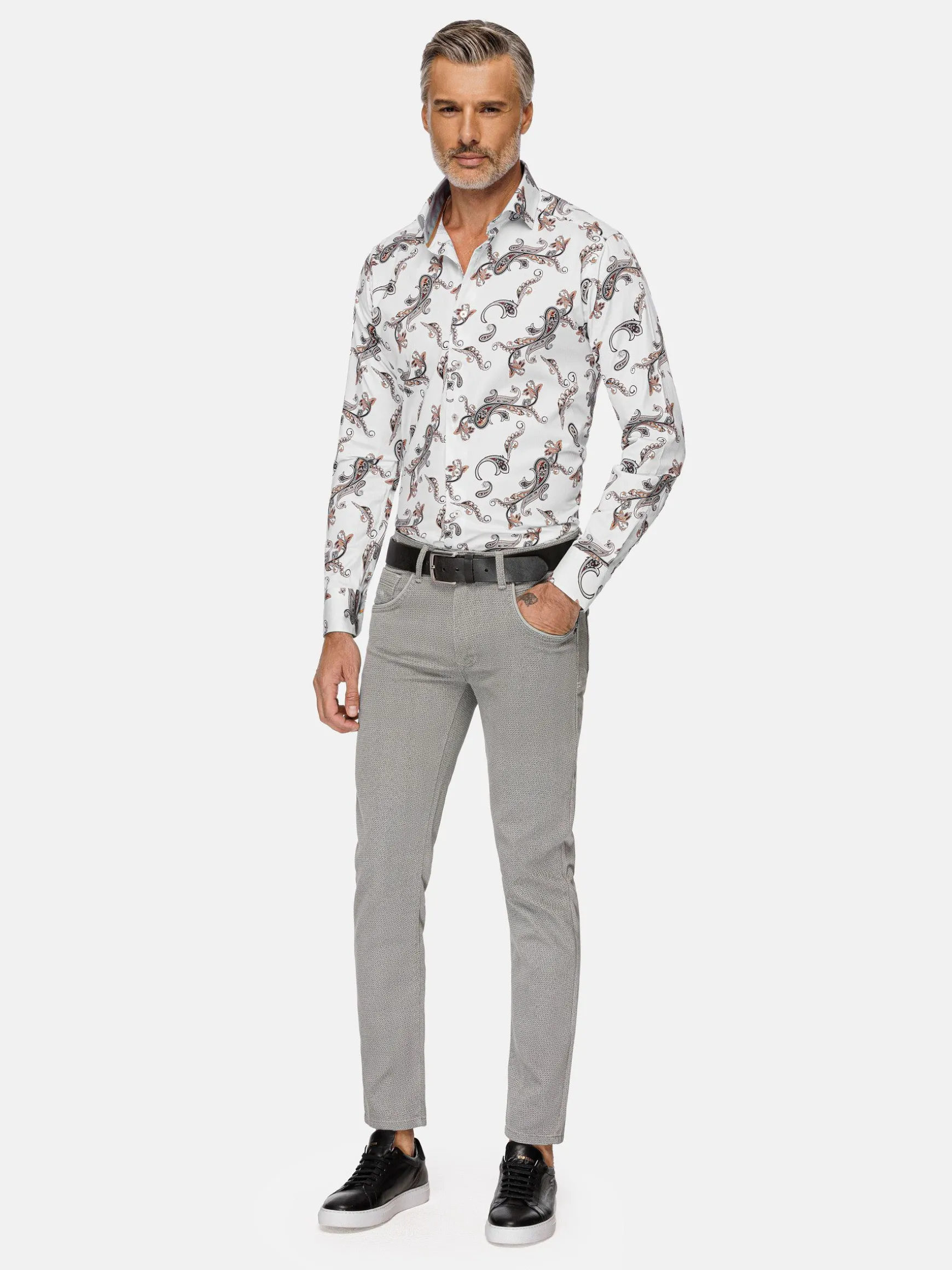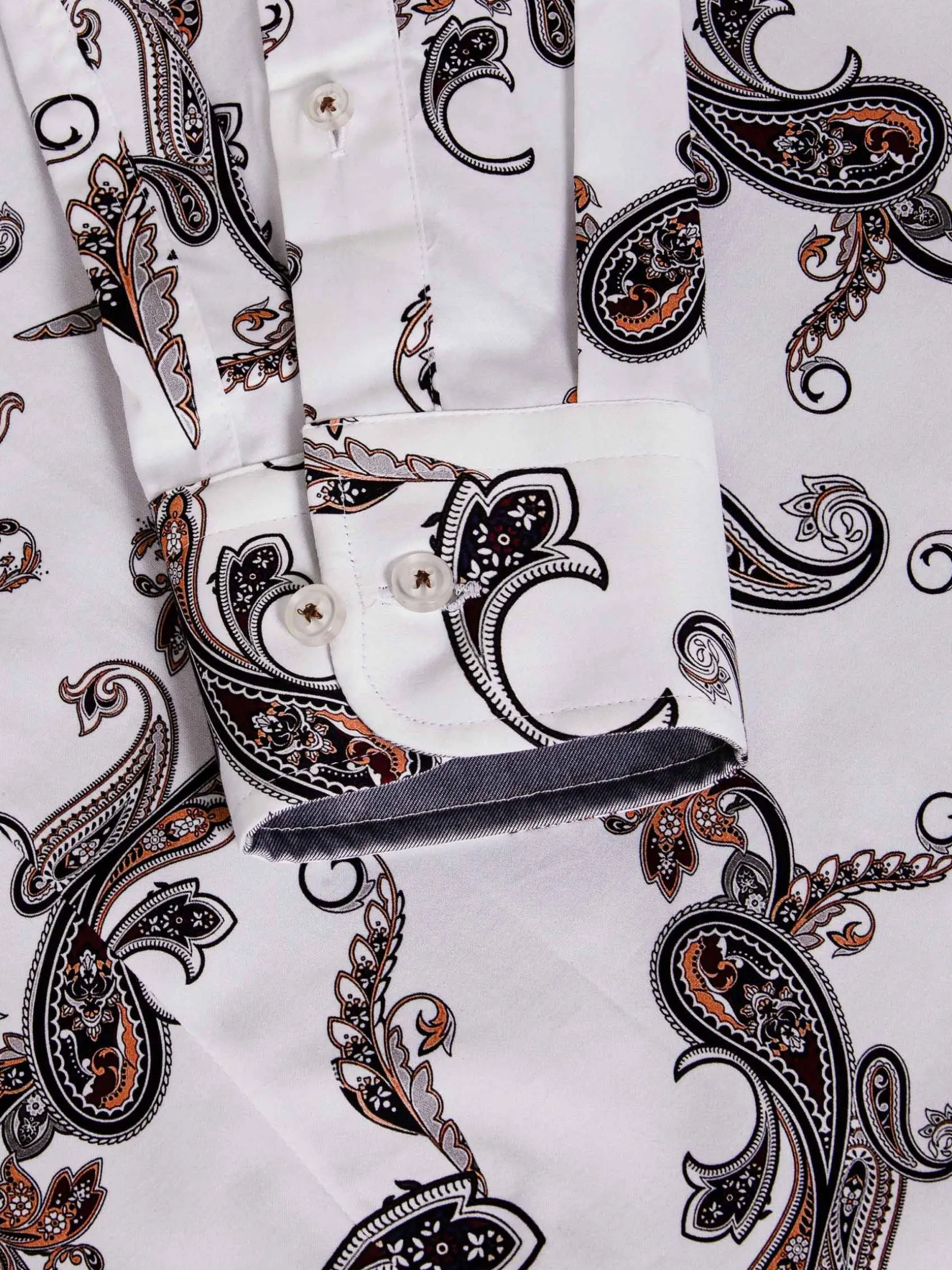 Paisley, een perfecte mix van hedendaagse elegantie en tijdloze charme. Het verbluffende witte paisley bloemenpatroon straalt verfijning uit die werkelijk ongeëvenaard is. Het ingewikkelde bloemmotief voegt een vleugje verfijning toe, waardoor het een veelzijdige keuze is voor elke gelegenheid, of het nu een formeel evenement is of een informeel samenzijn met vrienden. Dit witte paisley overhemd heeft een lange witte mouw met een paisley bloemenprint, waardoor het een must-have toevoeging aan je garderobe is. Ervaar de allure van paisley print, de aantrekkingskracht van witte bloemen en het pure comfort van dit stijlvolle overhemd met paisley witte bloemenprint met lange mouw.