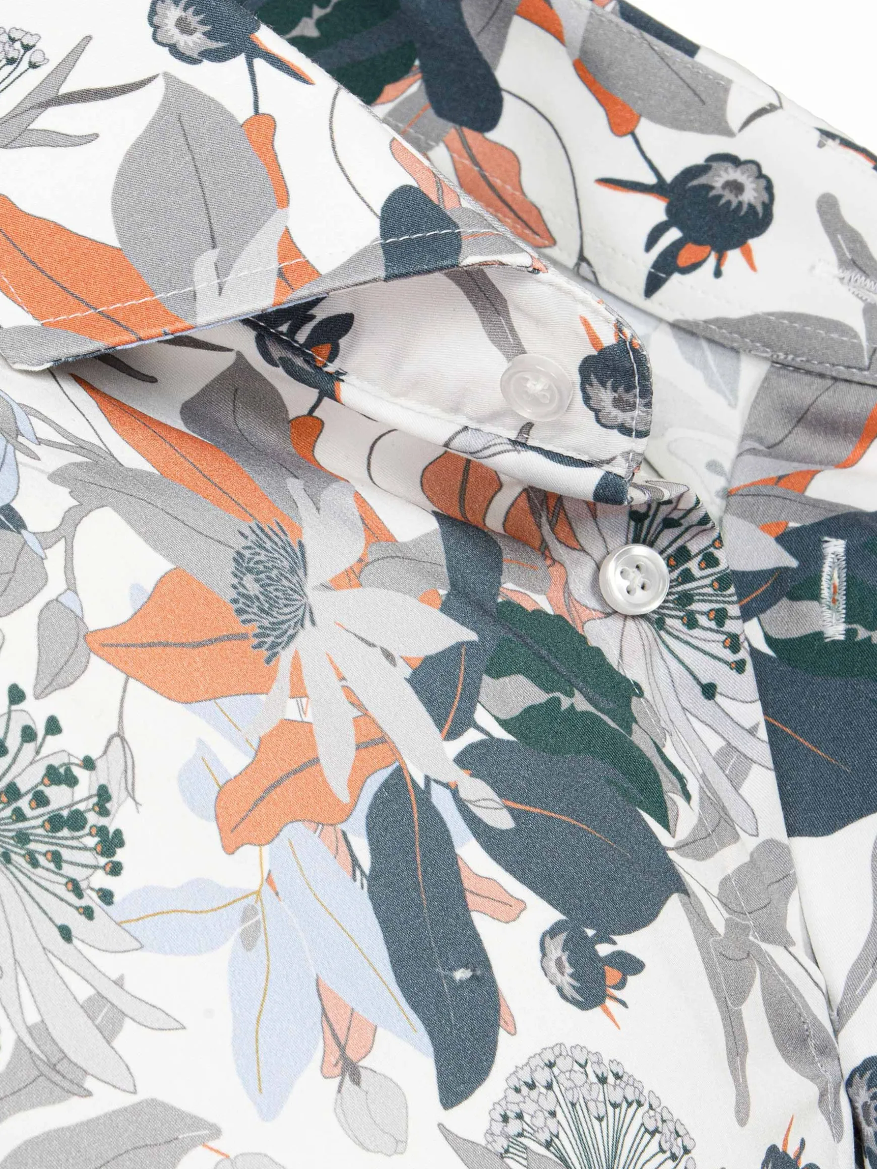 Porto White Overhemd, combineert moderne elegantie met een unieke stijl. Met een opvallend bloemenpatroon op een zwarte achtergrond valt dit overhemd op in elke menigte. De cutaway kraag voegt een eigentijds accent toe, terwijl de enkele manchet met twee knoopsluitingen zorgt voor een verfijnde afwerking. Ideaal om een stijlvol statement te maken in zowel een professionele als casual omgeving.