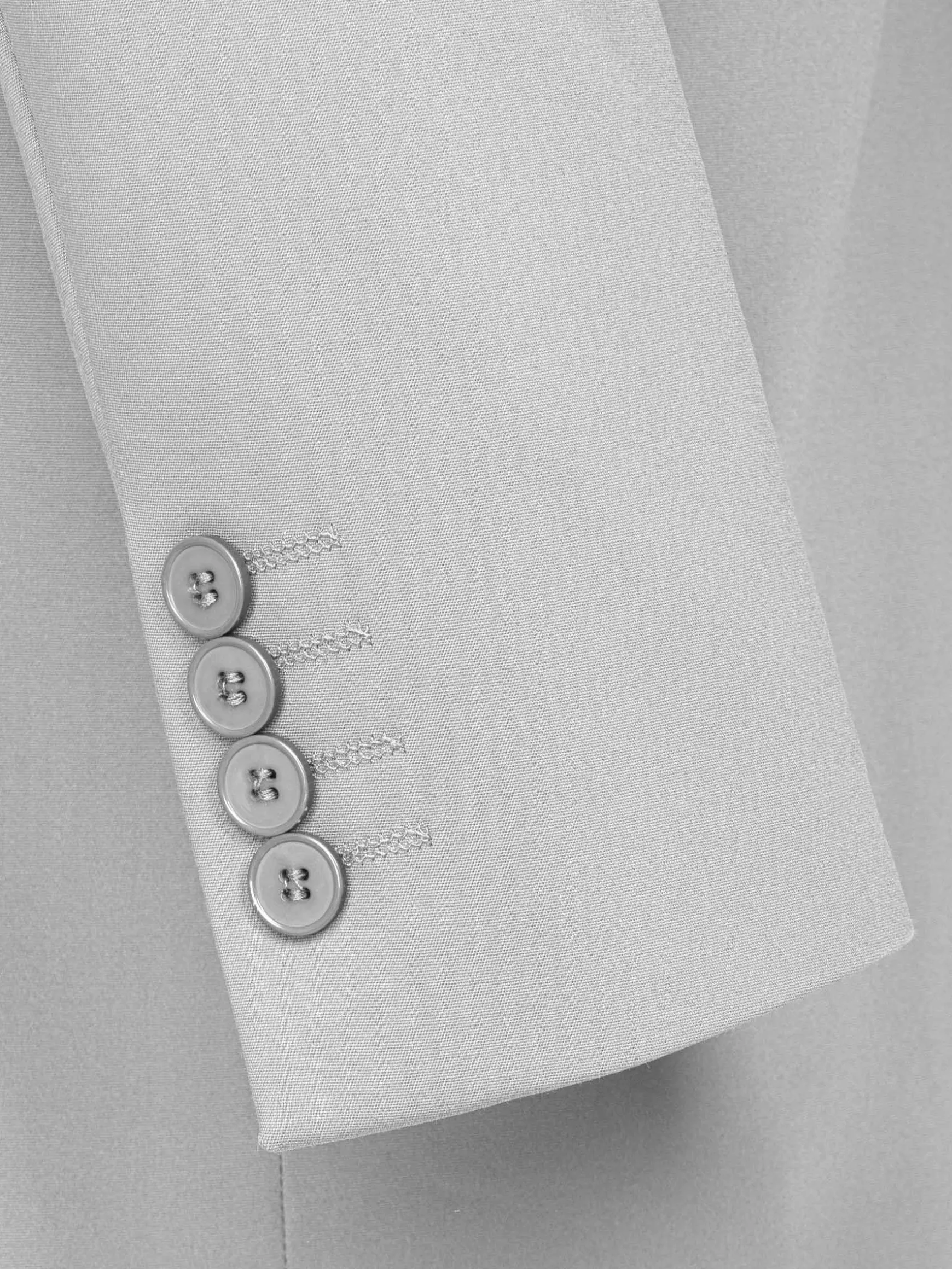 De Colten Light Grey Blazer combineert verfijning en moderne stijl met zijn revers, slanke pasvorm en enkele hoornen knoopsluiting. Het heeft praktische elementen zoals een borstzak, binnenzakken, een kleine zak met paspel en chirurgenmanchetten met functionele knoopsgaten. Zijsplitjes zorgen voor comfort en beweging, terwijl de zwarte voering en paspelzakken bijdragen aan de verfijnde elegantie, waardoor het perfect is voor elke gelegenheid.