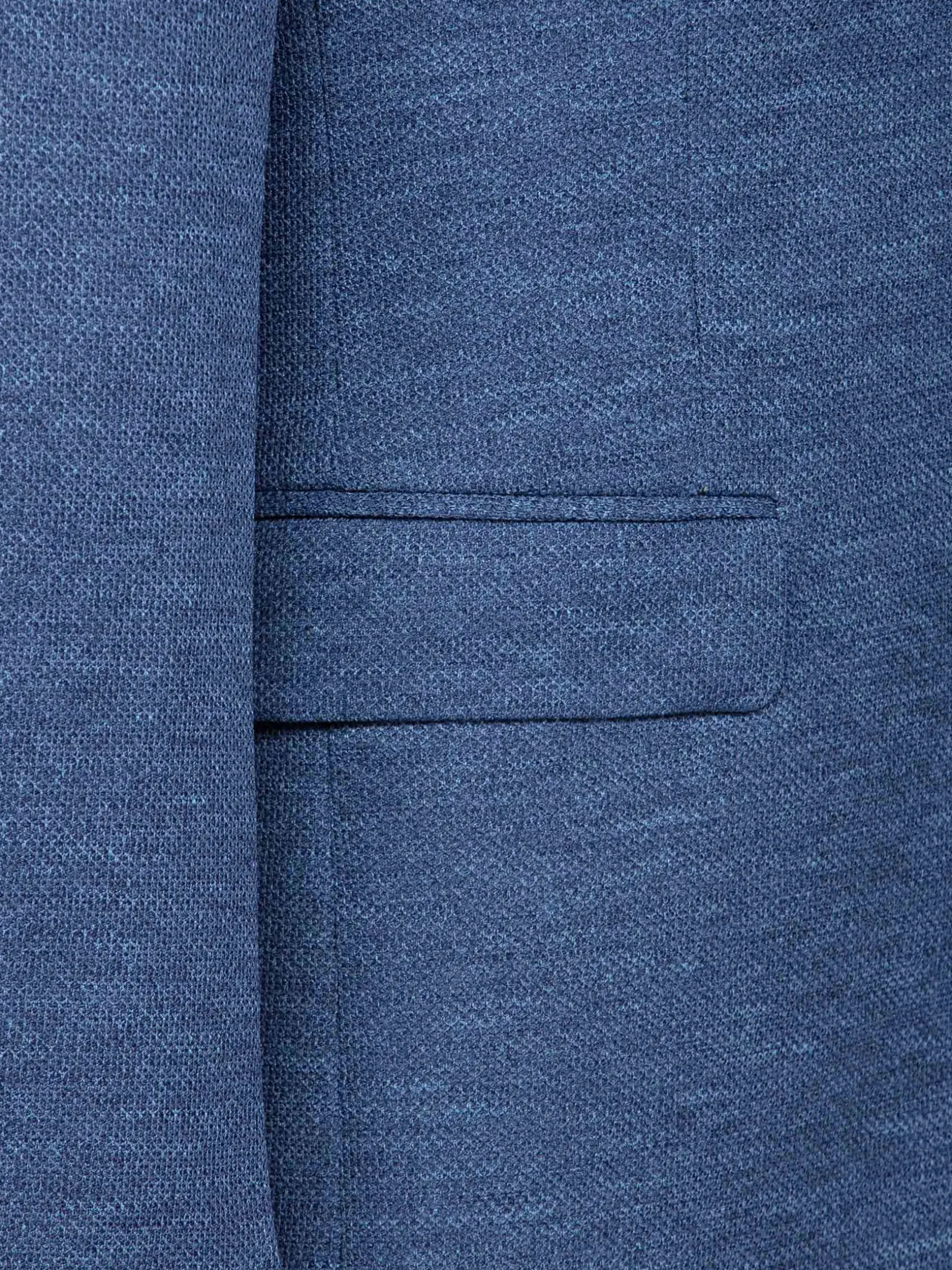 David Paul Single Breast Blue Blazer heeft een gestroomlijnd single-breasted ontwerp, tweeknoops Notch Lapel, slim fit pasvorm, stretchstof voor comfort, klepzakken, verborgen steekzakken en een klassieke borstzak.