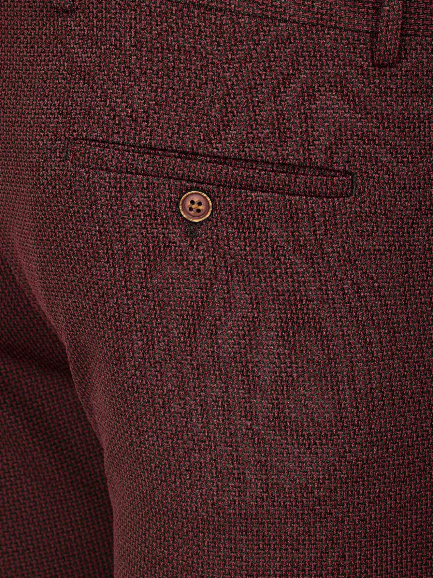 Franco Donkerrode broek is jouw go-to modestuk! Deze precies op maat gemaakte broek heeft een smalle pasvorm die je lichaam eenvoudig verlengt. Dankzij de stretchstof ervaar je het allerbeste comfort. Deze broek combineert stijl en functionaliteit met zijn handige ritssluiting en vier ruime zakken.