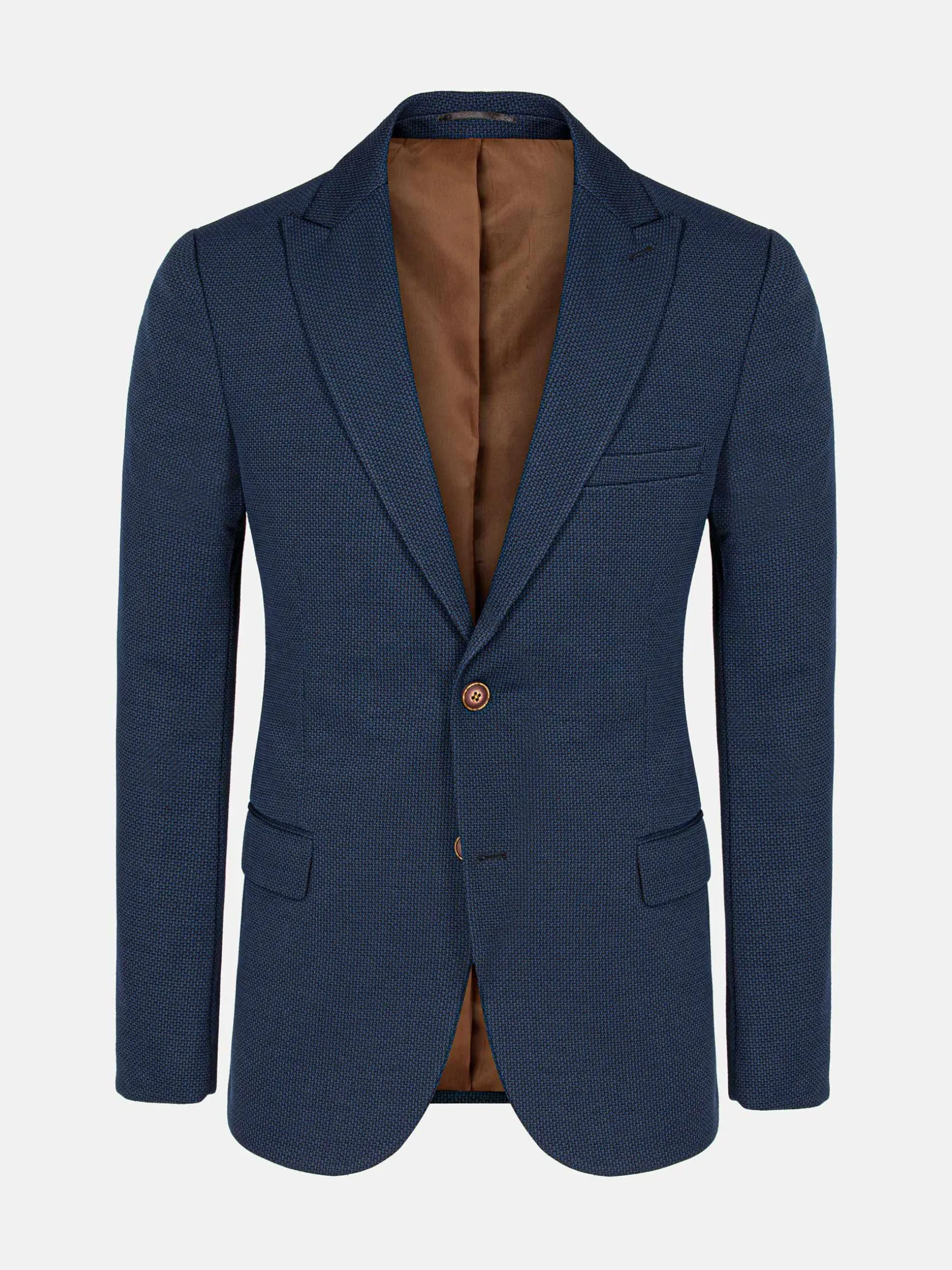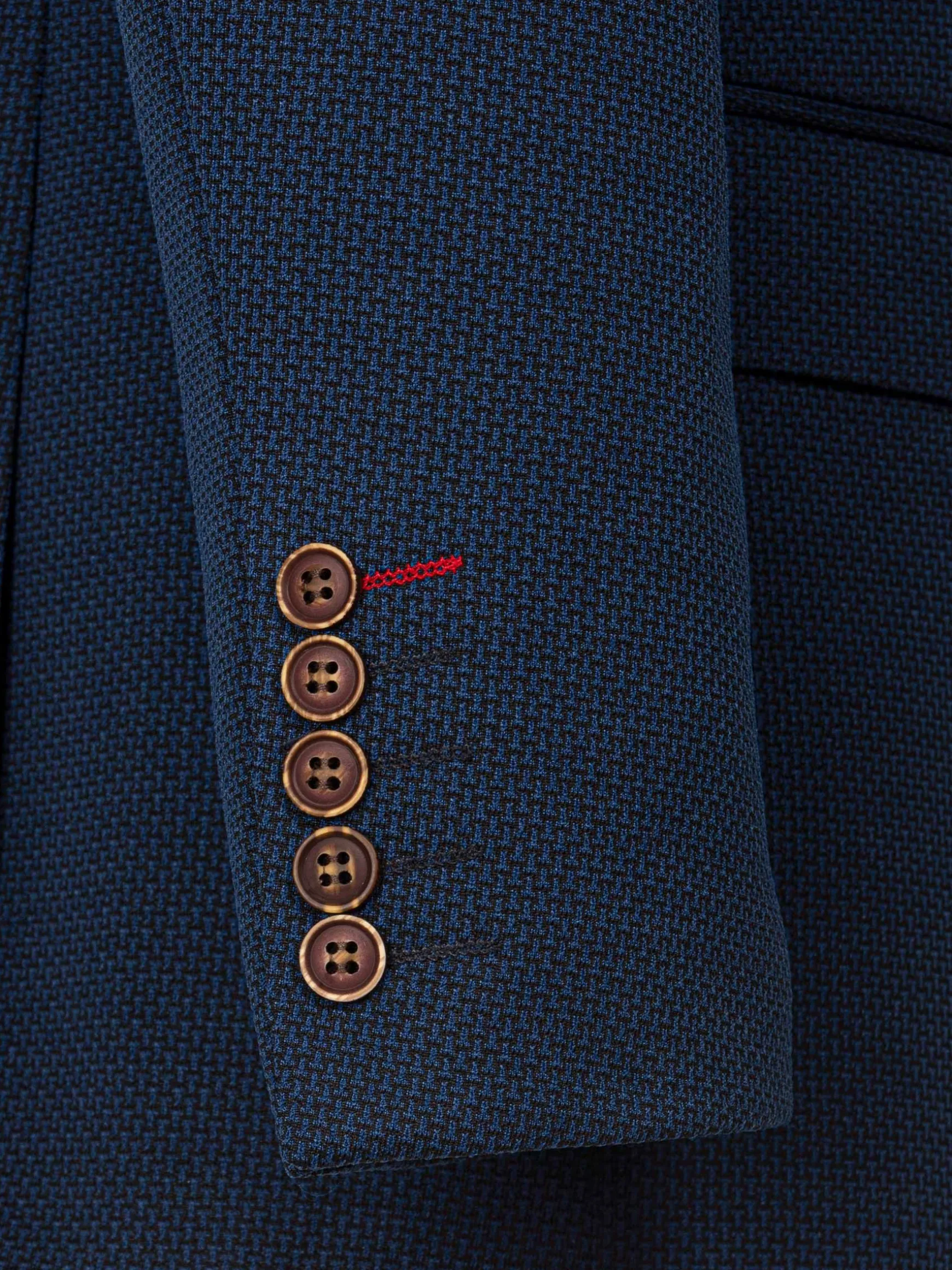 Franco Royal Blue Blazer, met een kenmerkende Nails head stoftextuur. Deze slim-fit blazer biedt een gestroomlijnde look met een single-breasted ontwerp en Peak revers. Het heeft praktische details zoals binnen- en klepzakken, samen met een paspelzak op de borst voor extra raffinement. Compleet met vijf hoornen knopen en twee zijopeningen aan de achterkant, combineert deze blazer elegantie met functionaliteit voor een opvallend ensemble. Perfect voor elke gelegenheid.