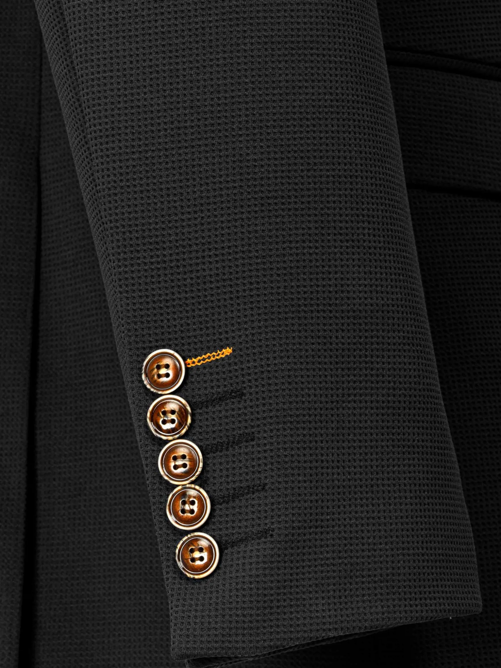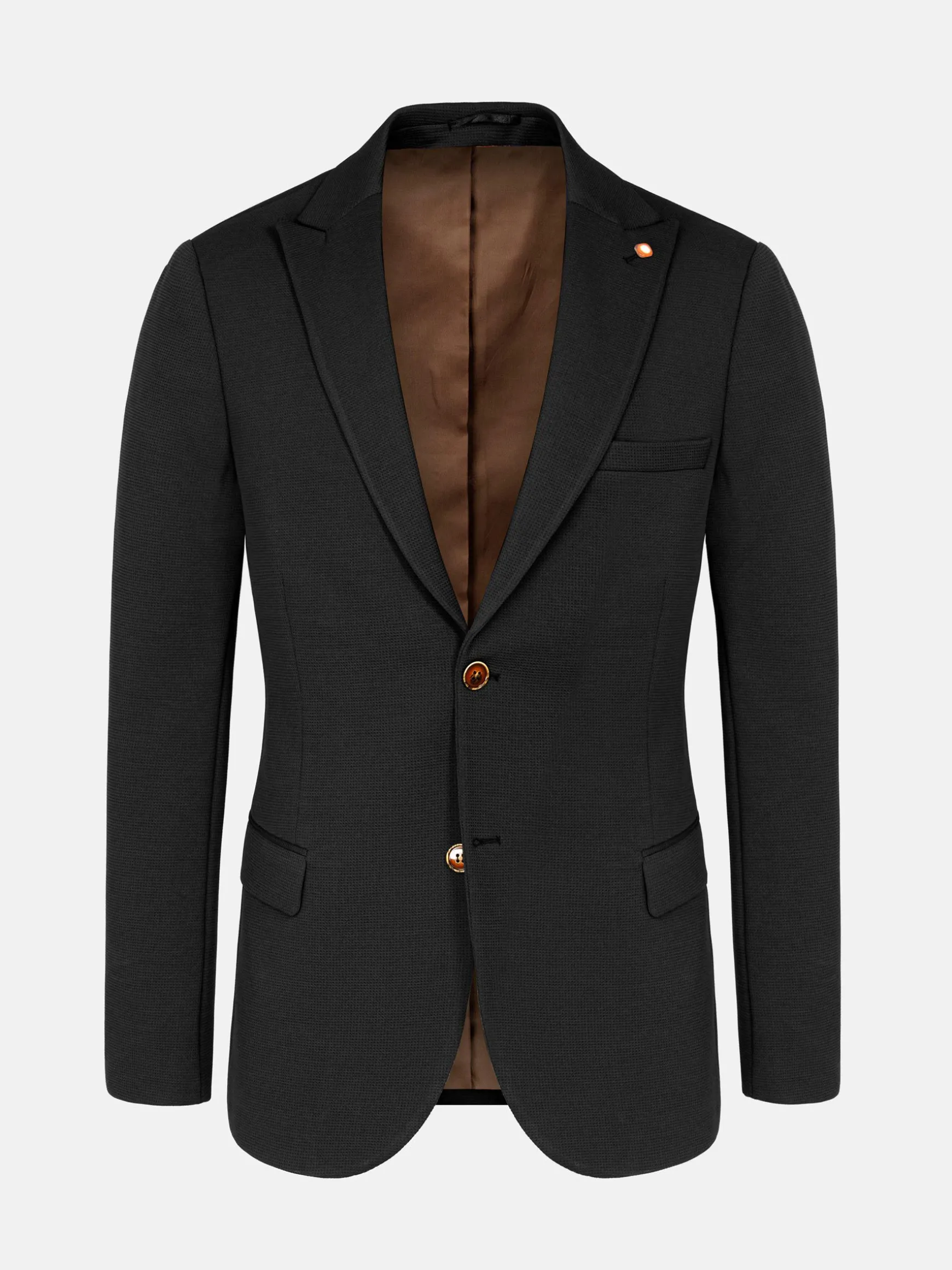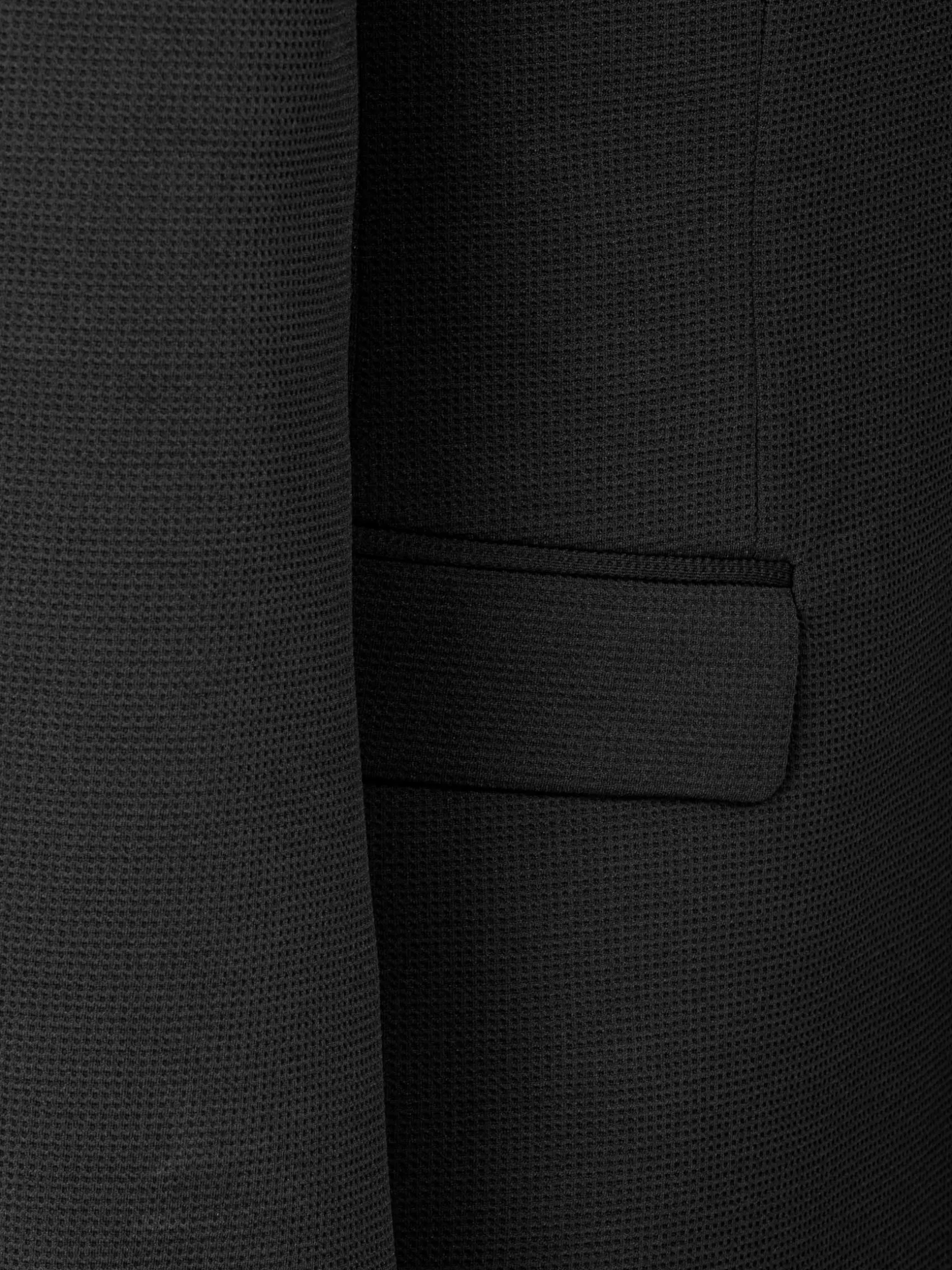 Jeremias Black Blazer, met een kenmerkende Graph-textuur. Deze slim-fit blazer biedt een gestroomlijnde look met een single-breasted ontwerp en Peak revers. Het heeft praktische details zoals binnen- en klepzakken, samen met een paspelzak op de borst voor extra raffinement. Compleet met vijf hoornen knopen en twee zijopeningen aan de achterkant, combineert deze blazer elegantie met functionaliteit voor een opvallend ensemble. Perfect voor elke gelegenheid.
