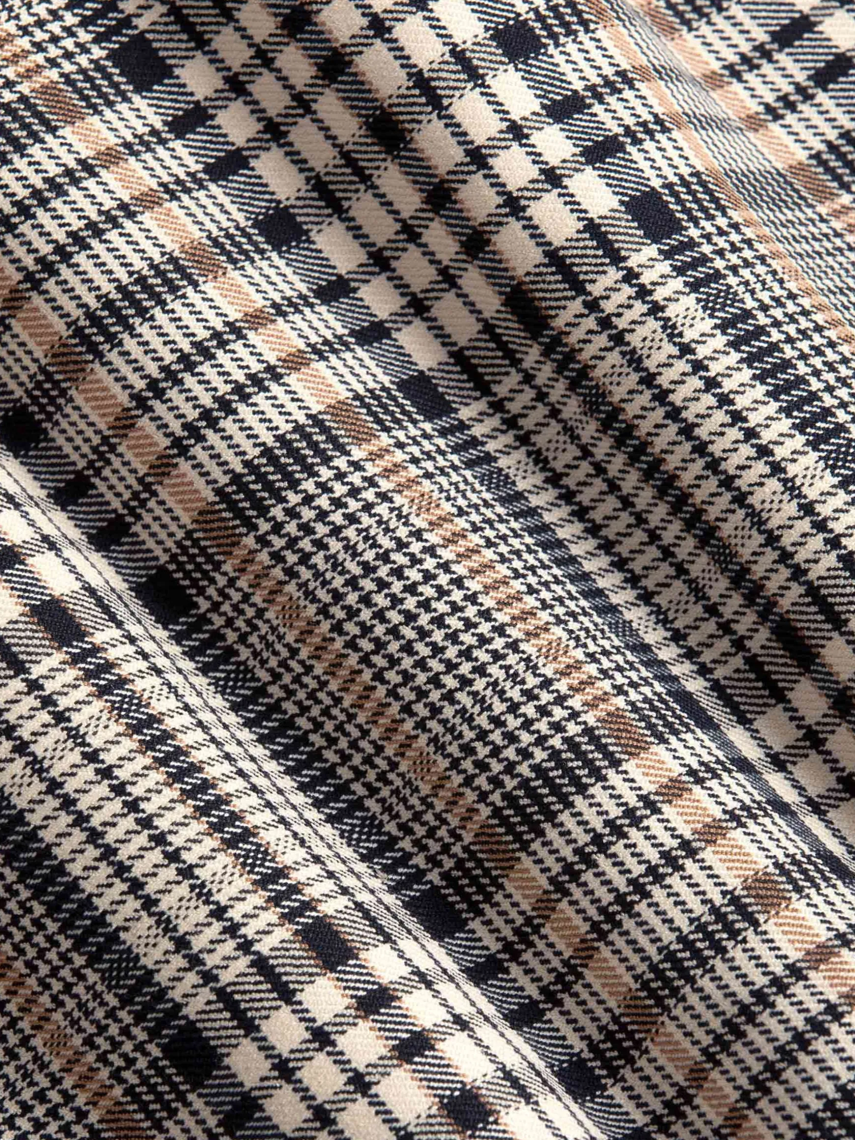 Mitchell Skinny Fit Beige Navy Pant. Deze broek is gemaakt van stretchy tartan stof en heeft een strakke skinny fit die met je meebeweegt. De ritssluiting zorgt voor een goede pasvorm, terwijl de beige en marine kleurencombinatie een moderne touch geeft aan elke outfit. Deze broek is perfect voor zowel casual als formele gelegenheden en combineert comfort en stijl moeiteloos.