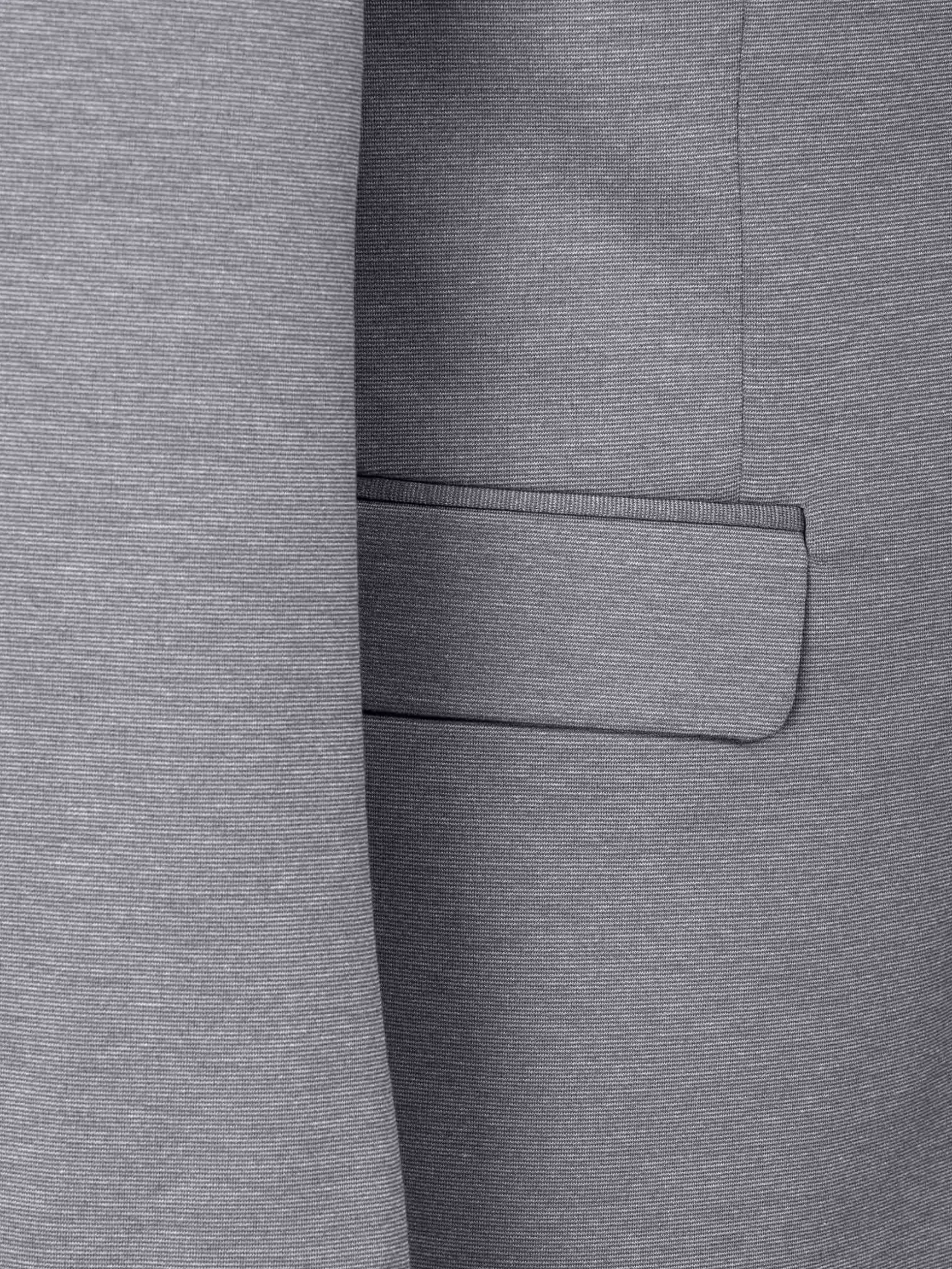Guillermo Anthracite Blazer, met een kenmerkende Shark Skin-textuur. Deze slim-fit blazer heeft een gestroomlijnde look met een enkele rij knopen en een Peak revers. Het heeft praktische details zoals binnen- en klepzakken, samen met een paspelzak op de borst voor extra raffinement. Compleet met vijf hoornen knopen en twee zijopeningen aan de achterkant, combineert deze blazer elegantie met functionaliteit voor een opvallend ensemble. Perfect voor elke gelegenhei.