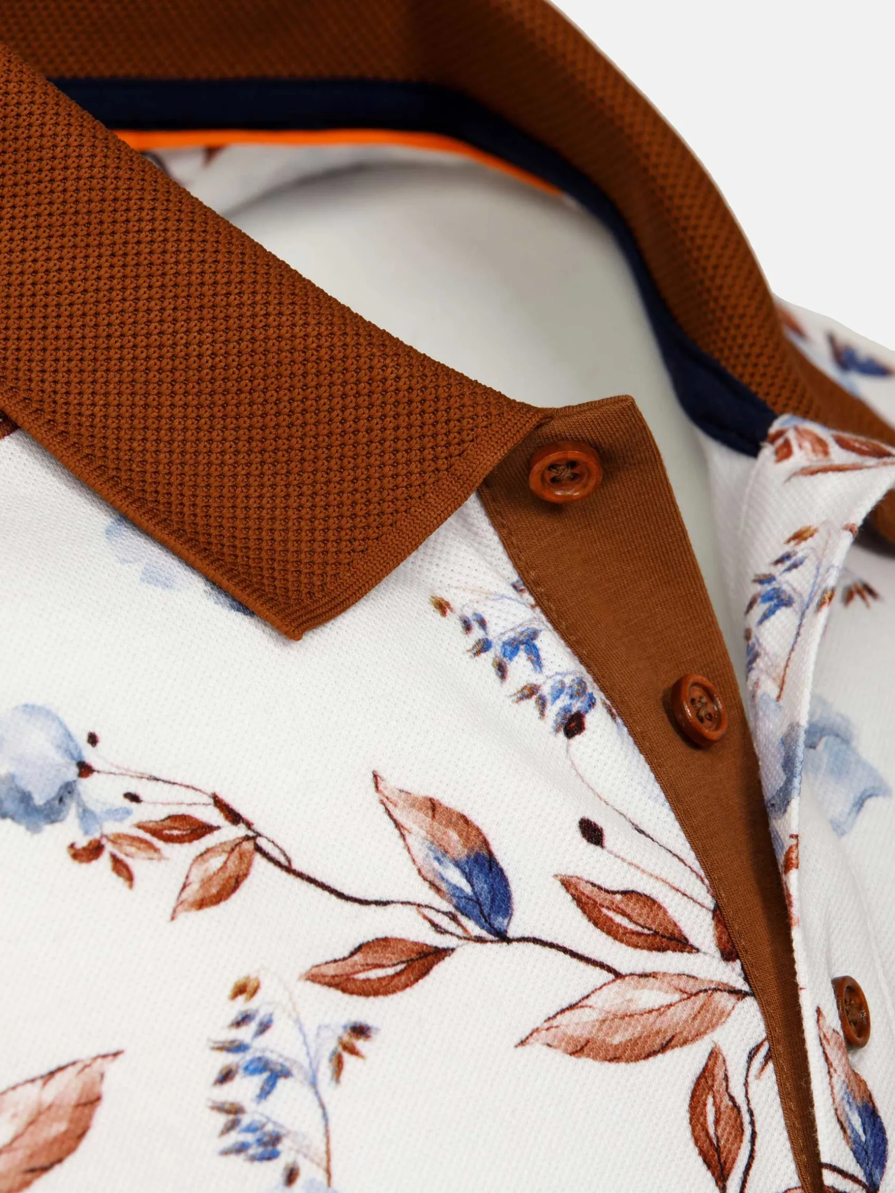 Felix White Polo. een mix van tijdloze elegantie en moderne stijl. Met een klassieke polo hals, ingewikkelde bloemenprints op een witte achtergrond en twee chique kleurencombinaties, biedt het veelzijdigheid voor elke gelegenheid. Met geribde boorden en een slim-fit ontwerp, zorgt het voor zowel comfort als verfijning.
