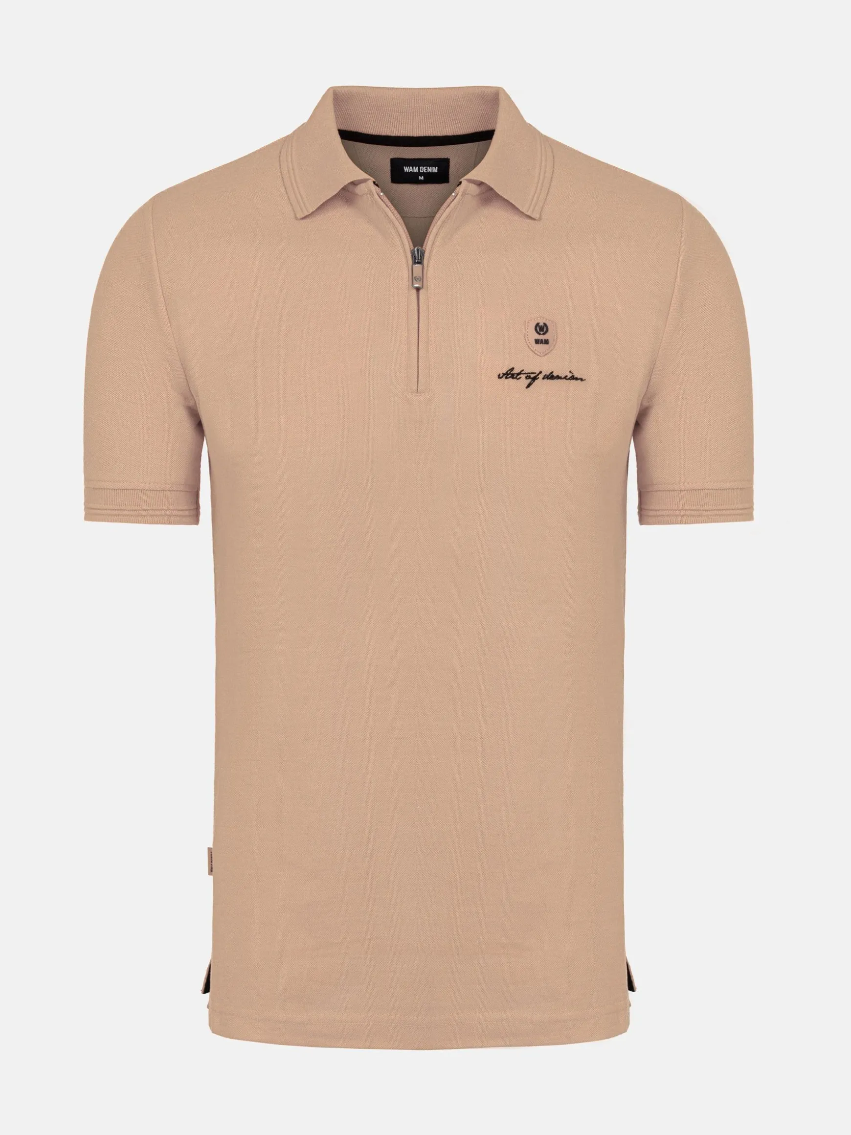 Soren Beige Polo. Deze slim fit polo heeft een klassieke kraag en een gestroomlijnde ritssluiting voor een moderne twist. De stretchstof en gesplitste zoom zorgen voor comfort en mobiliteit, terwijl de geribde manchetten en zoom zorgen voor een verfijnde afwerking. De Soren Beige Polo is perfect voor elke gelegenheid en combineert moeiteloze stijl met geavanceerd comfort.