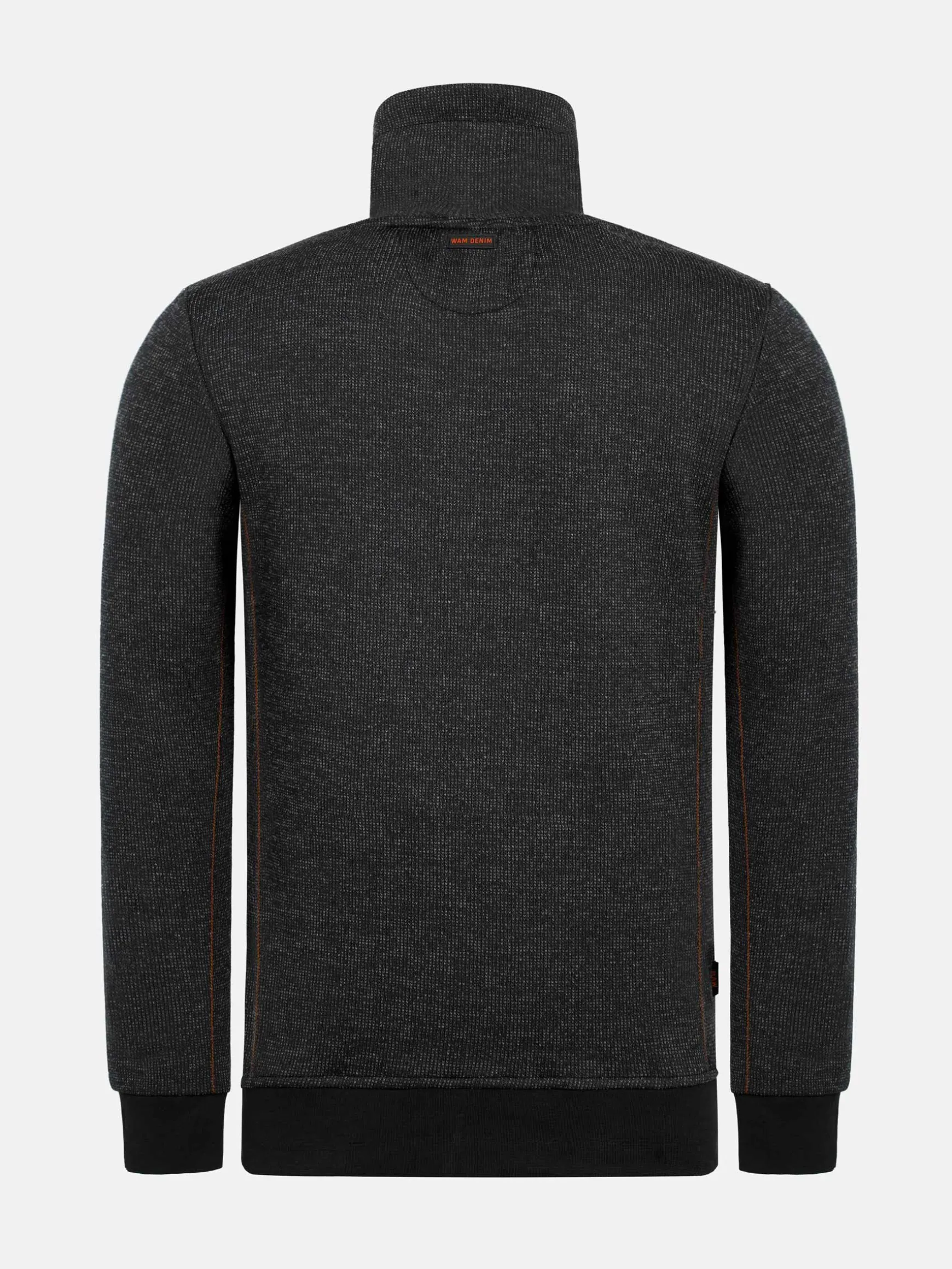 De Cain High Neck Black Sweater heeft een gestroomlijnde geometrische textuur, een hoge hals met gedeeltelijke rits voor aanpasbaar comfort en contrasterende bruine schouders voor een sportieve touch. Hij is gemaakt van stretchstof met geribde zoom en manchetten en biedt warmte, ademend vermogen en een verfijnde look.