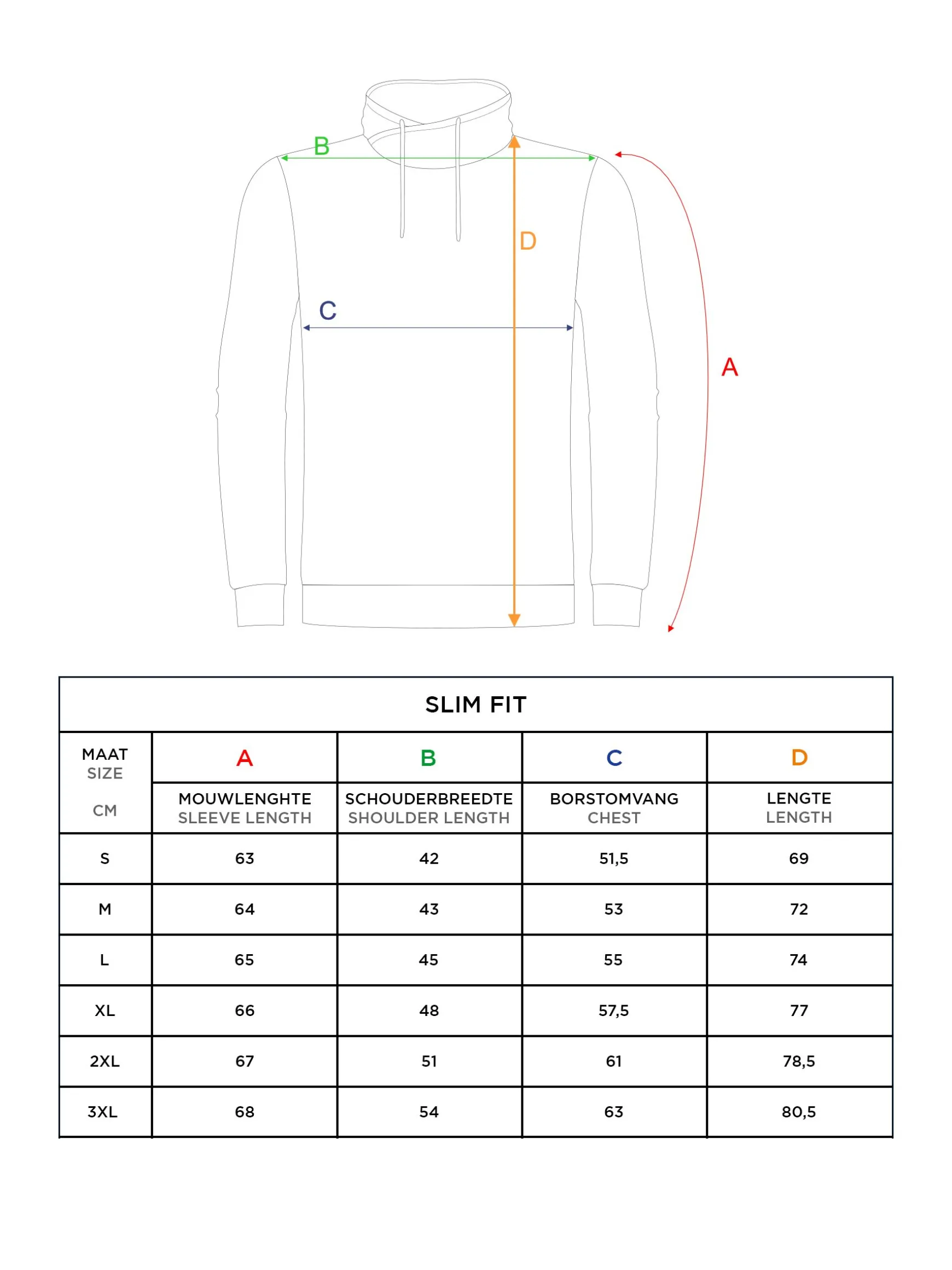 Bestaat uit 100% katoen. Om de kwaliteit te behouden, raden we aan deze trui binnenstebuiten te wassen op 30°C. Niet bleken. Strijken op een temperatuur van maximaal 110°C. Niet geschikt voor de droger.