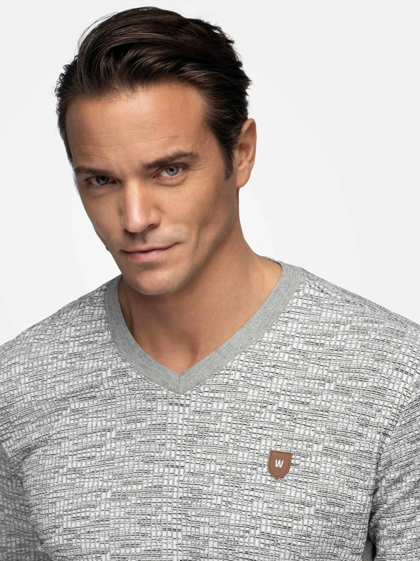 Deze trendy en warme sweater is gemaakt van hoogwaardig materiaal en is comfortabel ademend. Dit casual model heeft een V-hals en een elastische boord en manchet. De bruine stiksels rondom de onderkant geven deze veelzijdige trui een stoer uiterlijk. De sweater kan op een jeans worden gedragen en over een overhemd worden gegooid voor een casual smart look.