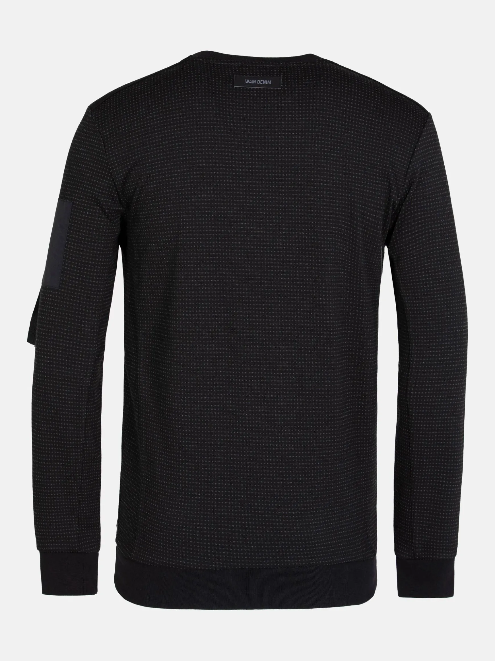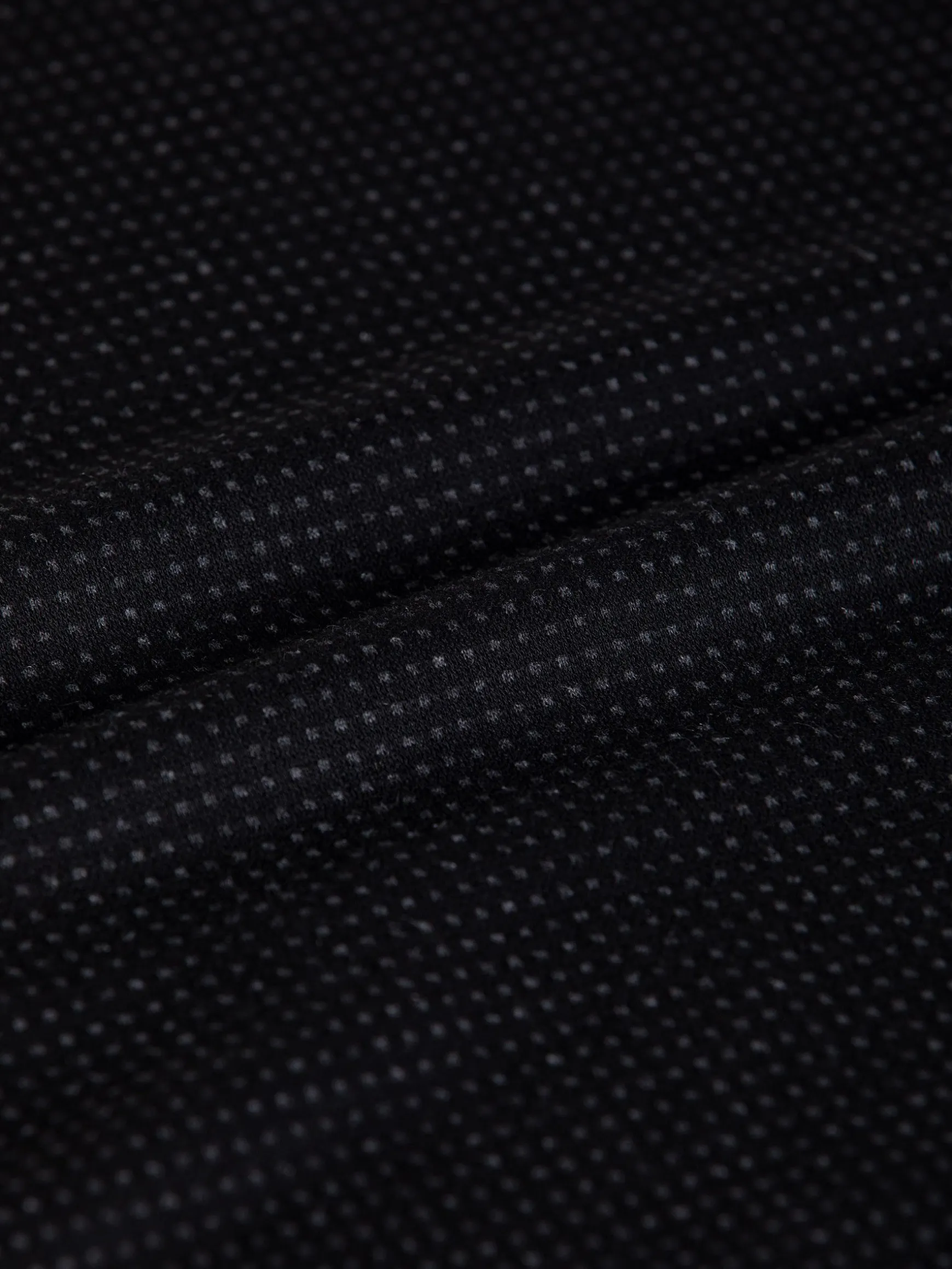 Zwarte trui met ronde hals en heel fijn stippenpatroon voor een mooi effect. De trui heeft een merkembleem op de achterkant in de hals en suède banden op de schouders. De trui heeft een elastisch boord aan de onderkant voor een perfecte pasvorm. De uiteinden van de mouwen zijn ook van stretch.