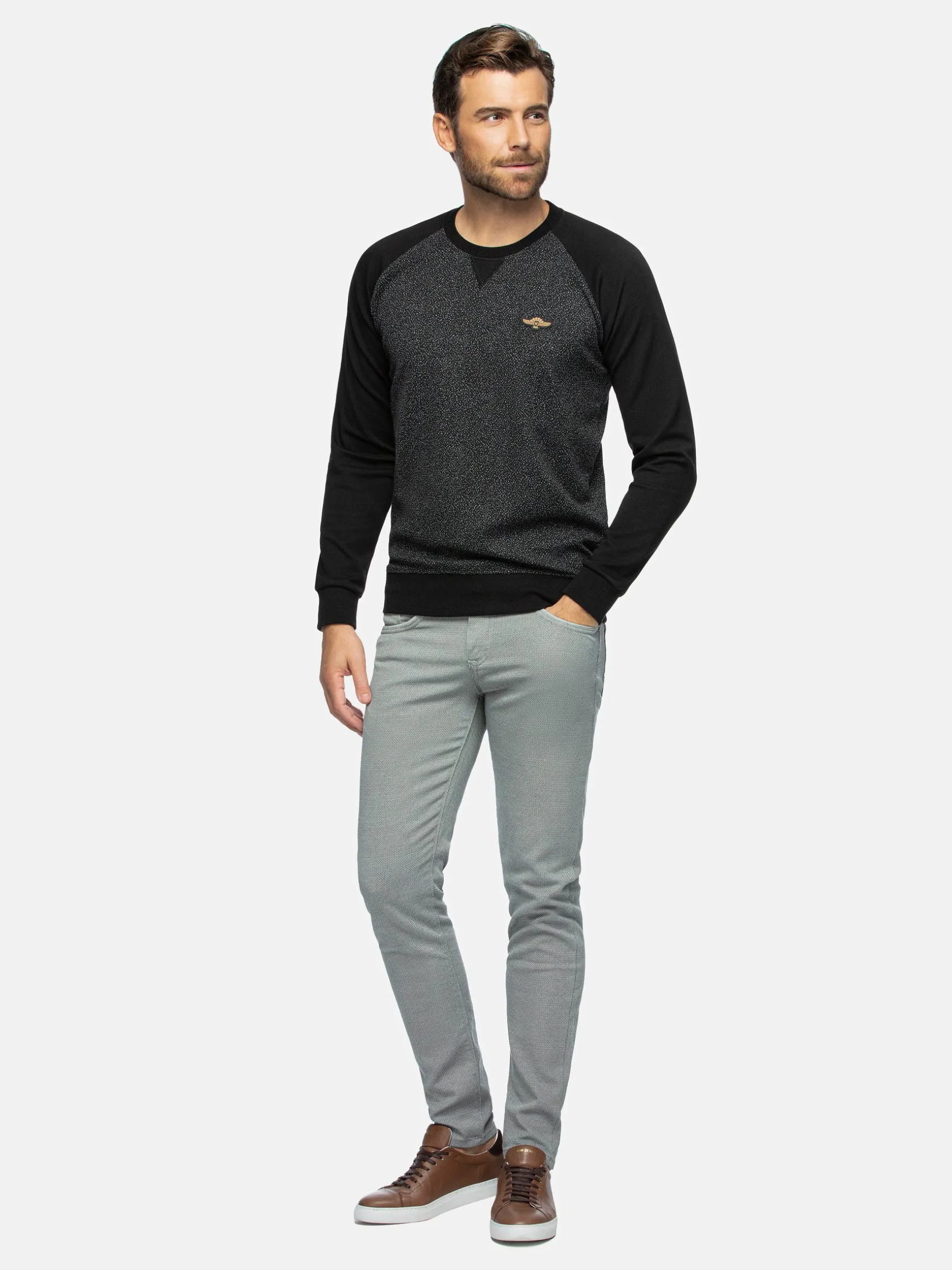 Deze zwarte sweater met ronde hals heeft een mooi en origineel design. De subtiele, witte stippen op de zwarte achtergrond geeft een fraai effect. De sweater voelt door de stof heel zacht aan. Staat goed op een chino of jeans en is het hele jaar door te dragen. Ook verkrijgbaar in navy kleur.