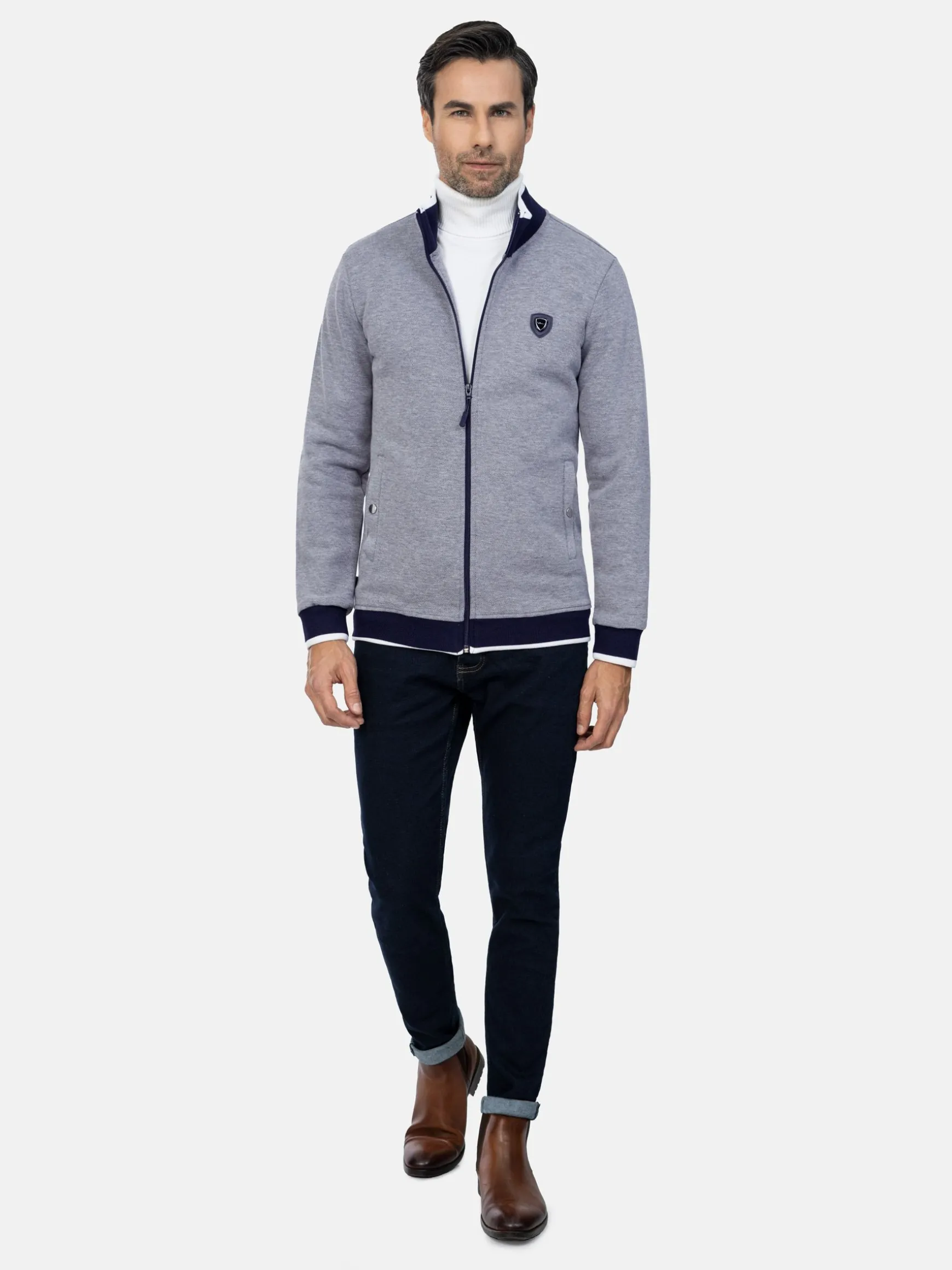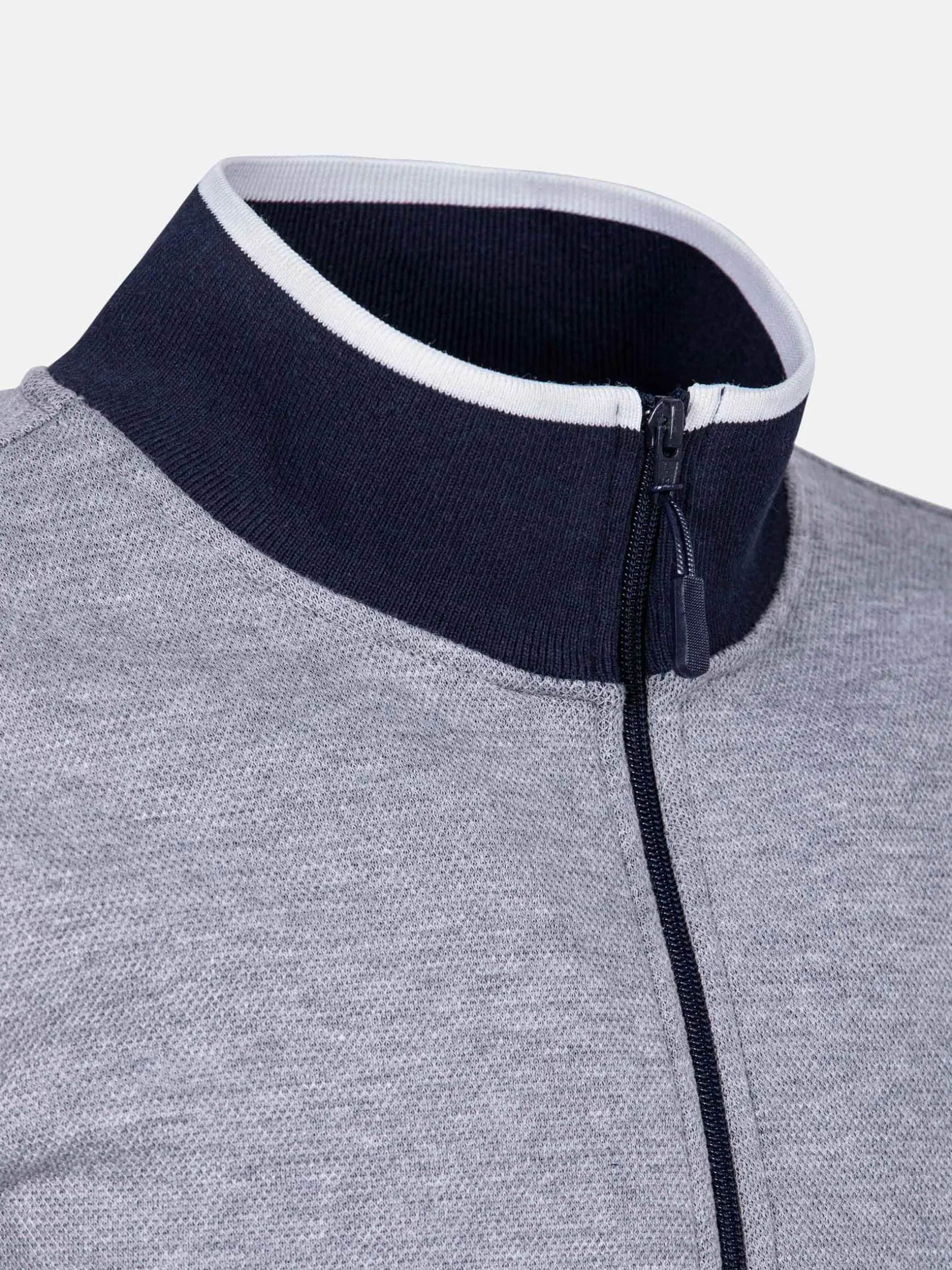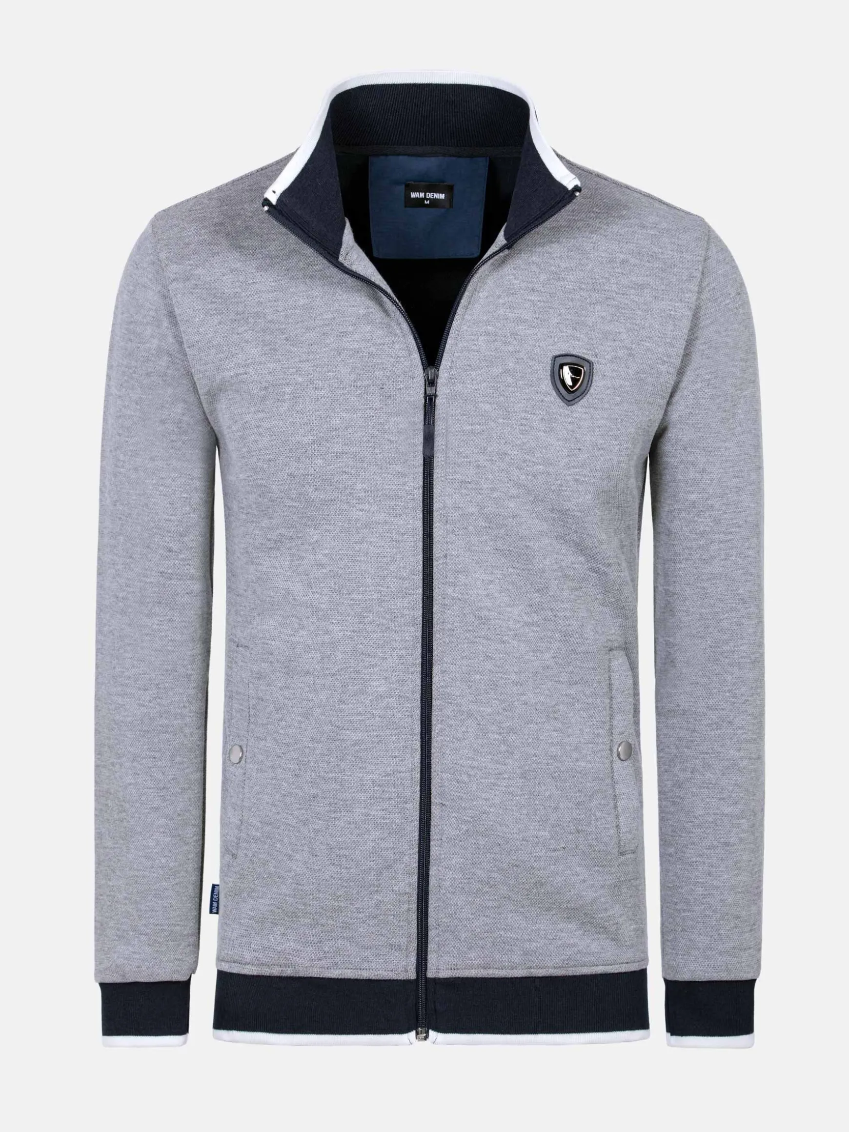 Grijs vest met ritssluiting en opstaande kraag. Het vest heeft twee zijzakken die sluiten met een druksluiting en op de linkerborst een Wam Denim logo. Het vest is in alle seizoenen te combineren met bijvoorbeeld jeans of een chino.