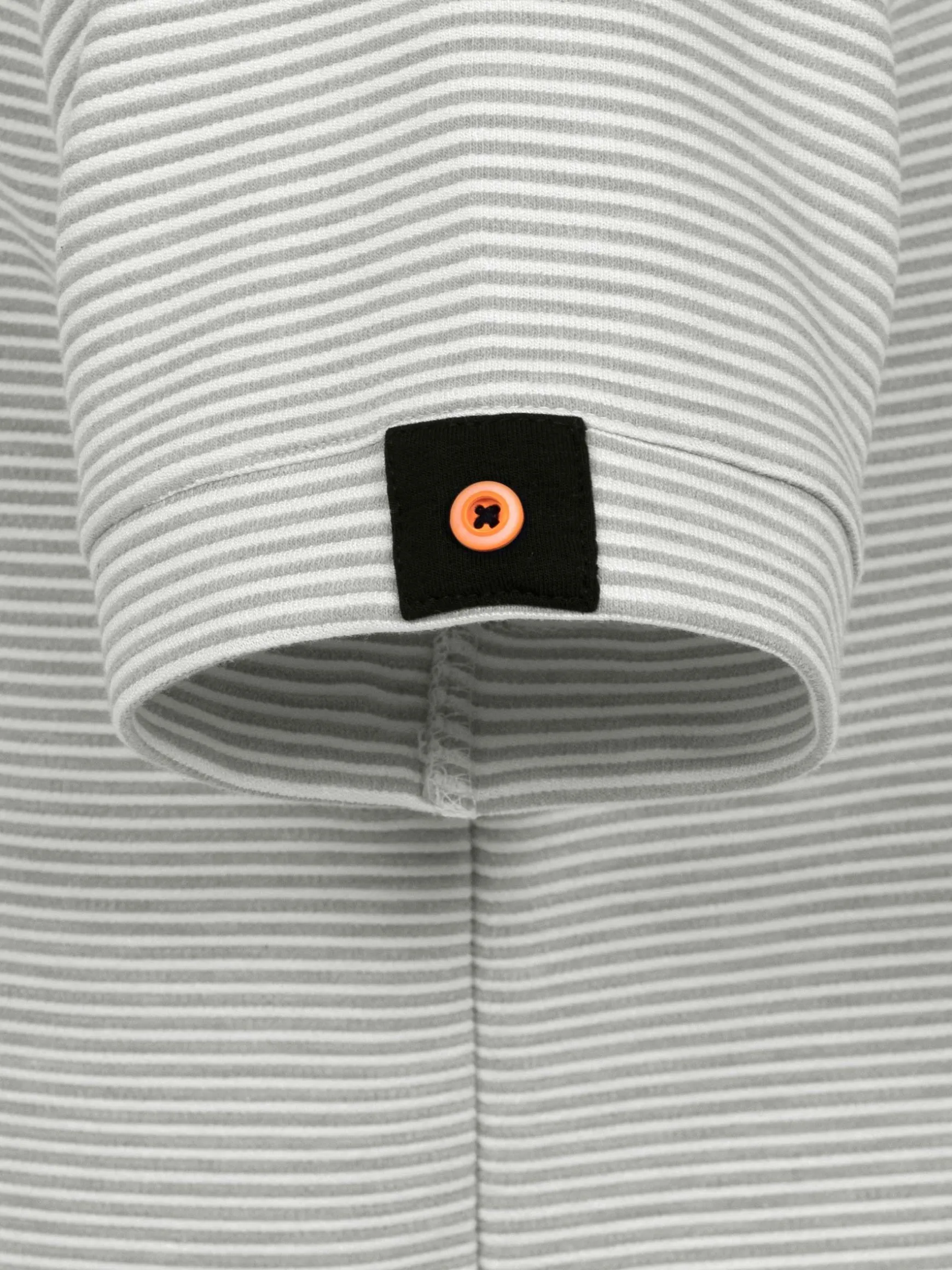 Rocky Crew Neck Stretched Grey T-shirt is een stijlvolle en veelzijdige garderobe essential, met een klassieke ronde hals voor een tijdloze uitstraling. De korte geribde manchetten en zoom zorgen voor een goede pasvorm, terwijl het strepenpatroon verfijning toevoegt aan elk ensemble.