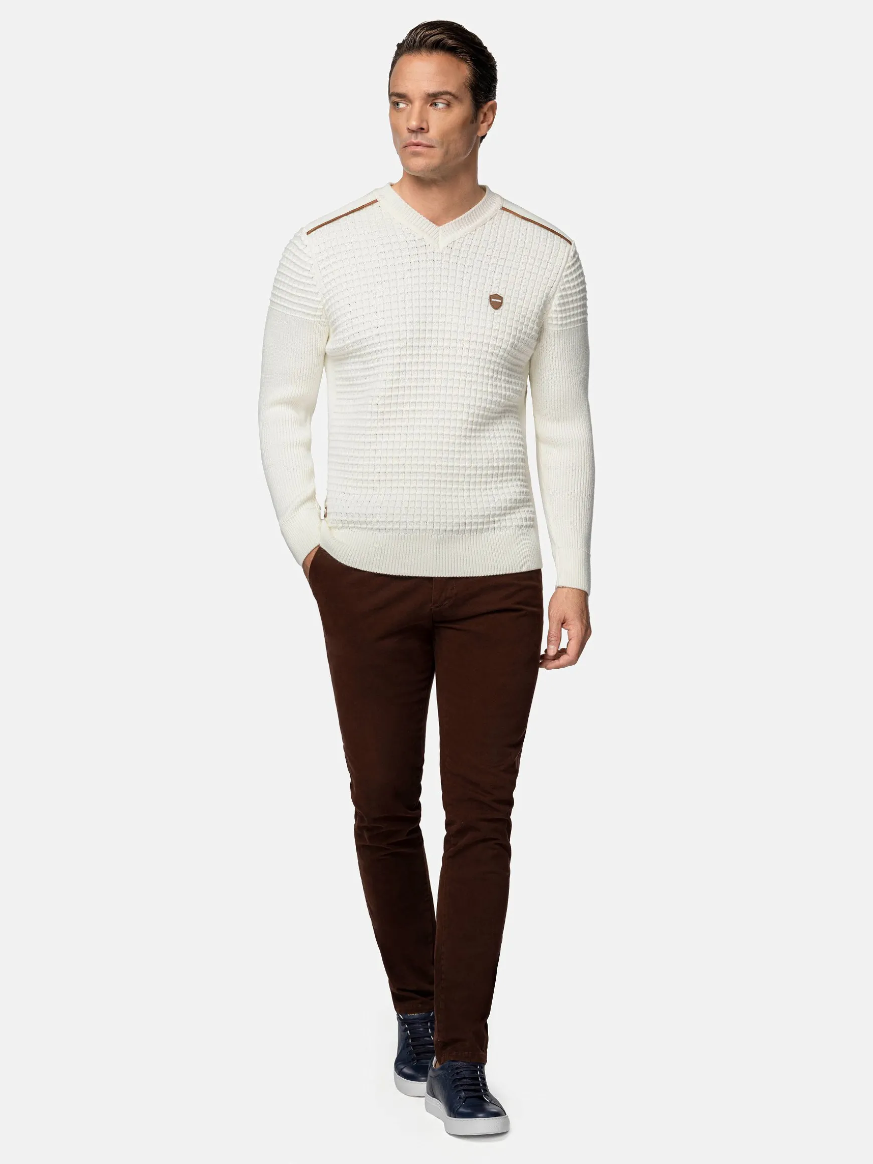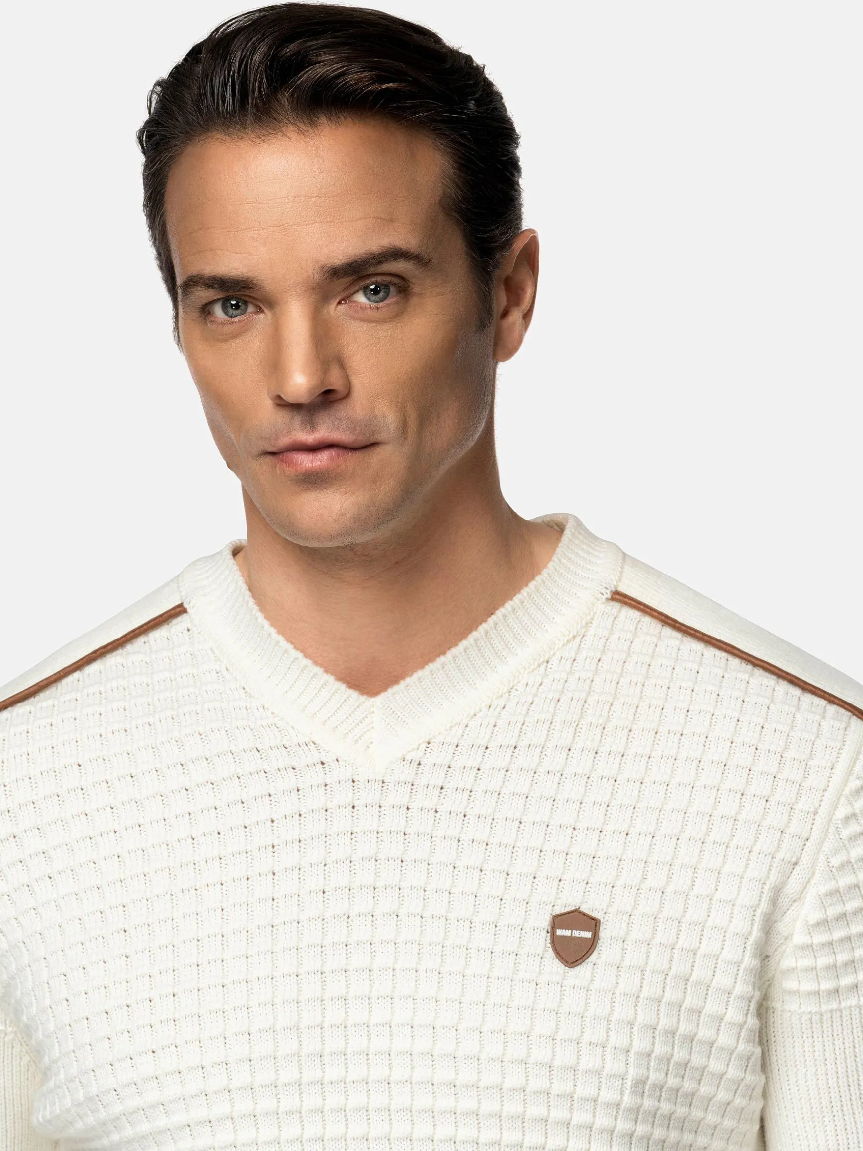 Ontdek gezellige knitwear! Onze Slim Fit Off-White Knitwear met V-hals combineert moeiteloos comfort en mode, waardoor het de ideale keuze is voor elke gelegenheid. Of je nu naar een casual uitje gaat of naar een speciaal evenement, deze knitwear is je perfecte metgezel. Ervaar de mix van zachtheid en trendyheid. Pak de jouwe nu en stap uit in stijl.