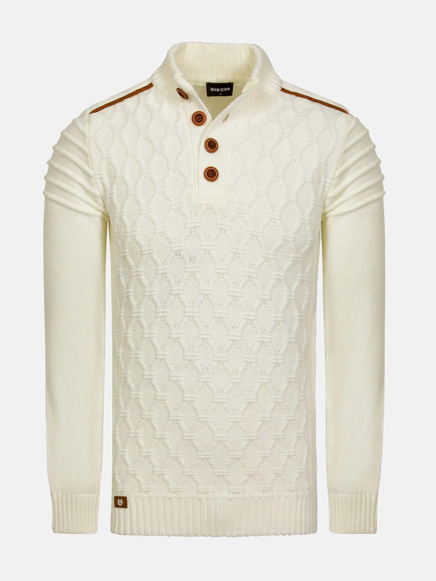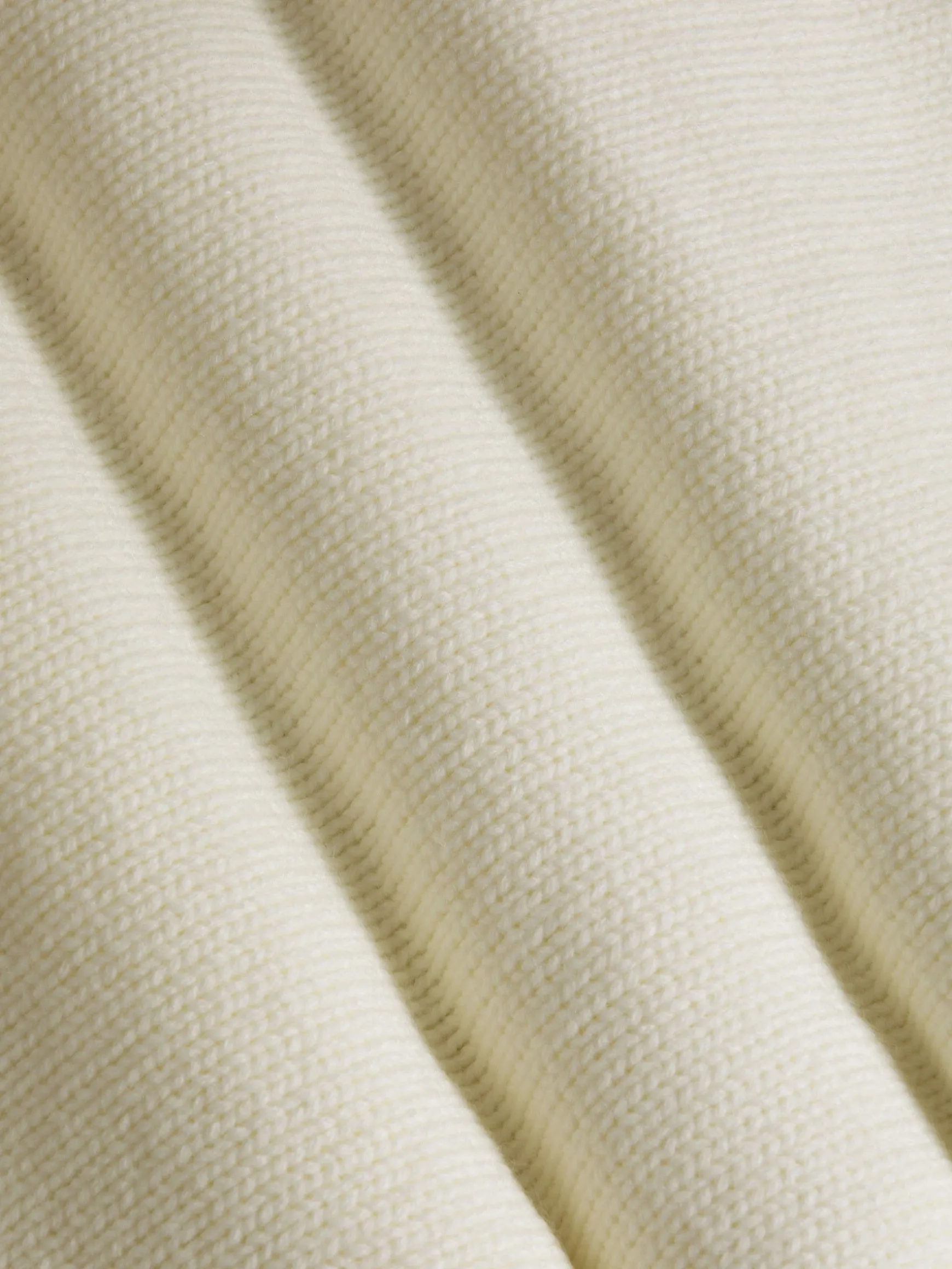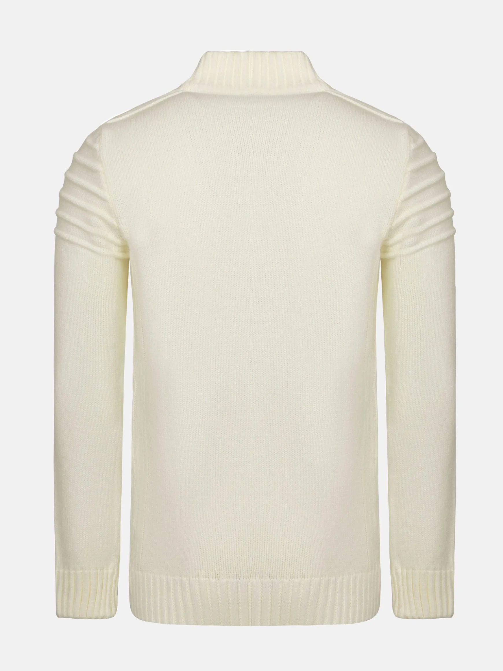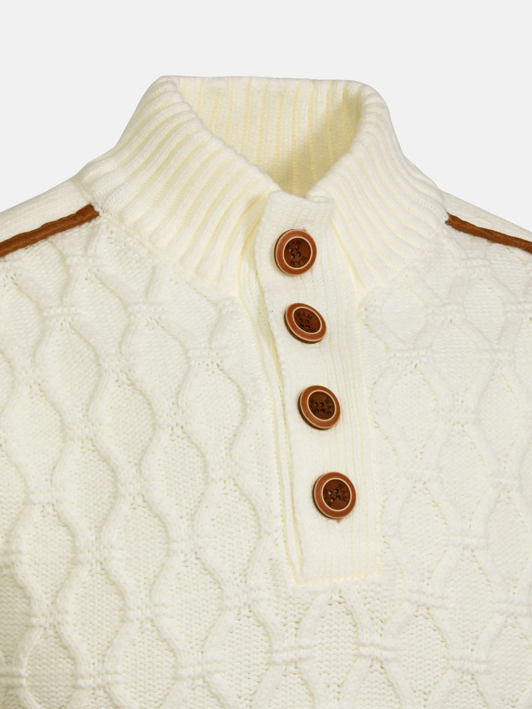 De Minevre Off White Knitwear heeft een slanke pasvorm met een opvallend kabelpatroon. Het ontwerp met hoge hals, aangevuld met een stijlvolle knoopsluiting, zorgt voor een eigentijds accent, terwijl geribde details op de schouders en manchetten een vleugje raffinement toevoegen. De veelzijdige off-white tint maakt het een tijdloos stuk, perfect voor elke gelegenheid.