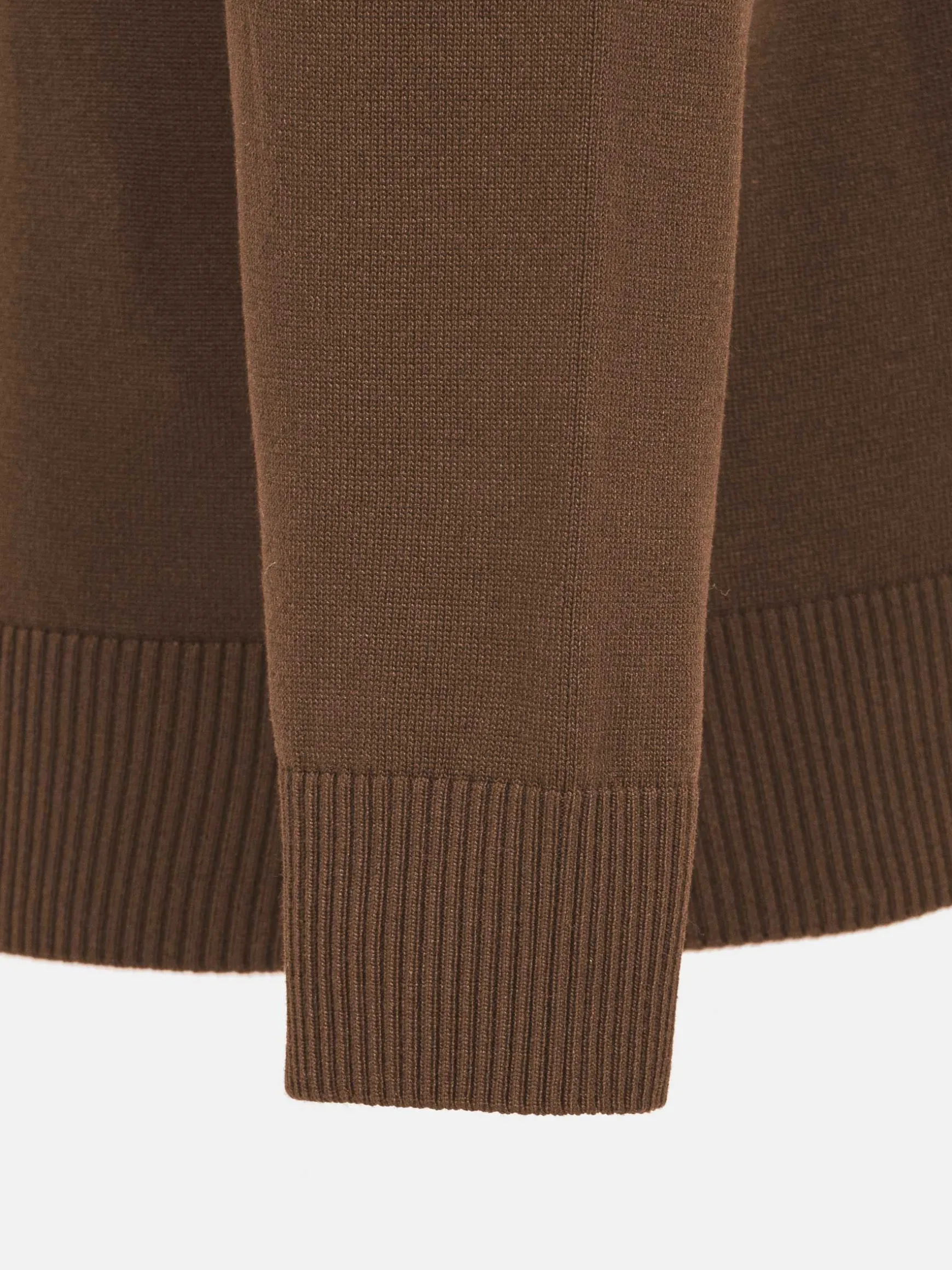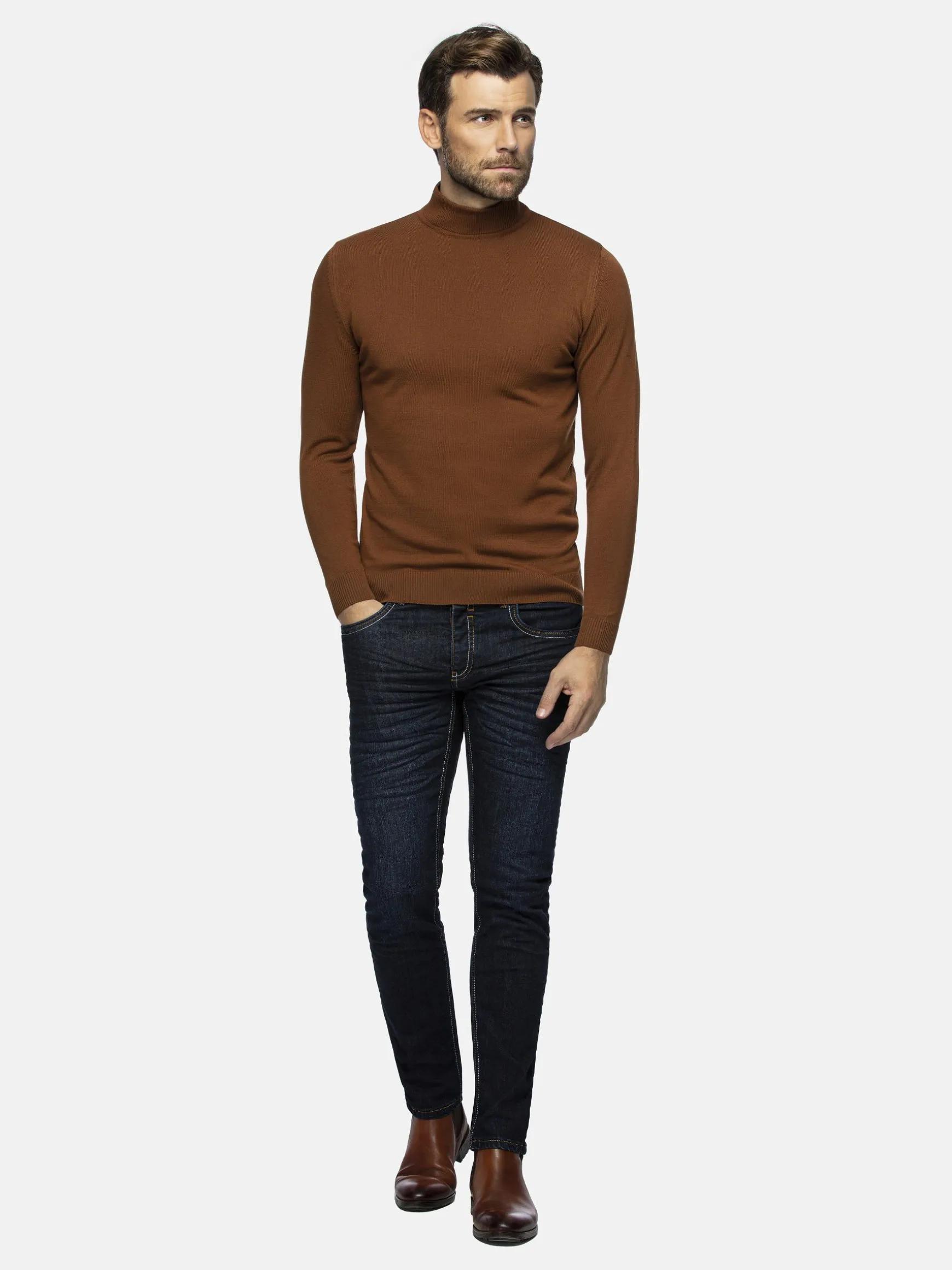 Stijlvolle coltrui in een effen peru kleur. Draag licht en comfortabel, gemaakt van zachte viscose, gemengd met polyamide voor meer comfort. Als stijldetail heeft de sweater een geribbelde manchet en taille voor een moderne look. Dit model is ook in donkerbruin verkrijgbaar.