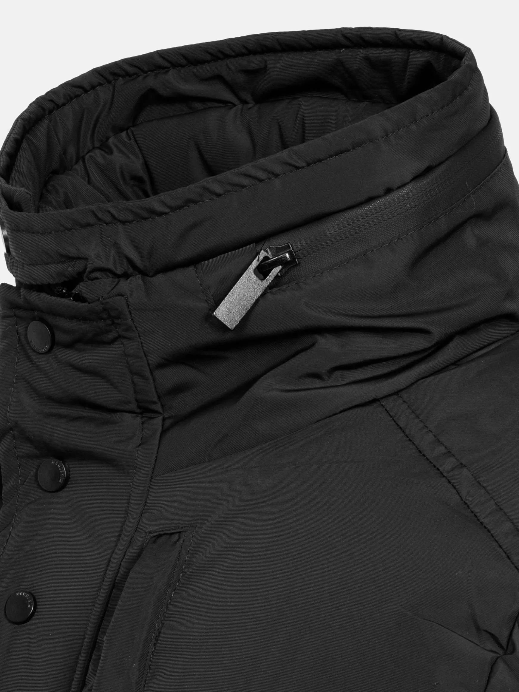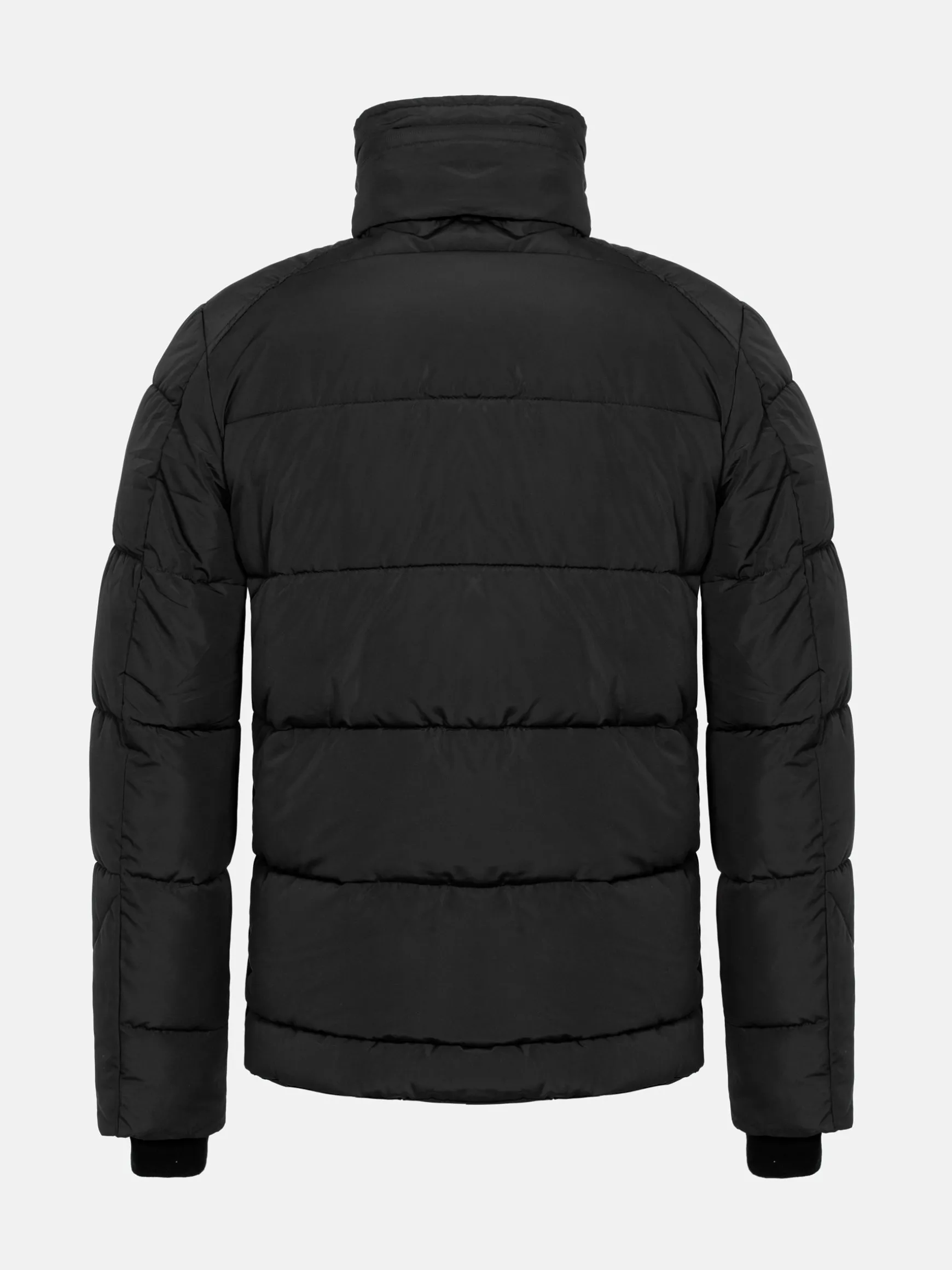 De Arian Black Winter Jacket combineert stijl en functionaliteit met water- en winddichtheid, puffer isolatie, borstzakken, dubbele voorzakken, geribde manchetten, een hoge hals en een nekknoopsluiting voor een perfecte pasvorm. Blijf warm en stijlvol deze winter.