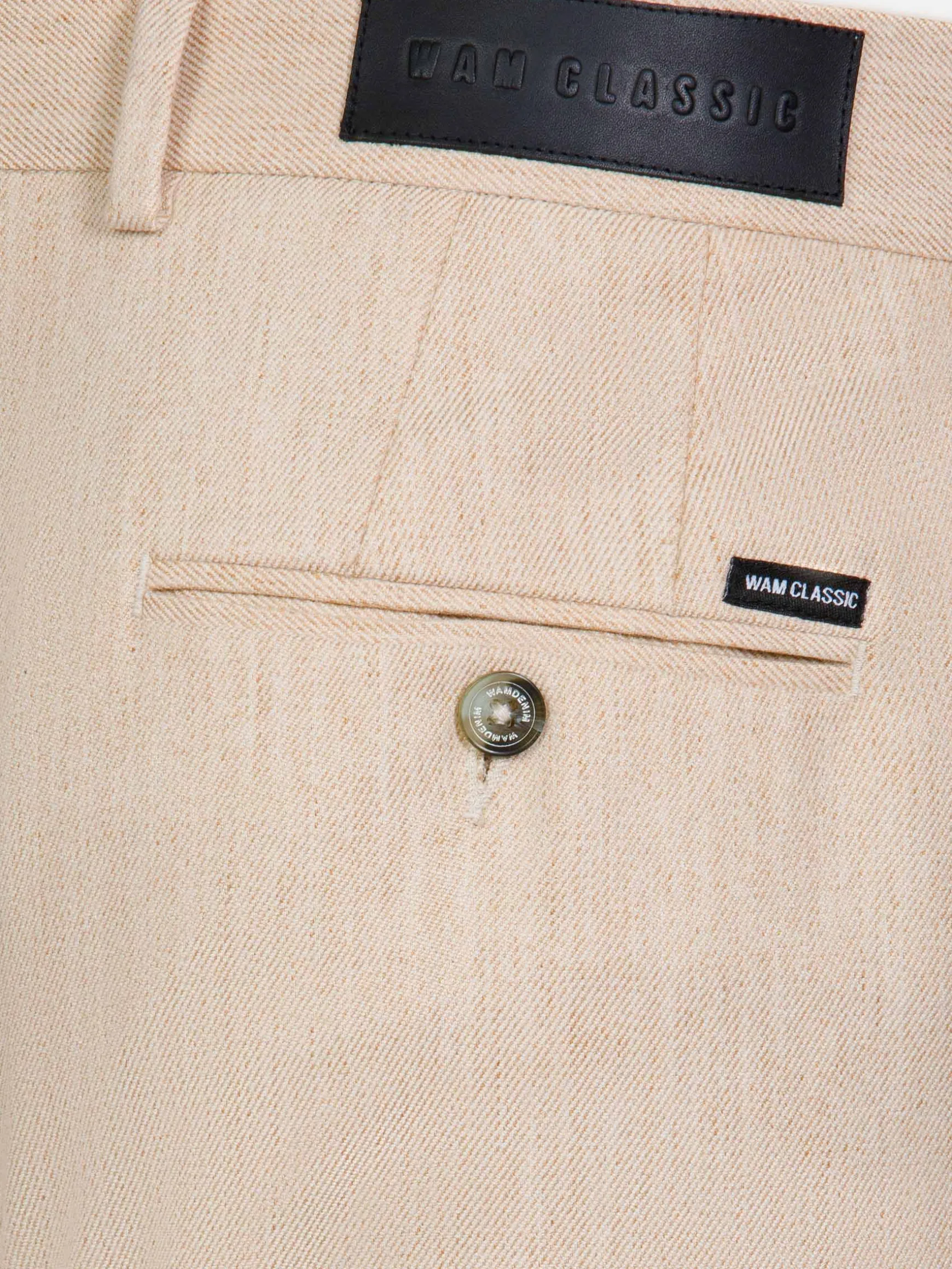 Alaric Slim Fit Beige Chino biedt een strakke stijl met een praktisch ontwerp. Hij heeft twee achterzakken met knoopsluiting, twee voorzakken en een discrete verborgen zak met ritssluiting. De slim fit is gemaakt van stretchstof voor comfort en biedt een moderne, getailleerde look die perfect is voor elke gelegenheid.