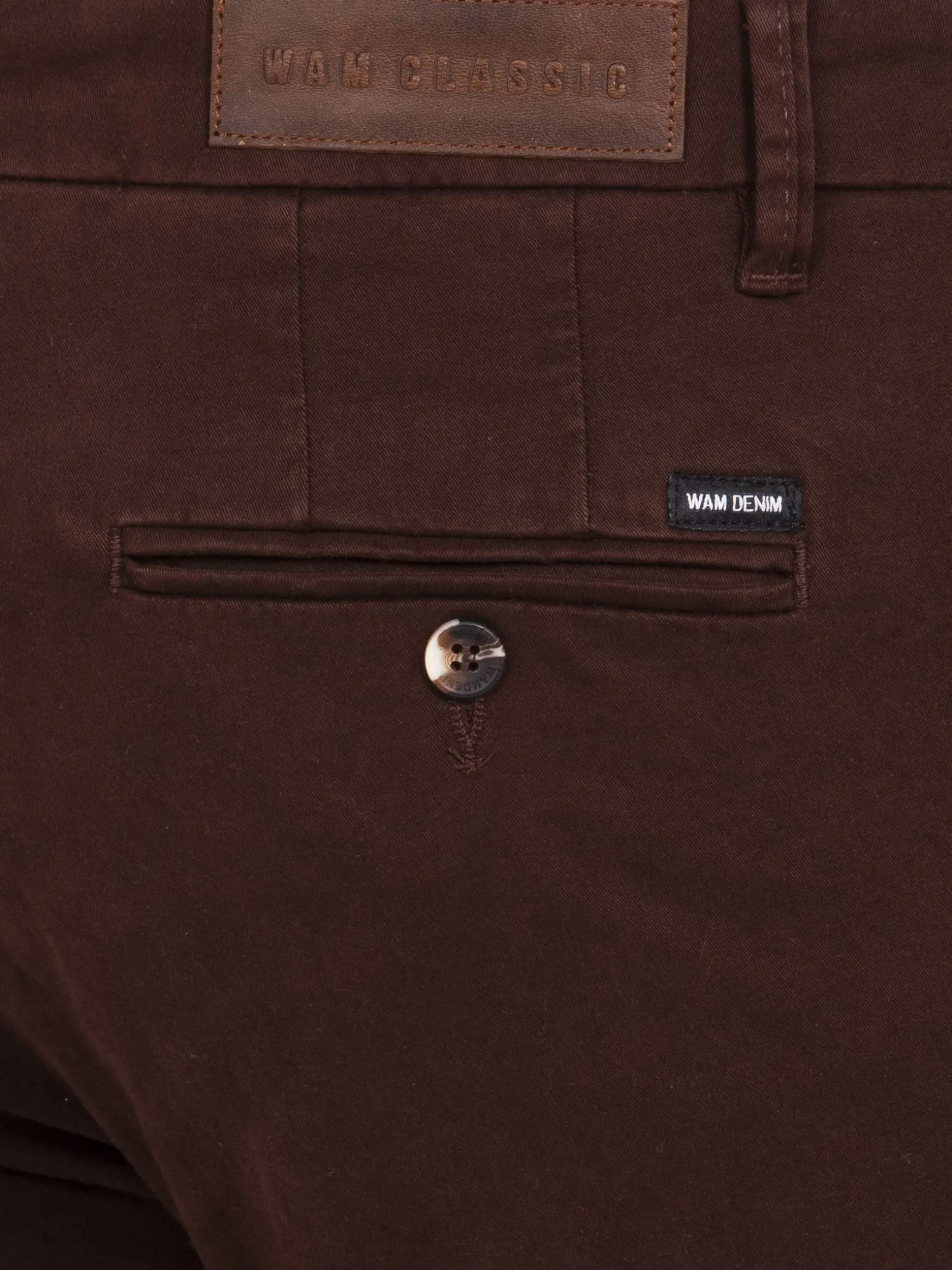 Mooie effen pure kleur chino gemaakt van stretchy katoen. Voorzien van twee zijzakken, twee achterzakken en een gulp met ritssluiting. Een essential in elke garderobe.