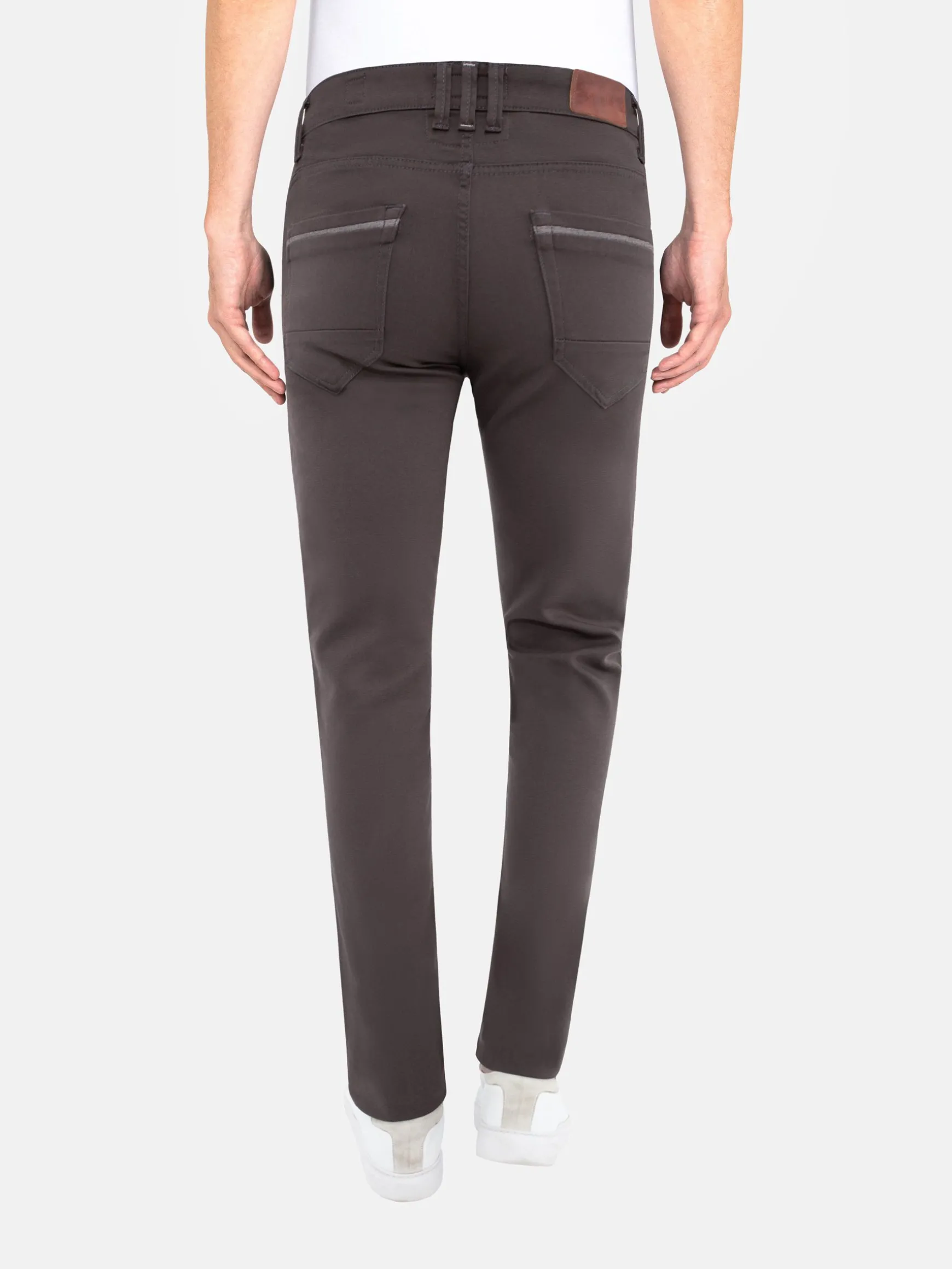 Hessen Slim Fit Anthracite Jeans is gemaakt voor modern comfort en stijl. Het getailleerde Slim Fit silhouet accentueert je figuur en biedt de hele dag comfort. Met een klein horlogezakje, twee voorzakken en een achterzak voor essentiële spullen. De mix van polyester, viscose en elastaan biedt duurzaamheid en stretch voor elke gelegenheid. Compleet met een handige ritssluiting.