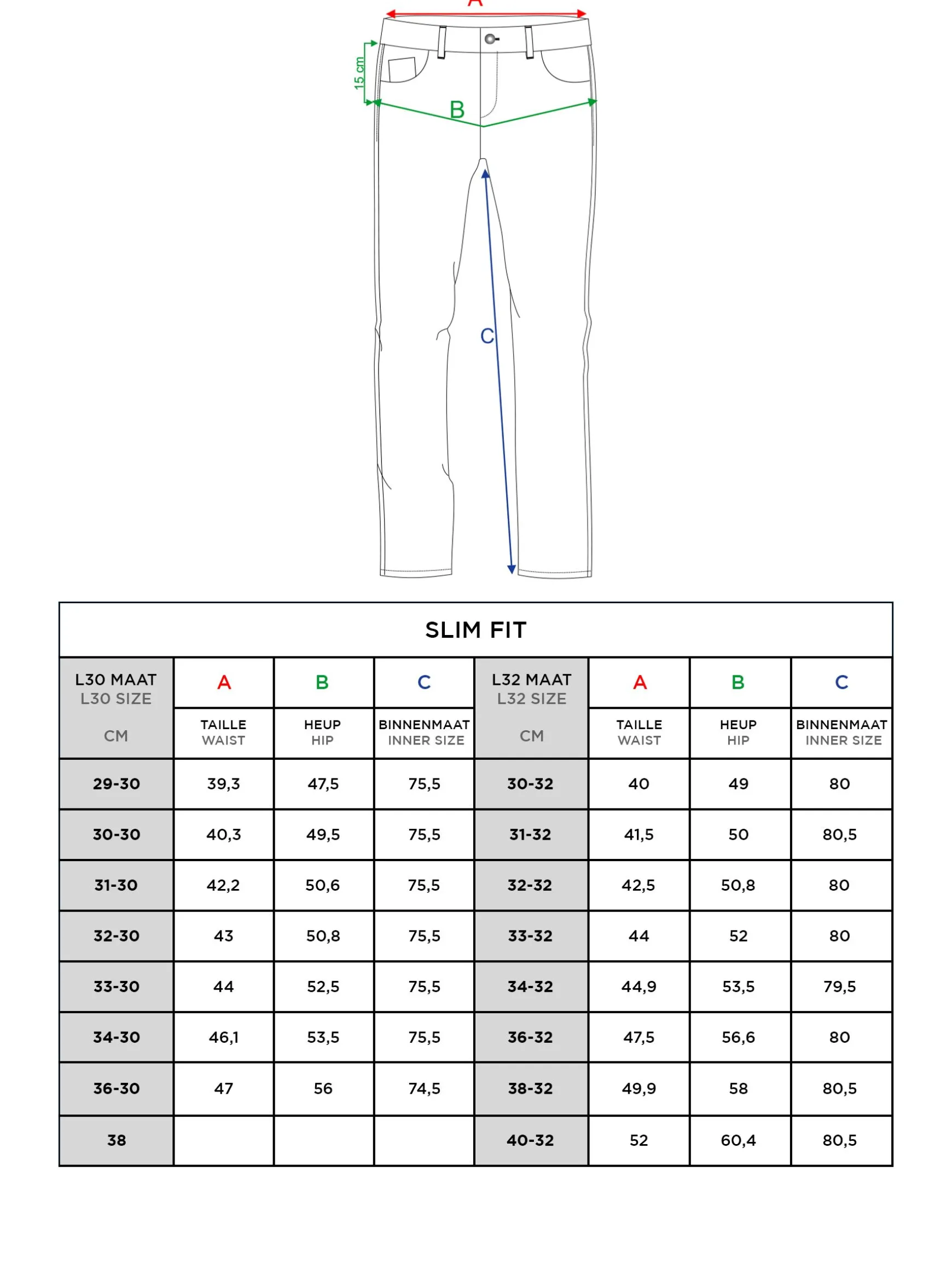Bestaat uit 77% katoen, 19% polyester en 04% Elastaan. Om de gewenste kwaliteit te behouden, raden we aan deze jeans binnenstebuiten te wassen op 30°C. Niet bleken. Strijken op 110 °C. Niet geschikt voor de droger.
