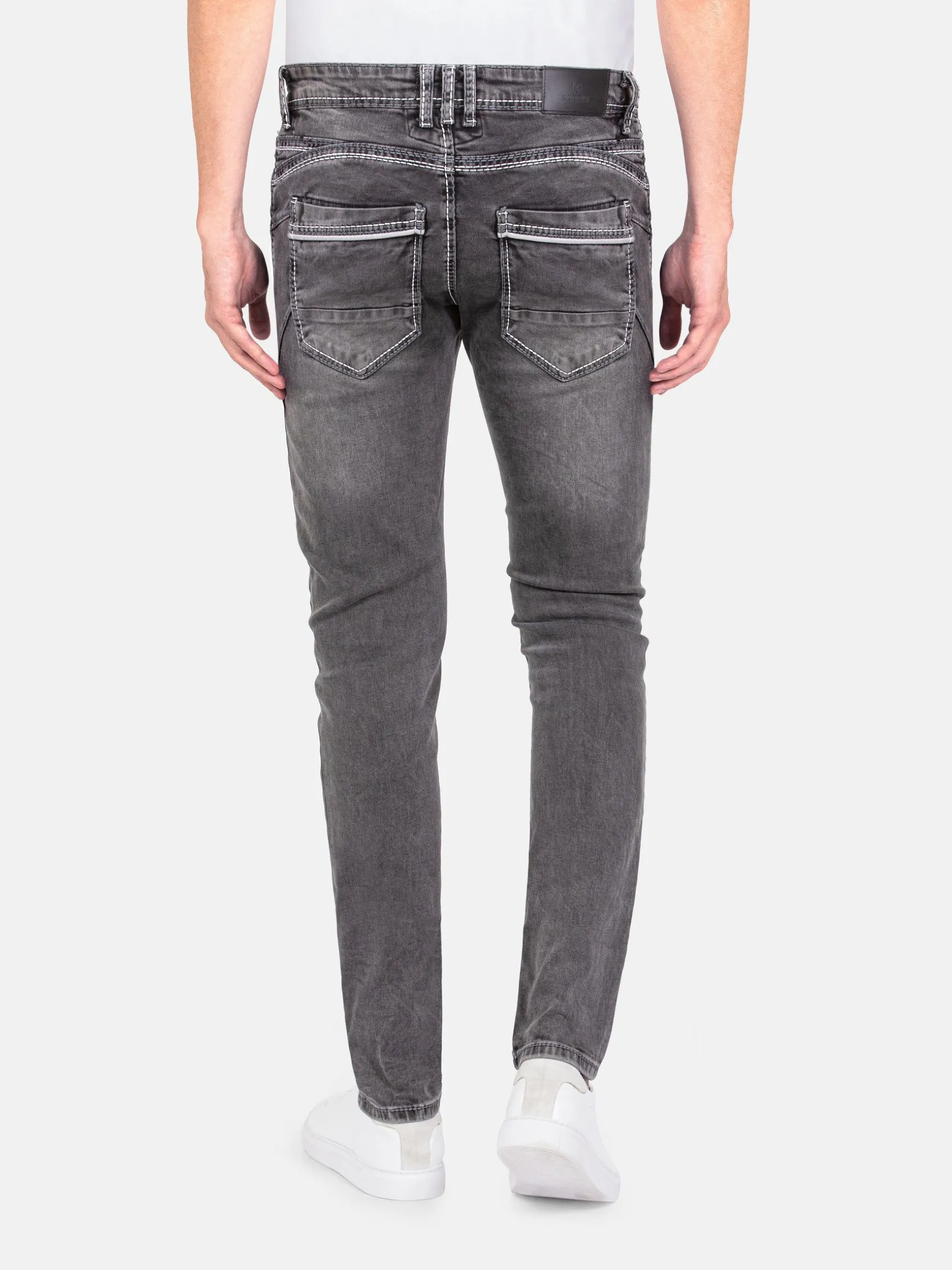 Onze zwarte slim jeans voor heren is de perfecte aanvulling op je garderobe. Gemaakt van hoogwaardig denim en afgewerkt met witte stiksels die een stijlvolle touch aan je look geven. Het slim fit ontwerp omhelst je rondingen op alle juiste plaatsen, waardoor je een flatterend silhouet krijgt. Of je hem nu aankleedt met een blazer of casual houdt met een t-shirt, deze jeans is een veelzijdig stuk dat je bij elke gelegenheid kunt dragen.