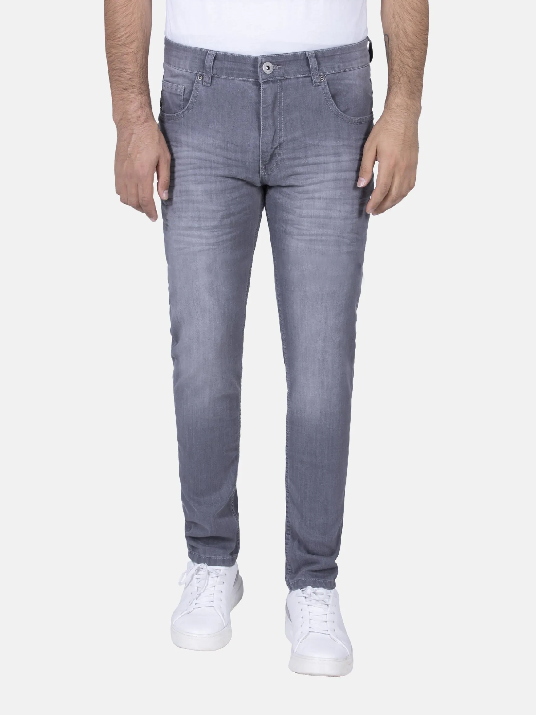 Grijze jeans met stone wash. Dit model heeft een perfecte pasvorm en is heel goed te dragen in verschillende combinaties. Voor een nette look met een mooi overhemd of een casual look met een shirt en sneakers.