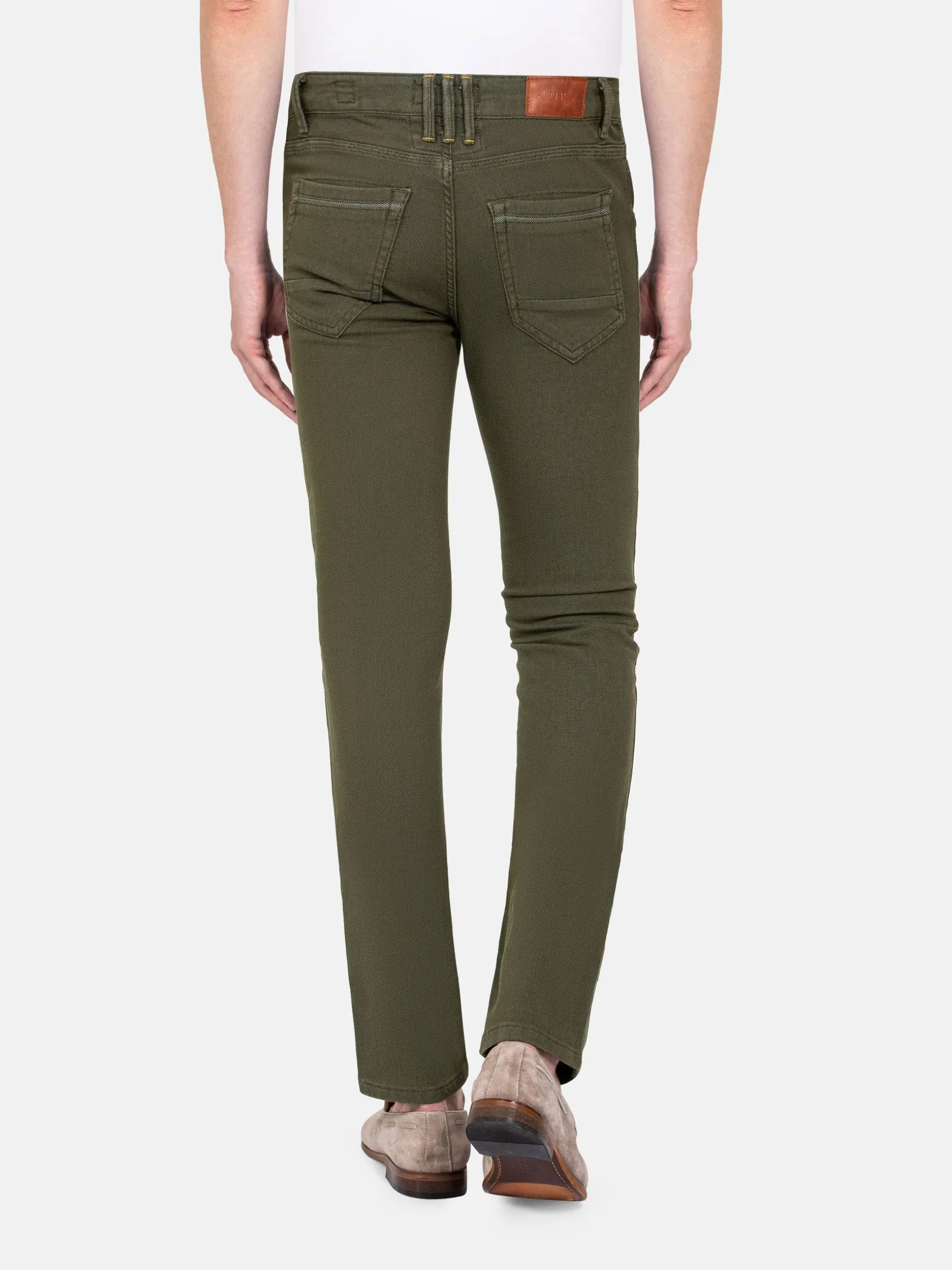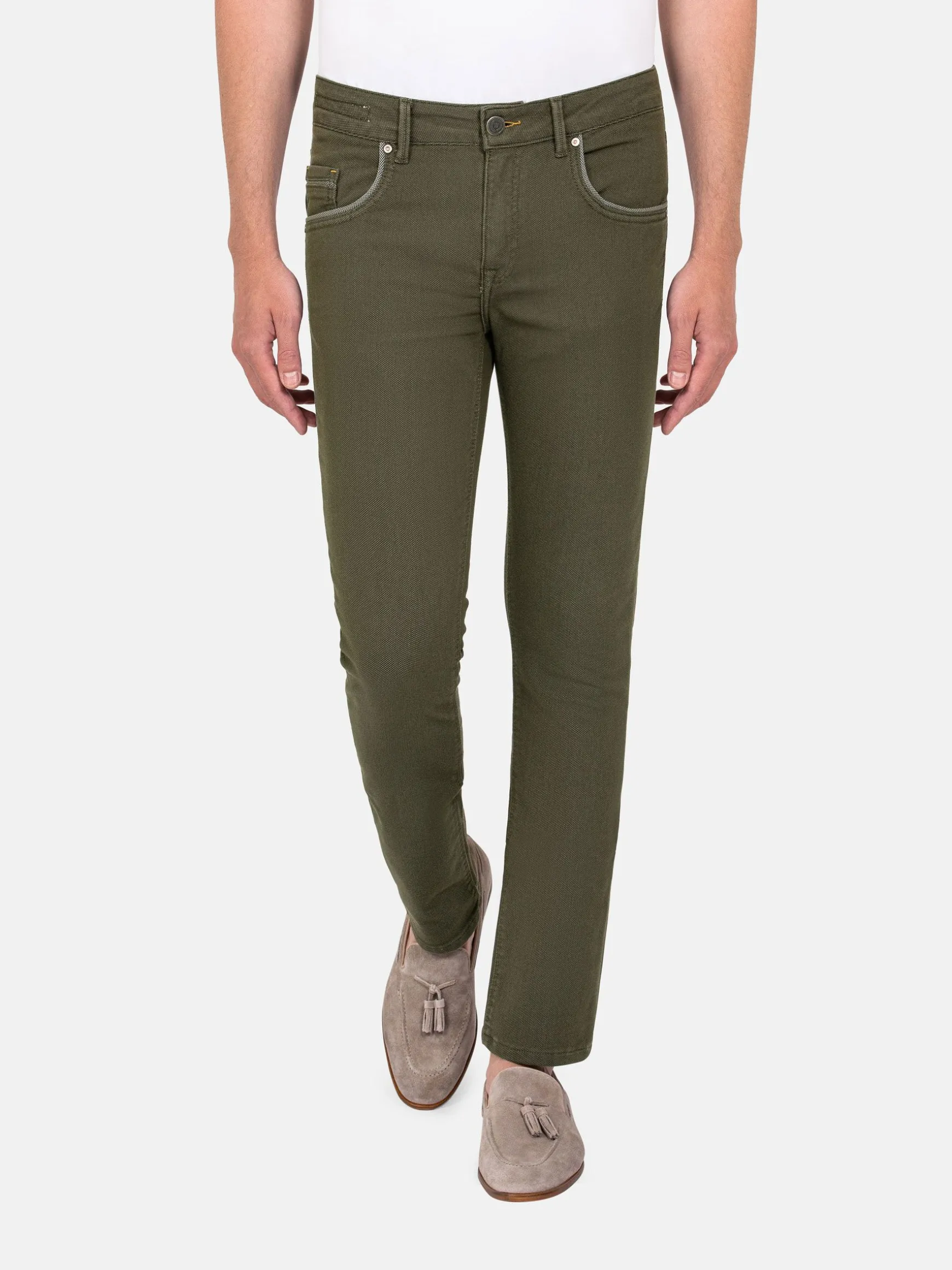 De Swindon stretch slim-fit jeans in Khaki is ontworpen om zowel comfort als stijl te bieden. Het elastische materiaal zorgt voor een goede pasvorm zonder afbreuk te doen aan de bewegingsvrijheid. De kaki kleur voegt een vleugje verfijning toe aan elke outfit, waardoor ze perfect zijn voor zowel casual als formele gelegenheden. Het slim-fit ontwerp van deze jeans accentueert je figuur en geeft je een slanke en stijlvolle look. Verbeter je denim spel met de Swindon slim-fit stretch khaki jeans.