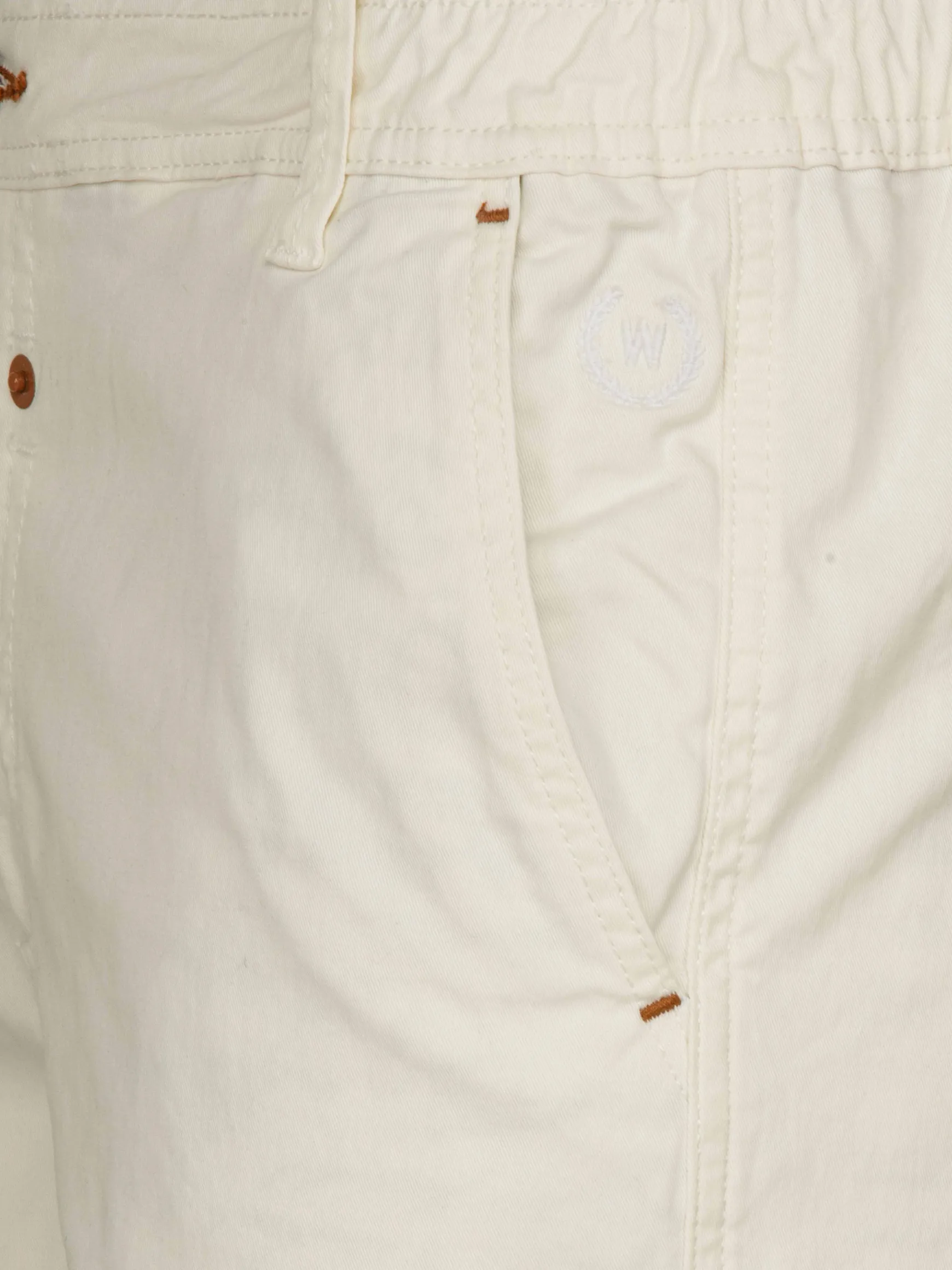 Easton Off White Shorts, met een slanke pasvorm voor een moderne look. Uitgerust met twee zakken aan de voorkant en twee achterzakken voor het praktische gemak, heeft deze short ook een veilige ritssluiting. Perfect voor elke casual gelegenheid, ze combineren stijl en functionaliteit naadloos.
