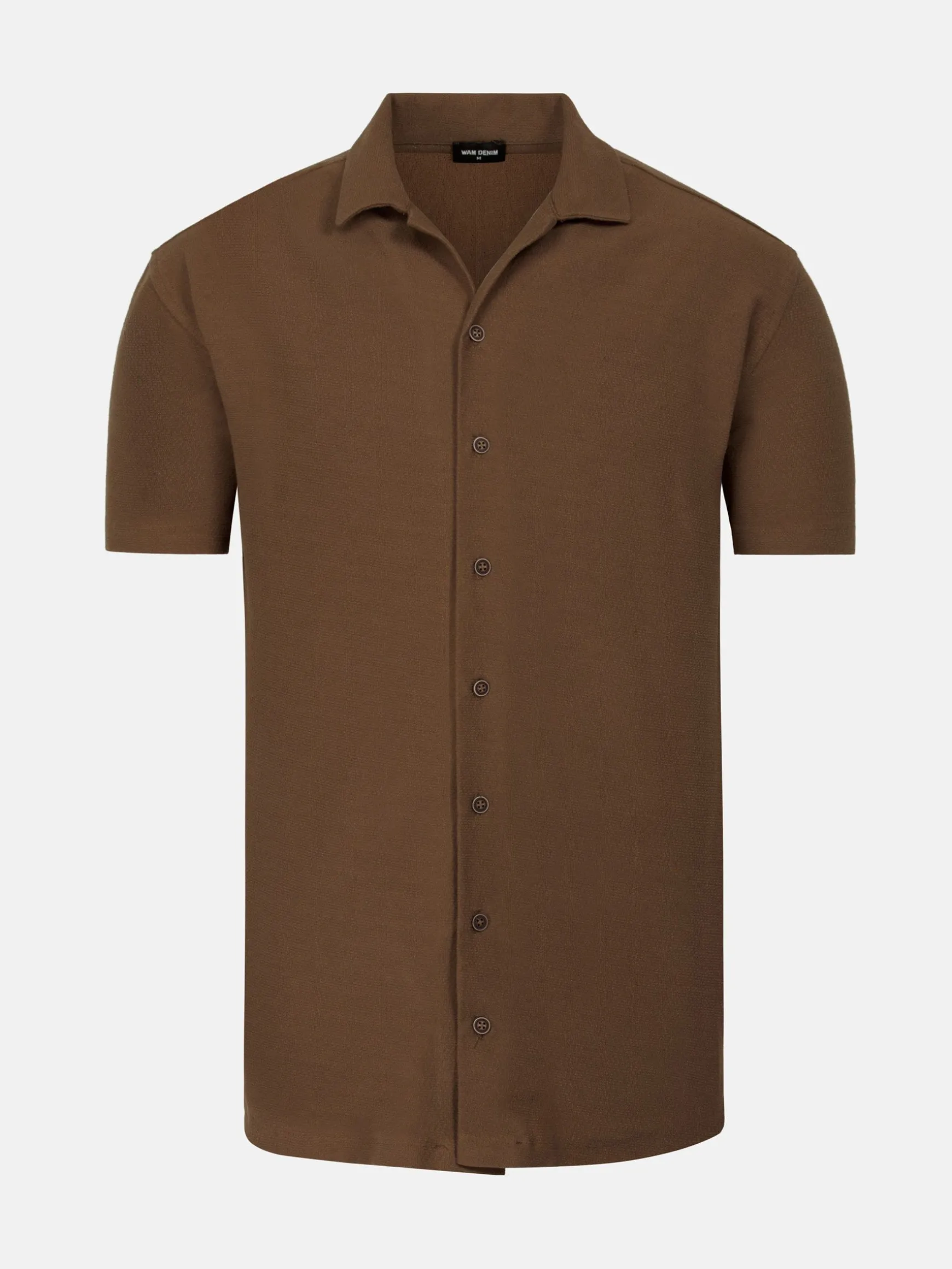 Faro Korte Mouwen Brown Shorts Set. Met korte mouwen, elastische stof, wide spread kraag en een complete set met korte broek en volledige knoopsluiting. Perfect voor elke gelegenheid, of het nu casual of formeel is.